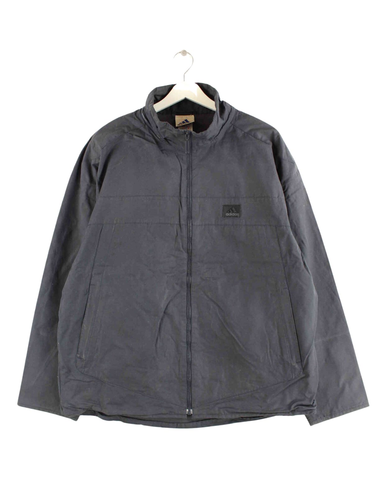 Black lightweight jacket from the Adidas brand from the 90s in size XL. It is made of synthetic material and is in good condition in stock.