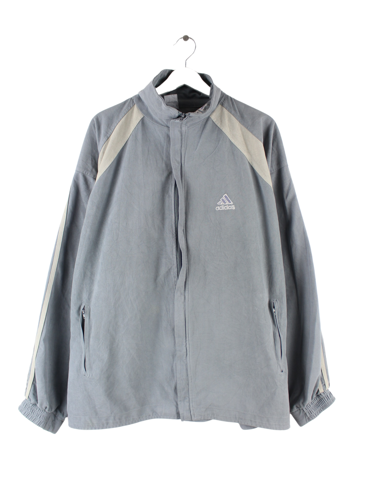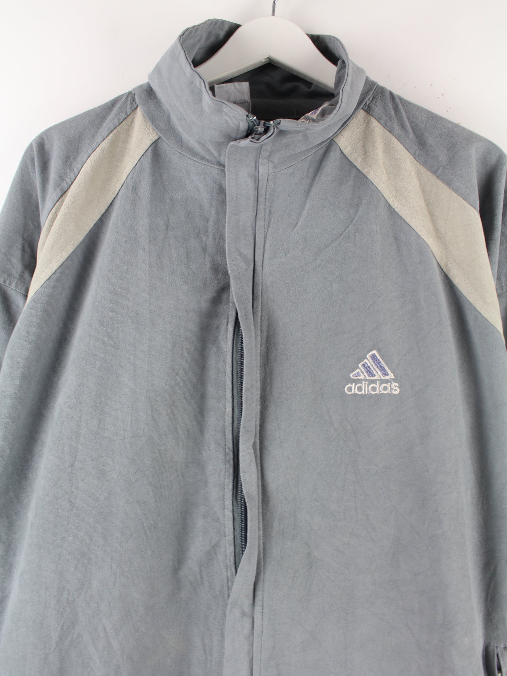 Trainingsjacke vom Label Adidas in Größe XXL aus den 90'ern. Sie ist aus Synthetik gemacht und in Grau lieferbar.