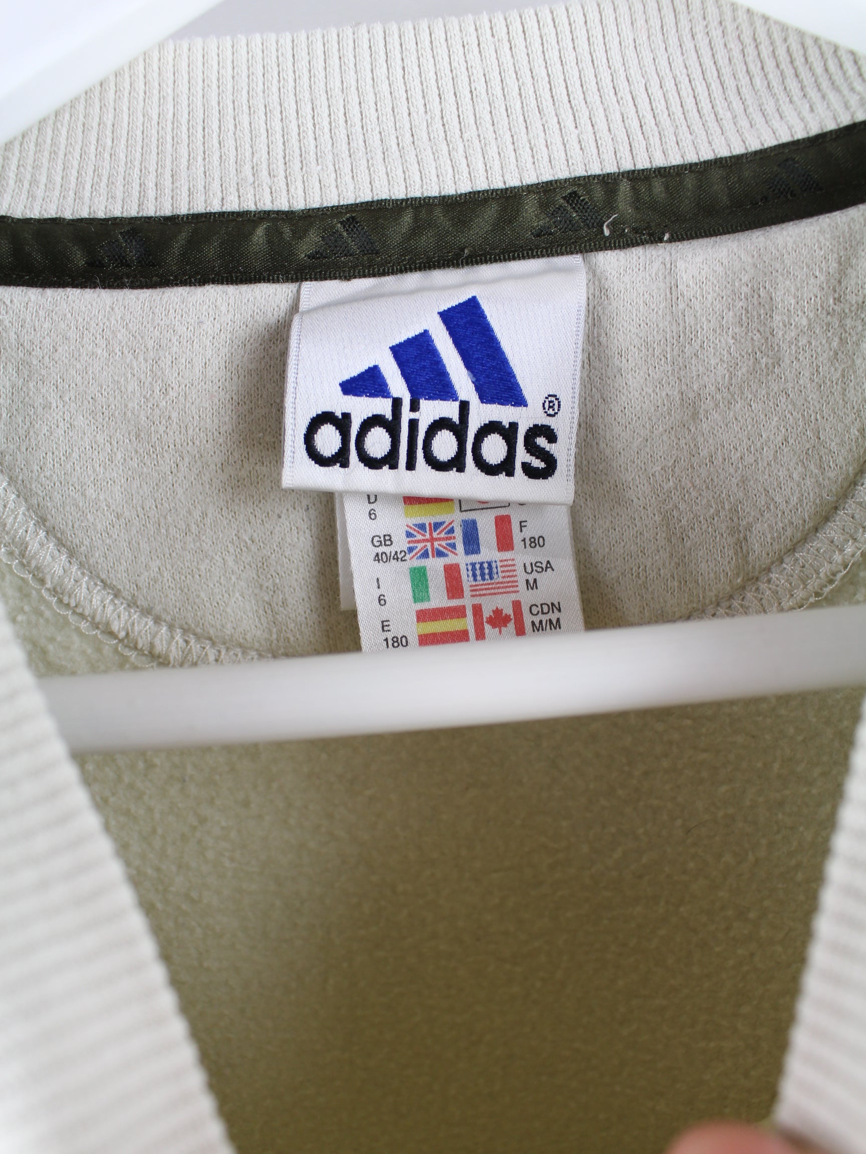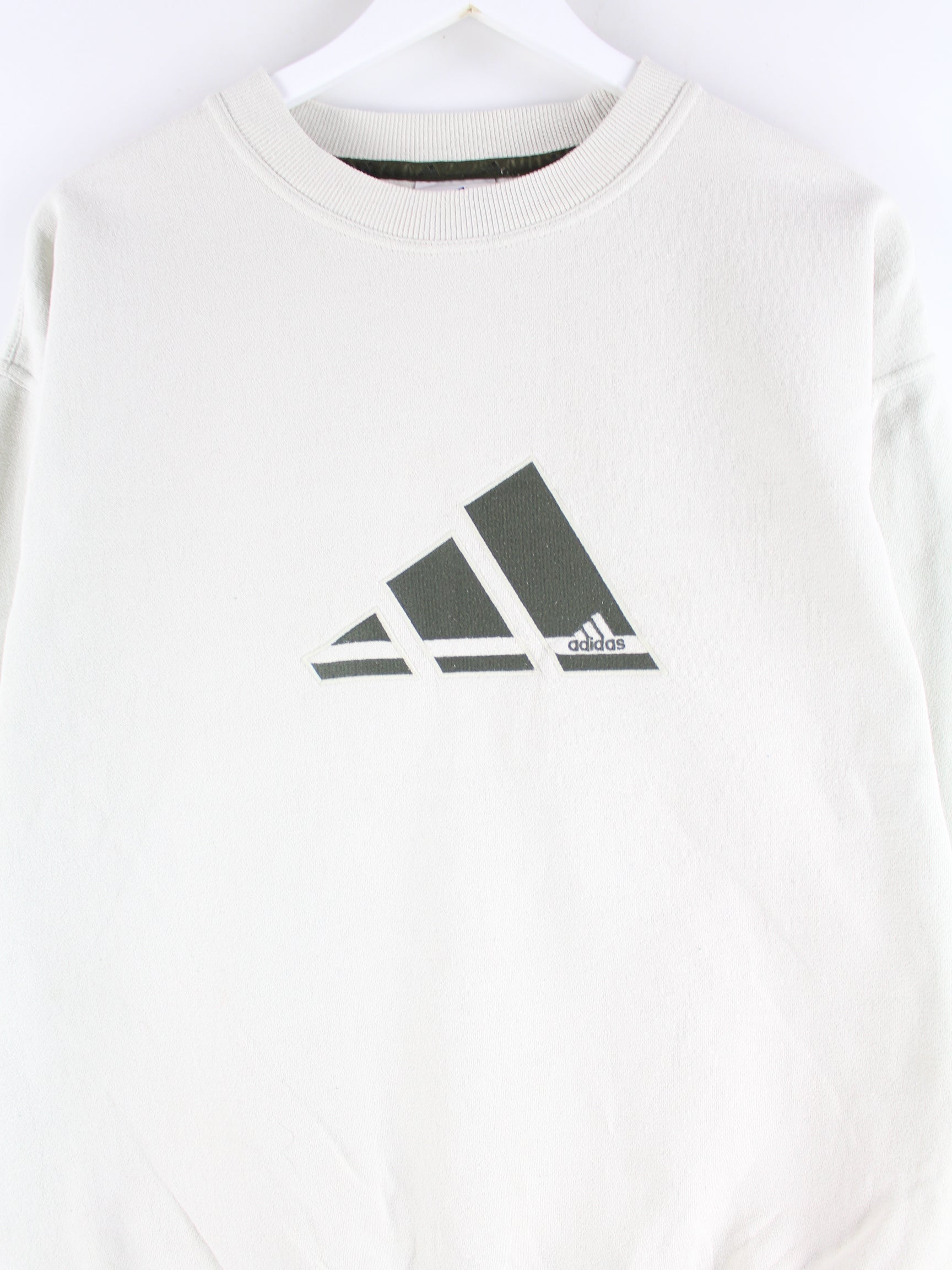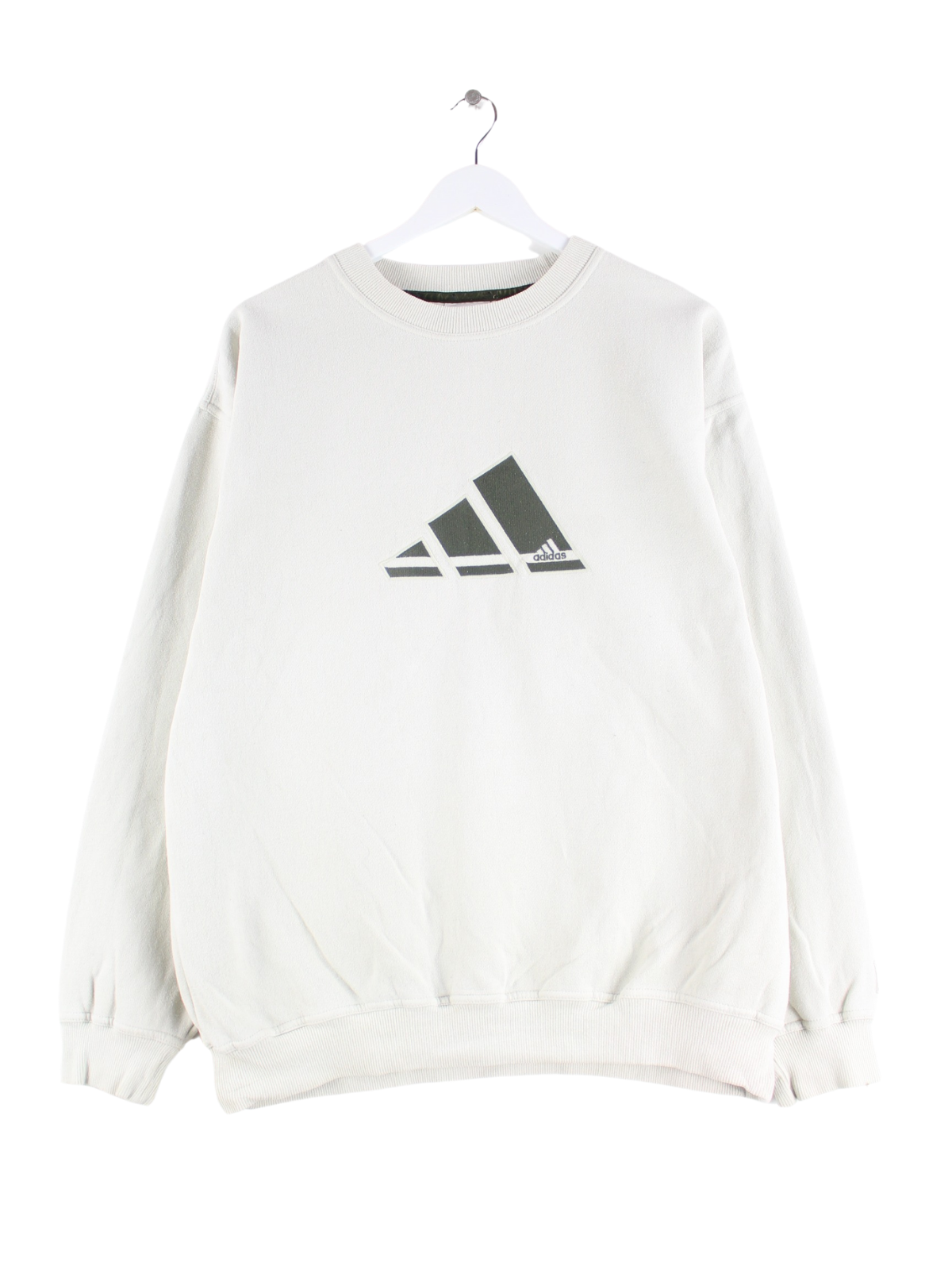Sweater from Adidas with embroidery in size L from the 90's. It is made from a cotton blend and is available in white.