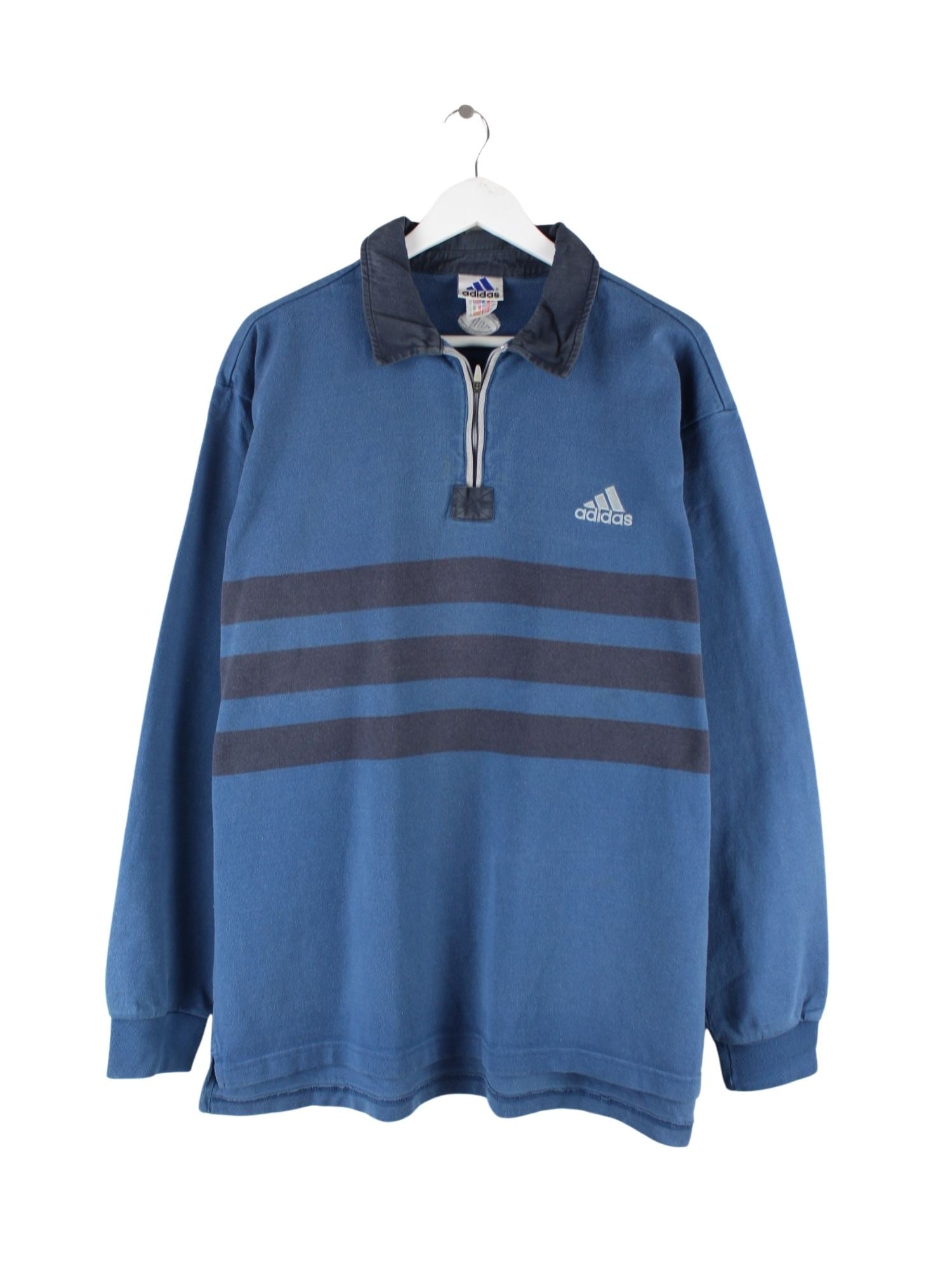 Adidas 90s Vintage Performance Striped Rugby Langarm Polo Blau XL
