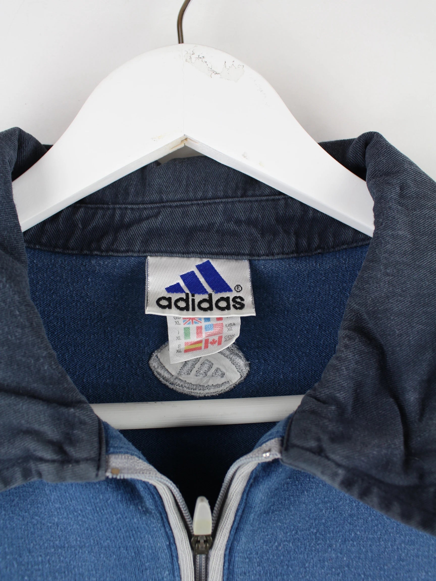 Poloshirt des Labels Adidas in Größe XL aus den 90'ern. Es ist aus Baumwolle hergestellt und in Blau auf Lager.