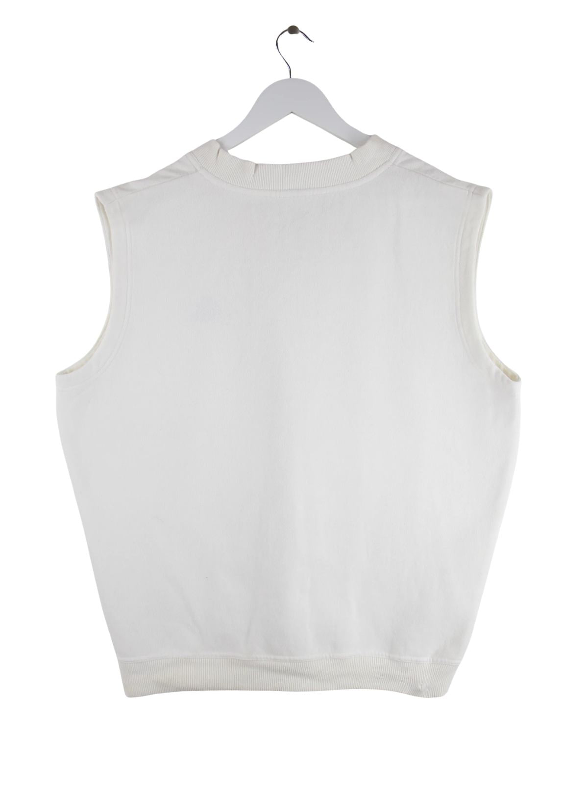 Weißer Pullunder der Marke Adidas aus den 90'ern in Größe XL. Er ist aus einer Baumwollmischung und in sehr gutem Zustand in Stock.