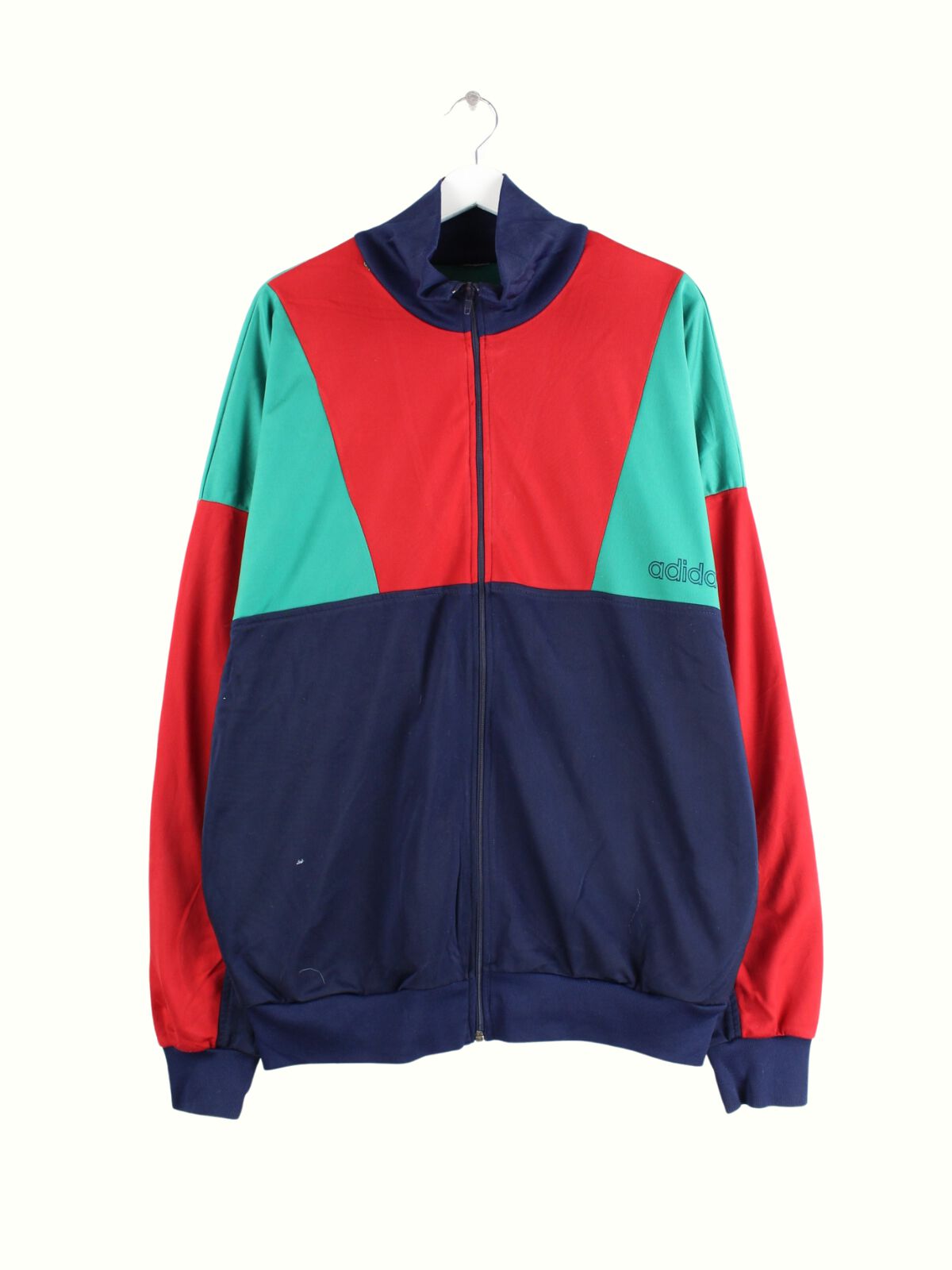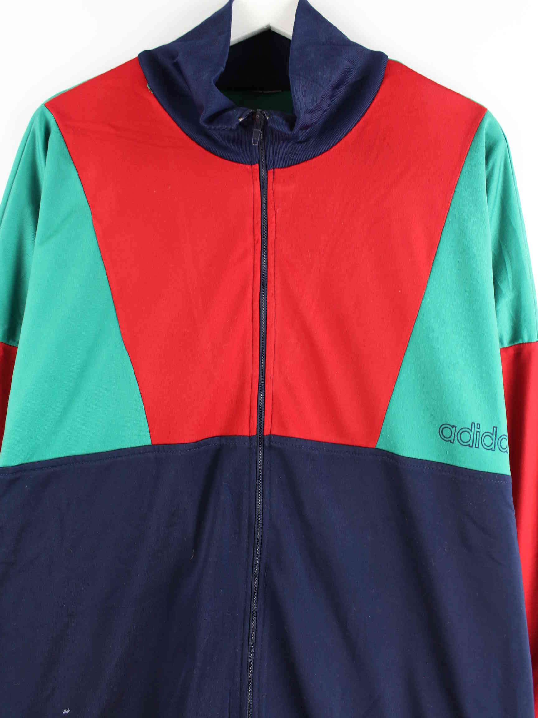 Multicolored training jacket from the Adidas label from the 90s in size 3XL. It is made of synthetic and is in good condition in stock.