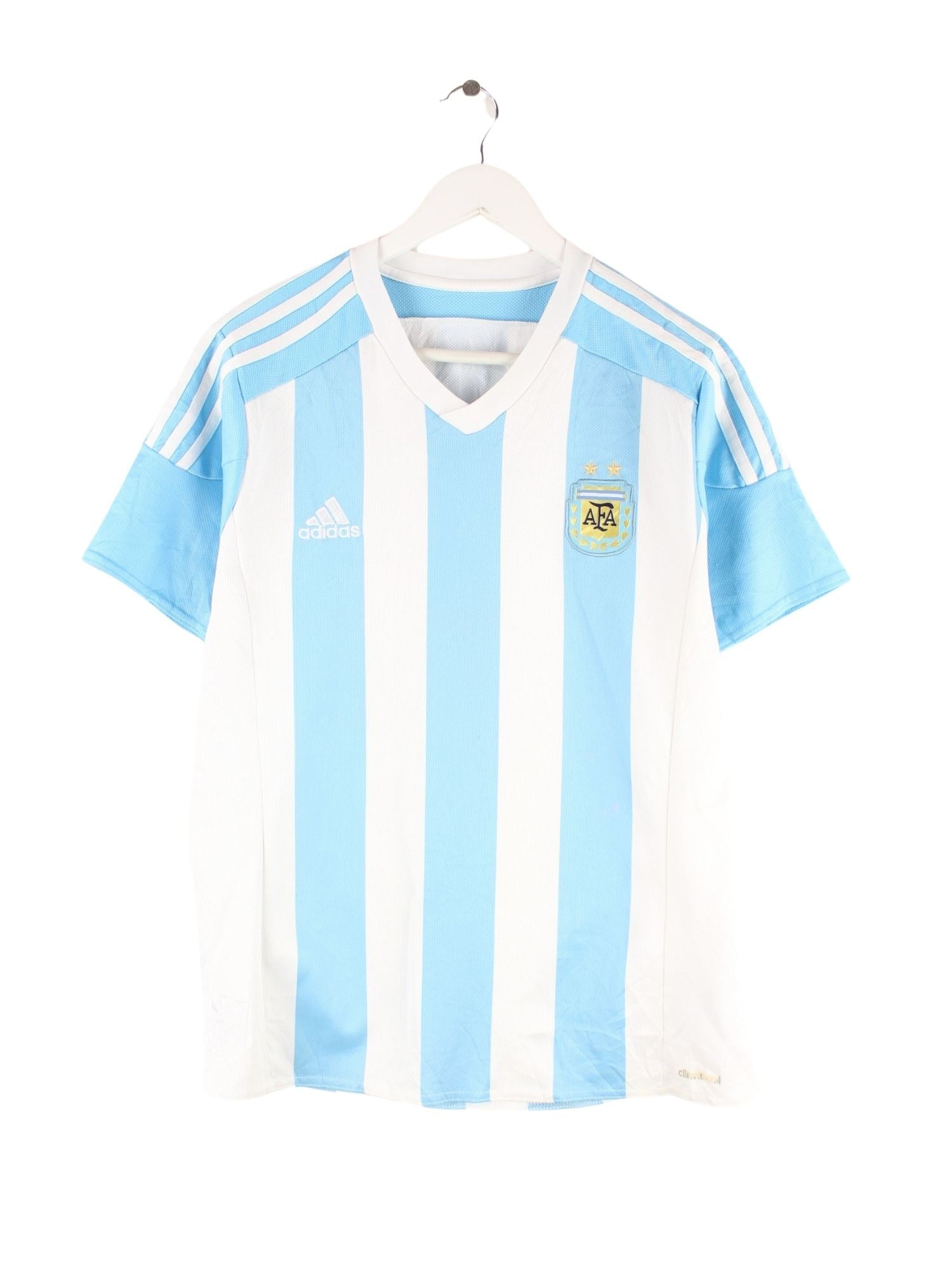 Trikot des Labels Adidas in Größe M. Es ist aus Synthetik hergestellt und in Blau in Stock.