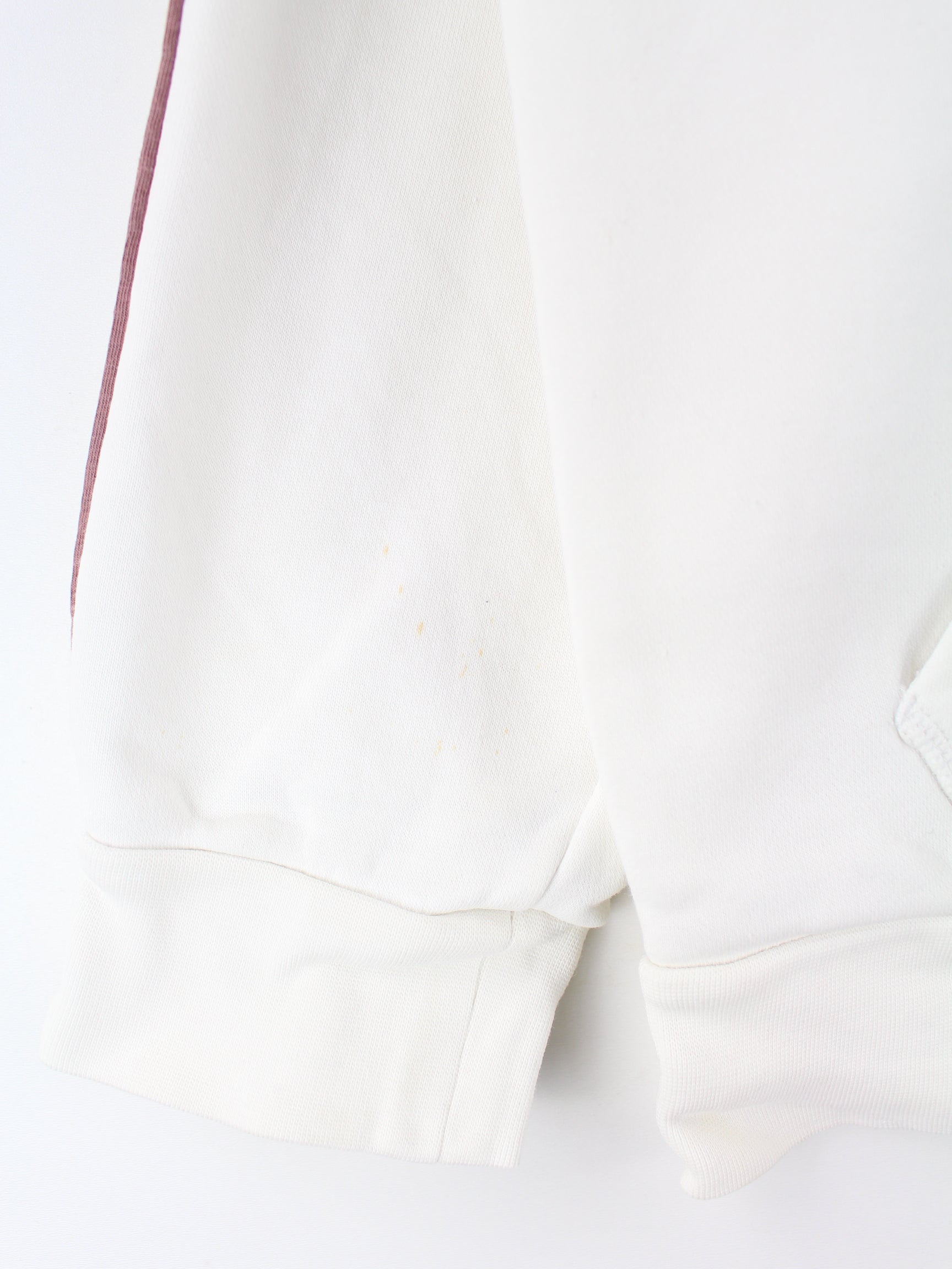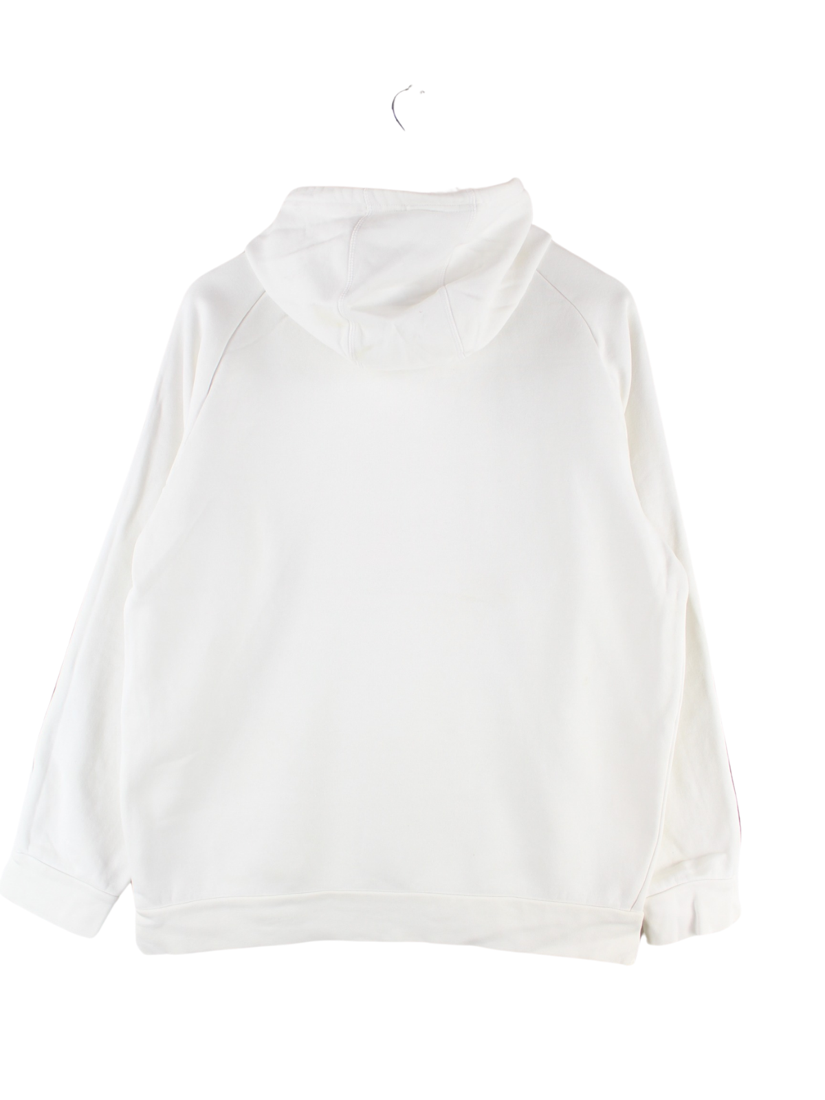 White hoodie from the brand Adidas in size XL. It is made from a cotton blend. We would describe the condition as 'fine' (see pictures).