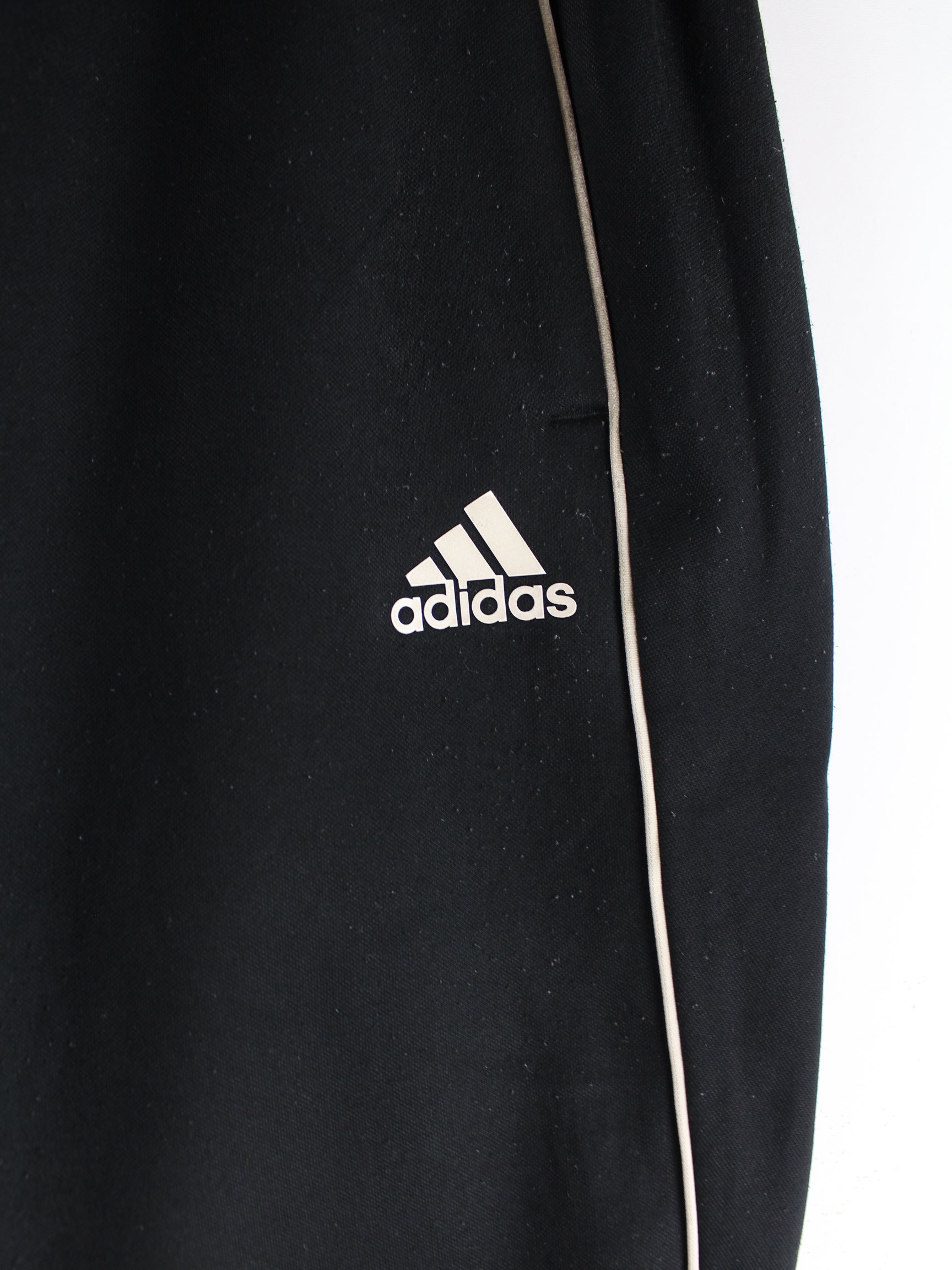 Schwarze Track Pants der Marke Adidas in Größe L. Sie sind aus Synthetik gemacht und in gutem Zustand zu haben.