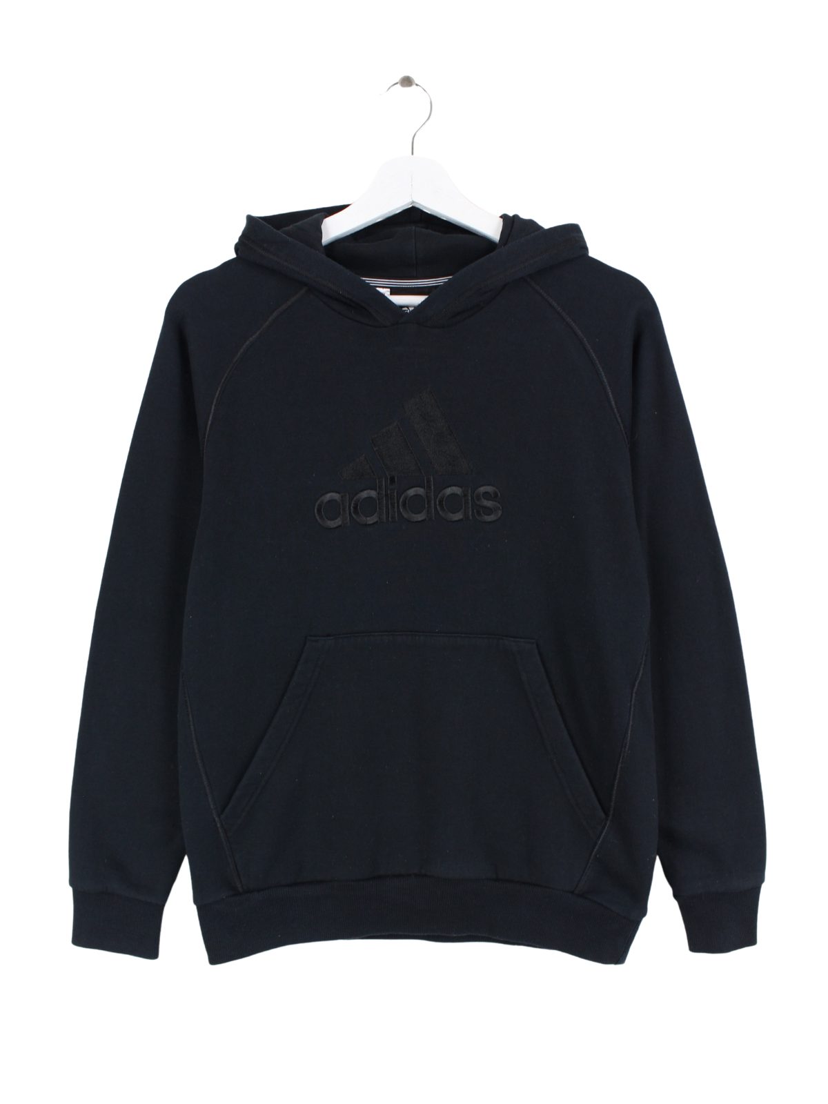 Black Adidas hoodie with black embroidery.