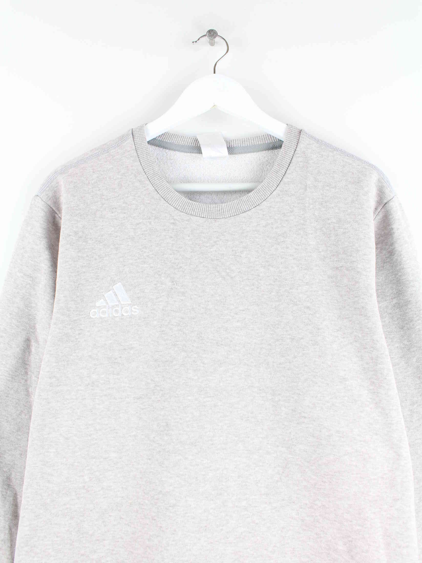 Gray sweater with embroidery from the brand Adidas in size XL. It is made from a cotton blend and is available in very good condition.