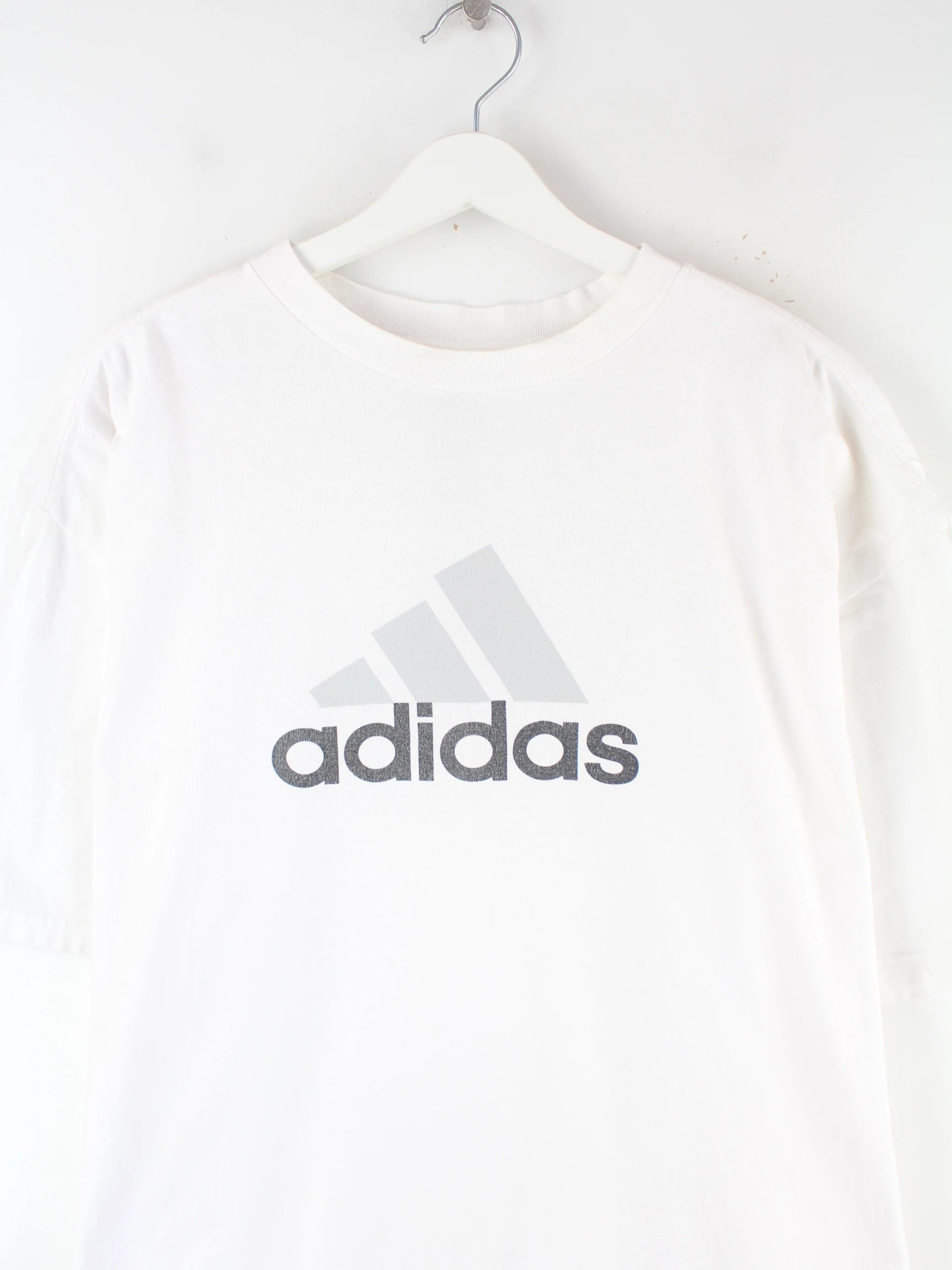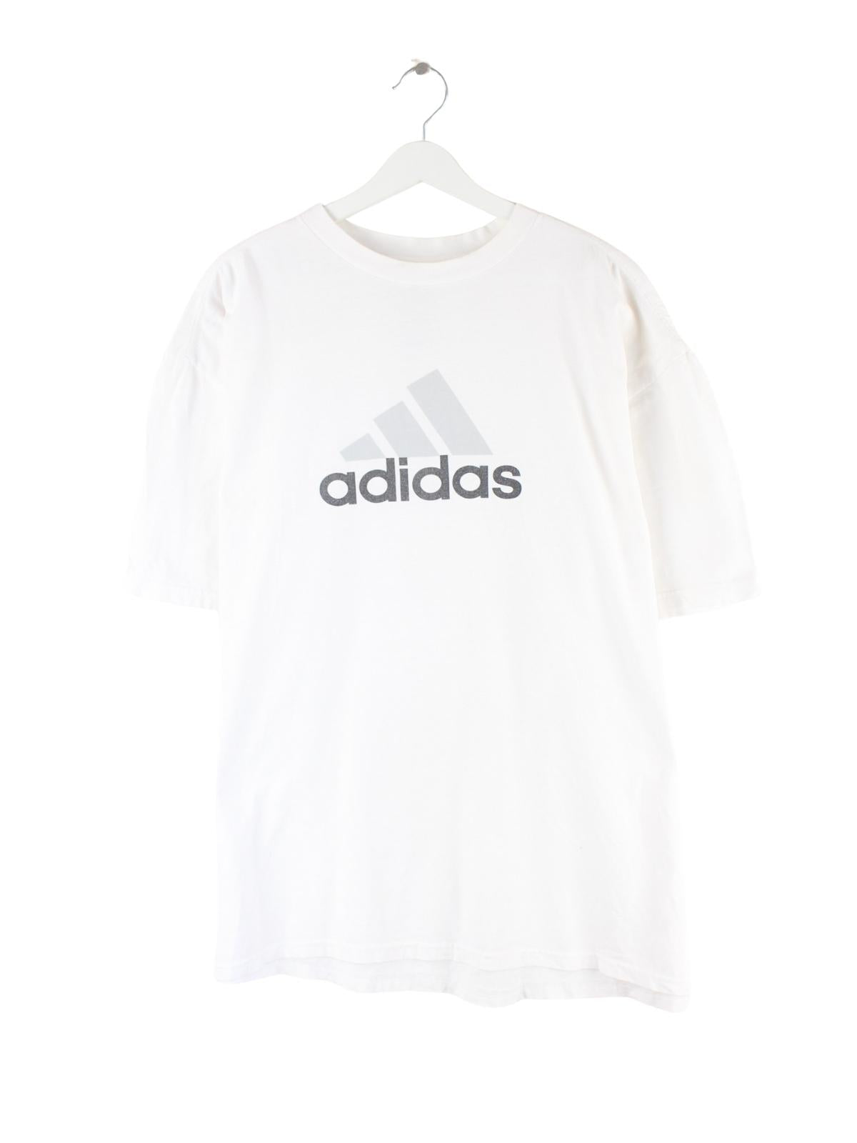 Weißes T-Shirt der Brand Adidas in Größe XL. Es ist aus Baumwolle hergestellt und in sehr gutem Zustand im Angebot. Mit chiquem Logo Print.