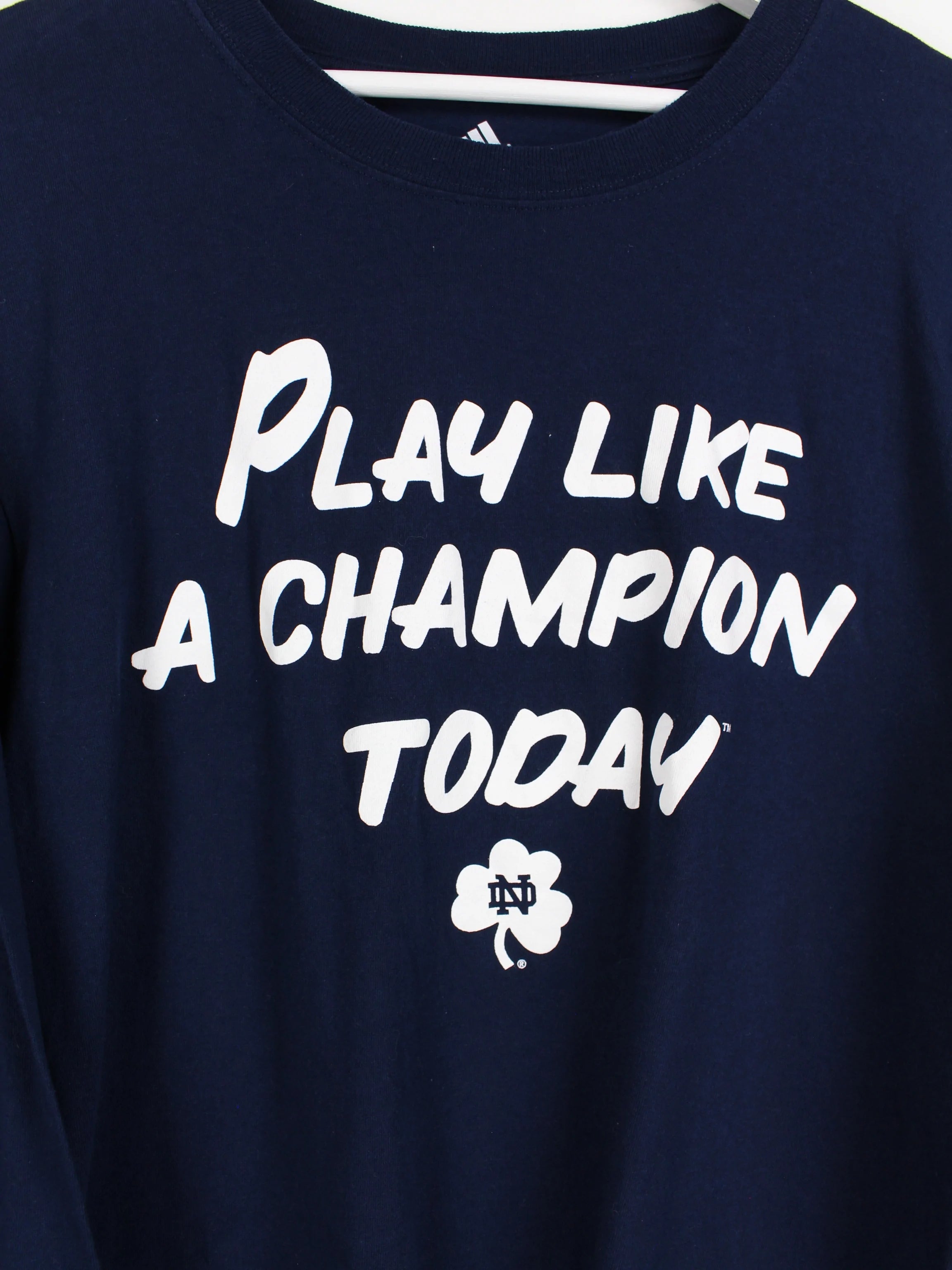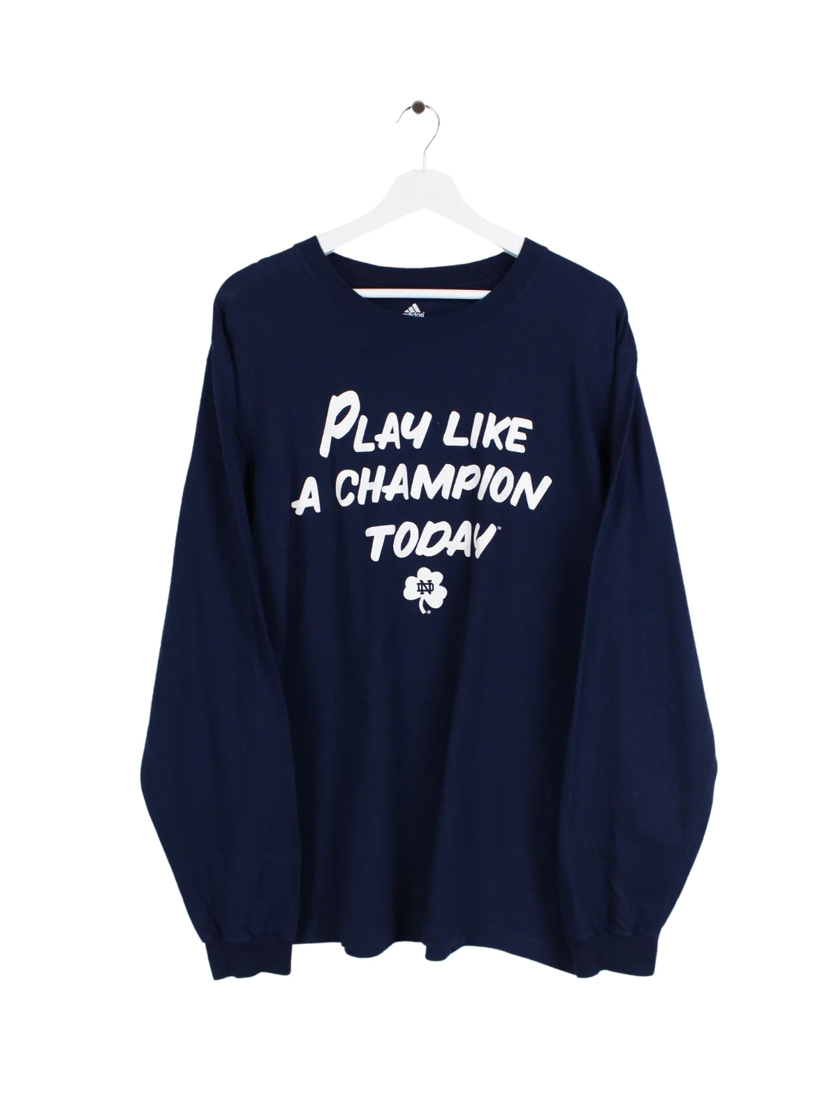 Blue Adidas longsleeve shirt of the Notre Dame team.
