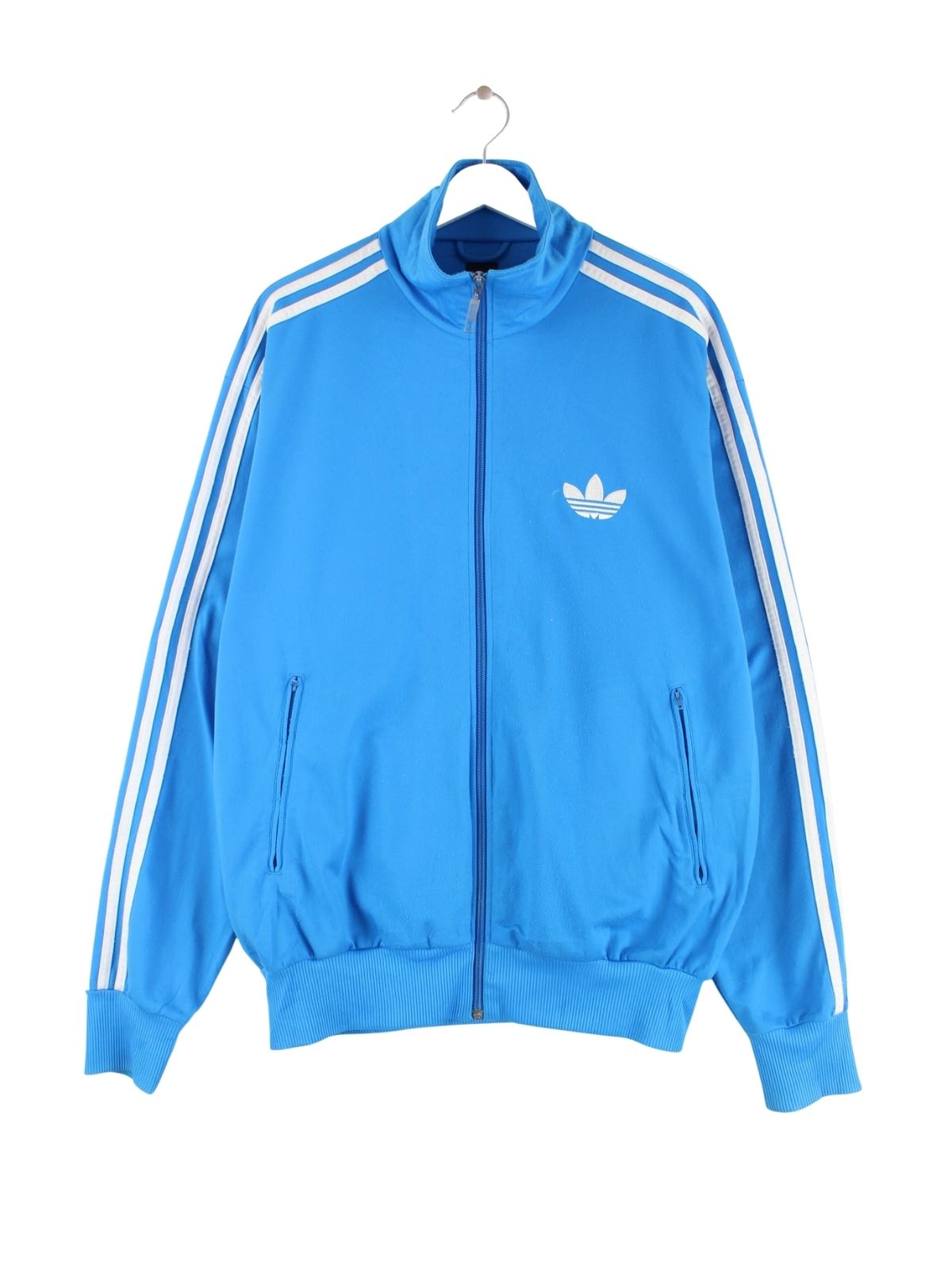 Trainingsjacke der Marke Adidas in Größe L. Sie ist aus Synthetik produziert und in Blau vorrätig.
