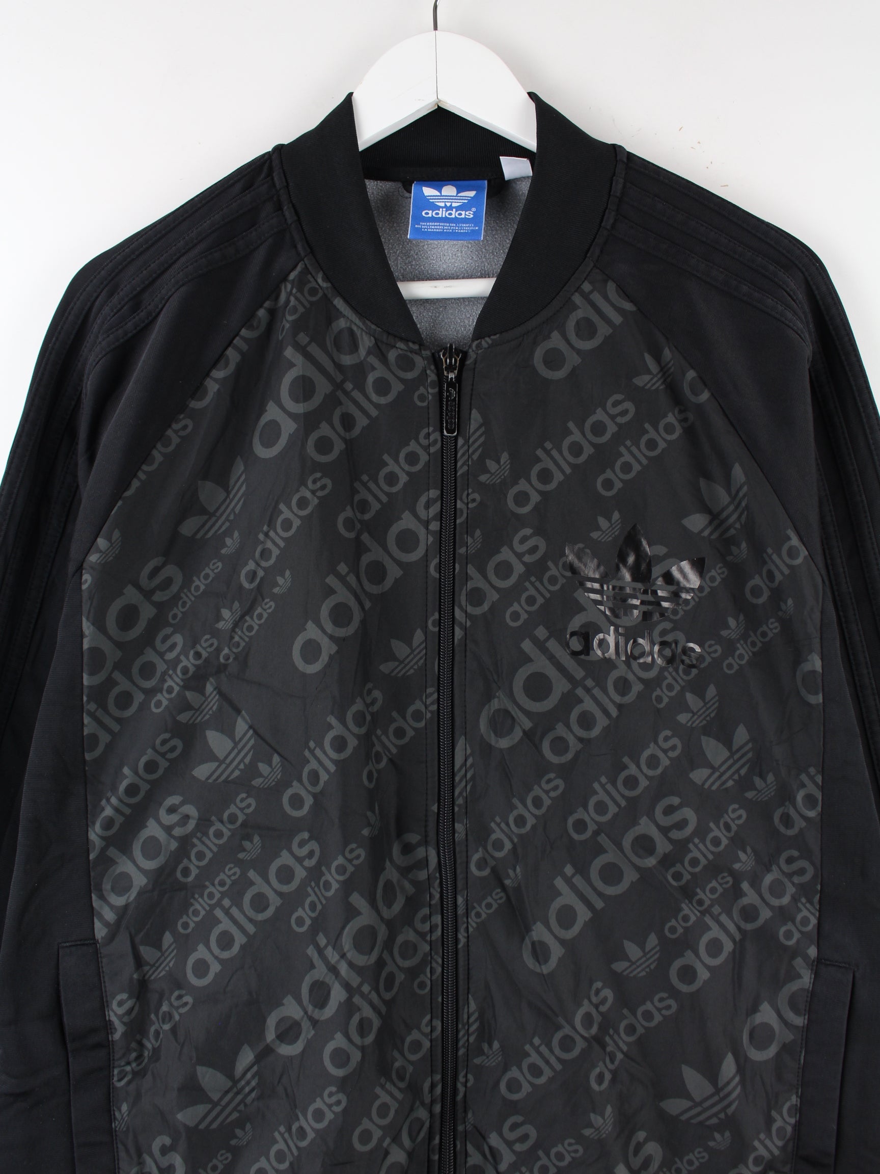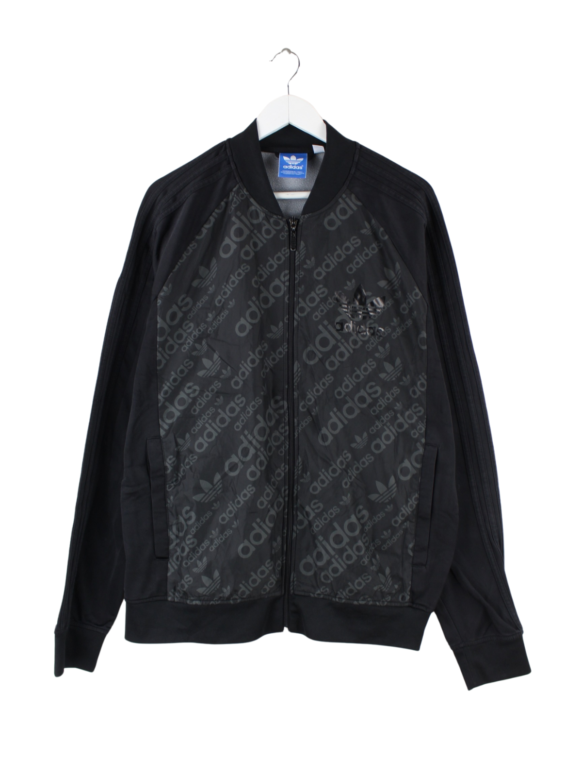 Schwarze Trainingsjacke der Brand Adidas in Größe XL. Sie ist aus Synthetik angefertigt und in sehr gutem Zustand zu bekommen. Mit schönem Pattern Print.
