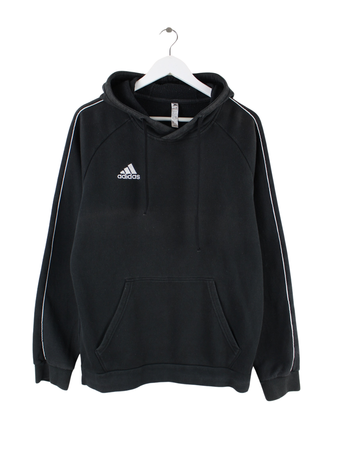 Schwarzer Hoodie aus dem Hause Adidas in Größe M. Er ist aus einer Baumwollmischung und in gutem Zustand in Stock.