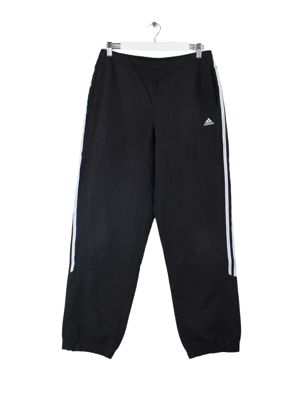 Track pants from Adidas in size L. They are made of synthetic material and come in black.