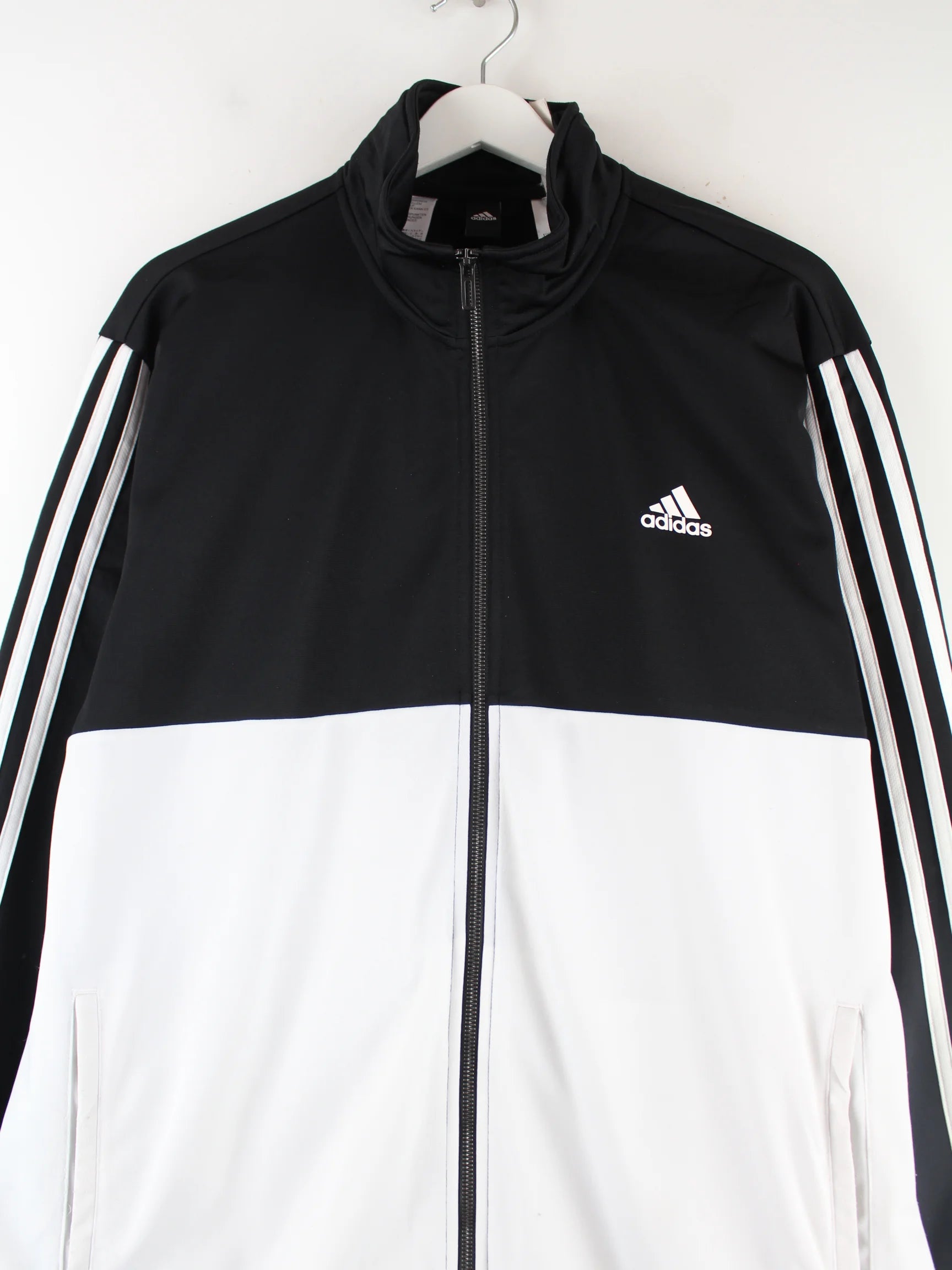 Schwarze Trainingsjacke vom Label Adidas in Größe XL. Sie ist aus Synthetik hergestellt und in gutem Zustand in Stock.