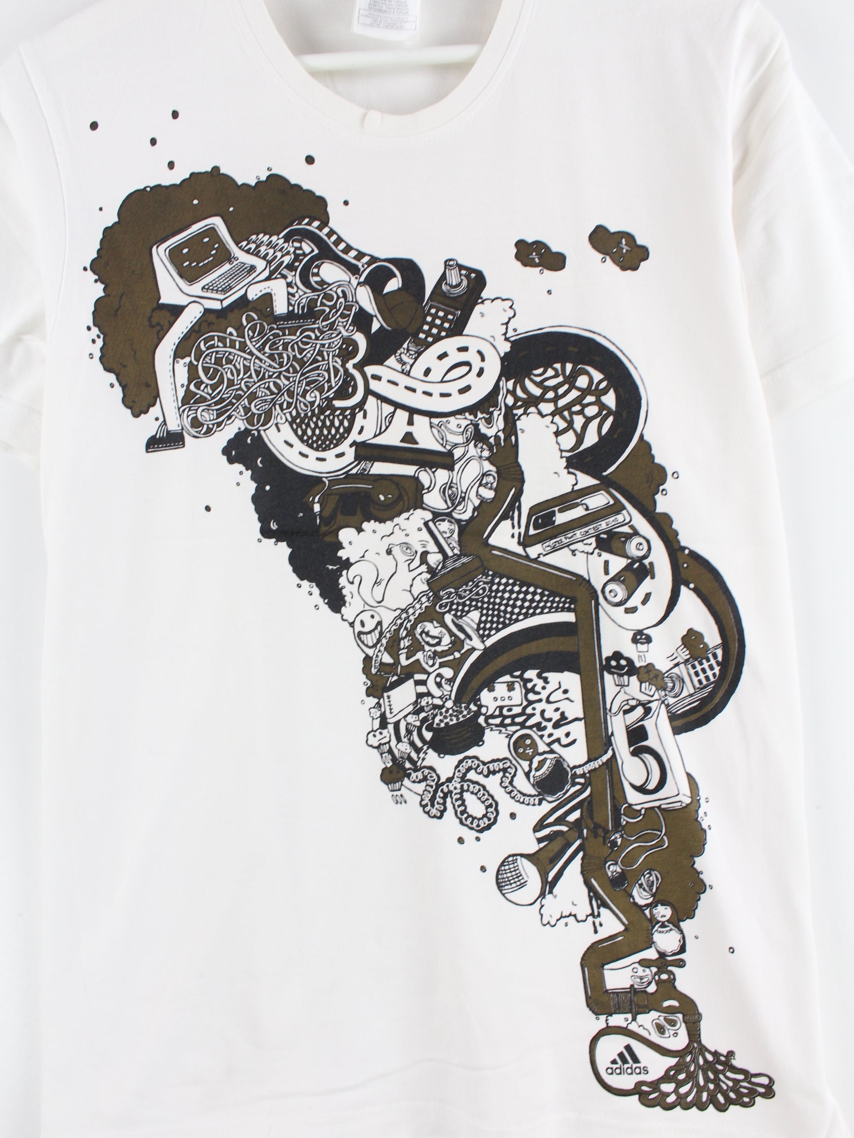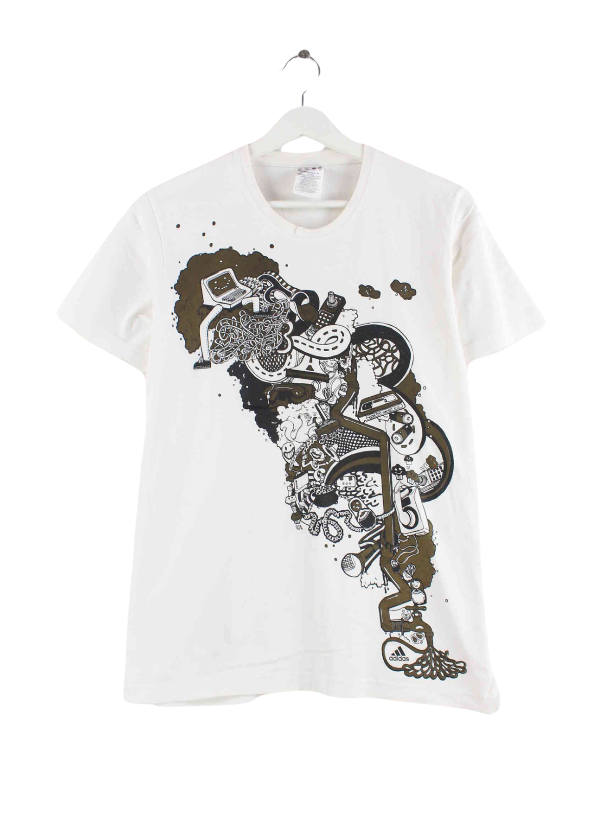 Special white T-shirt from Adidas in size XS. It is made of cotton and is available in very good condition. With a chic print.