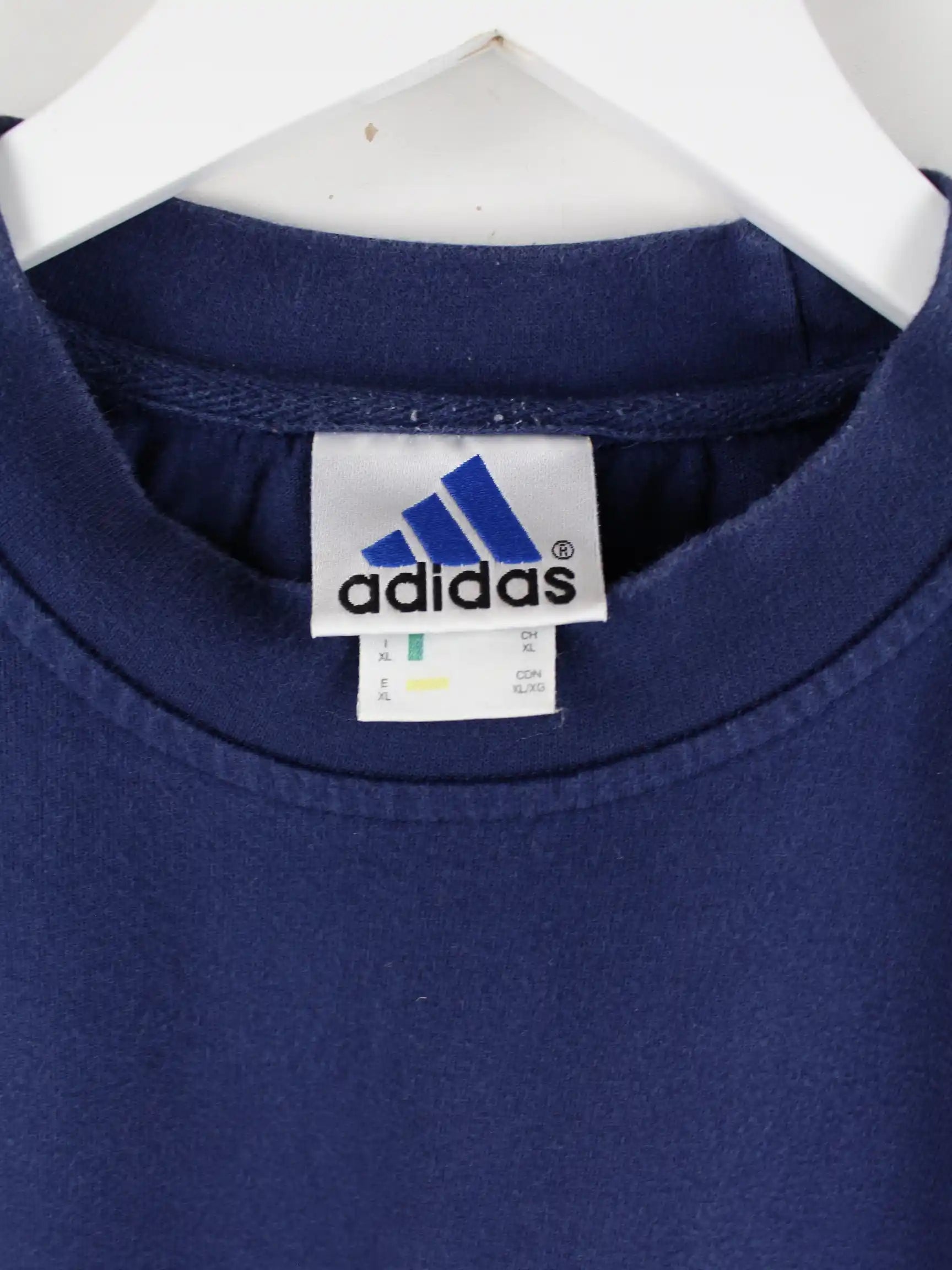Blaues T-Shirt von Adidas aus den 90'ern in Größe XL. Es ist aus Baumwolle gemacht und in gutem Zustand bei uns zu bekommen.