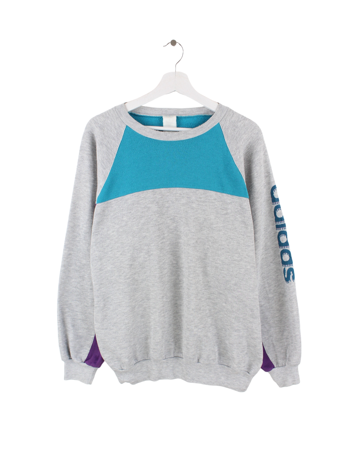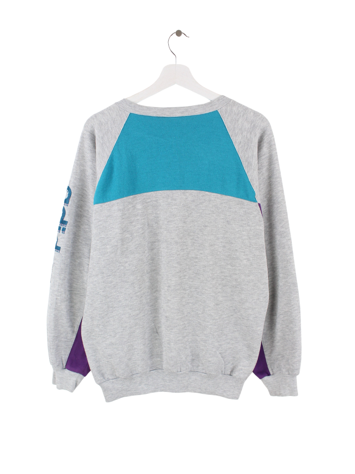 Grey Adidas vintage sweater from the 80s, with logo on the sleeve.