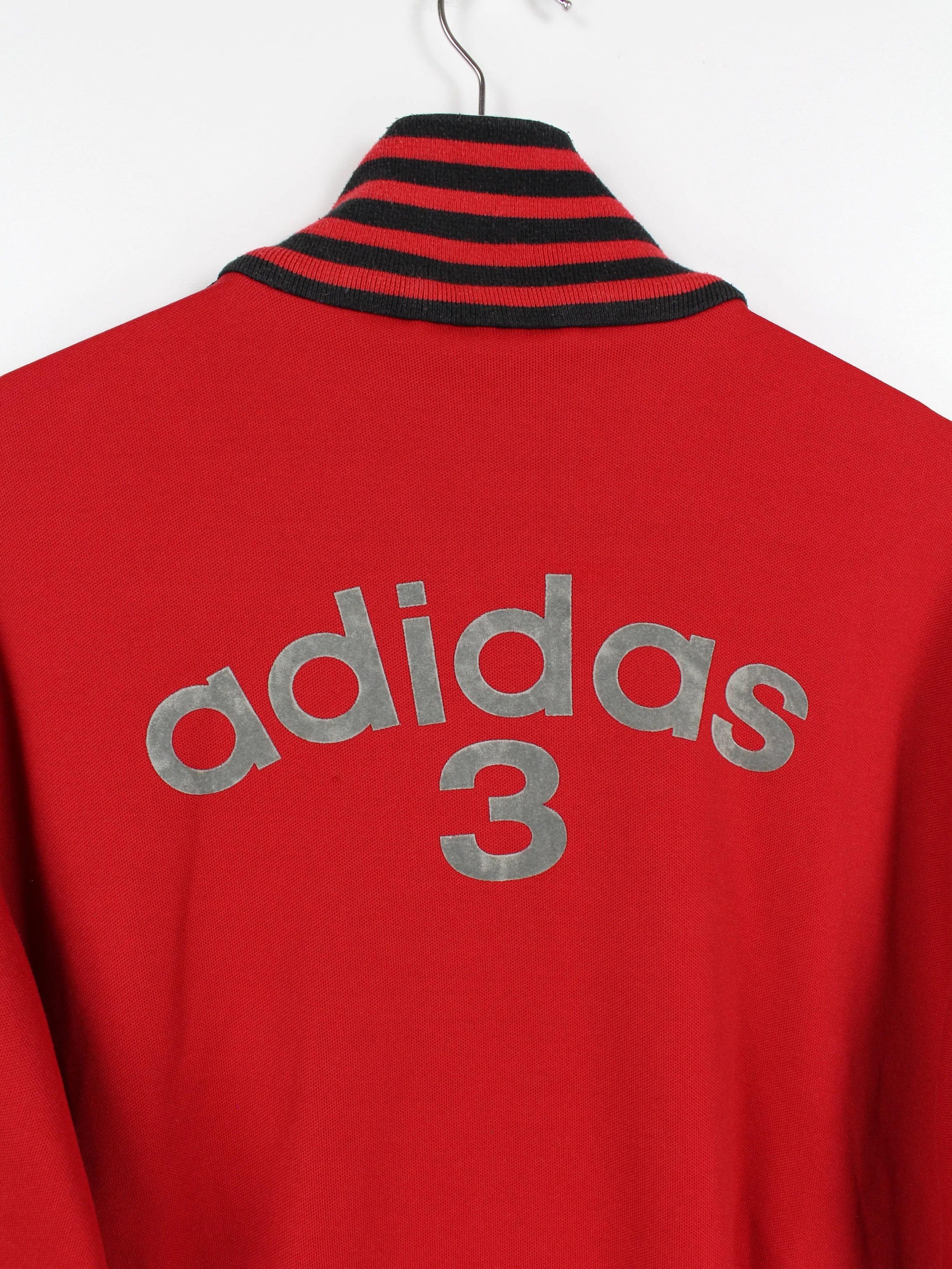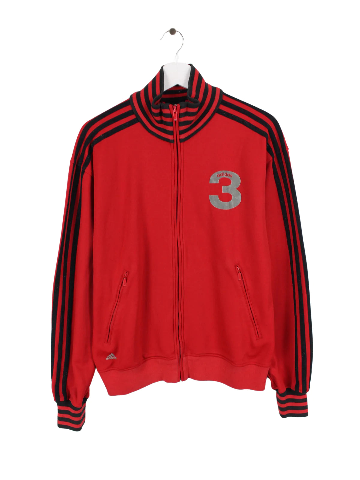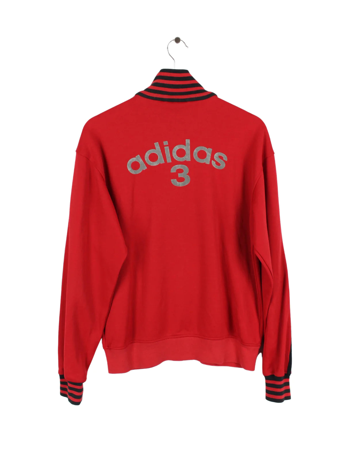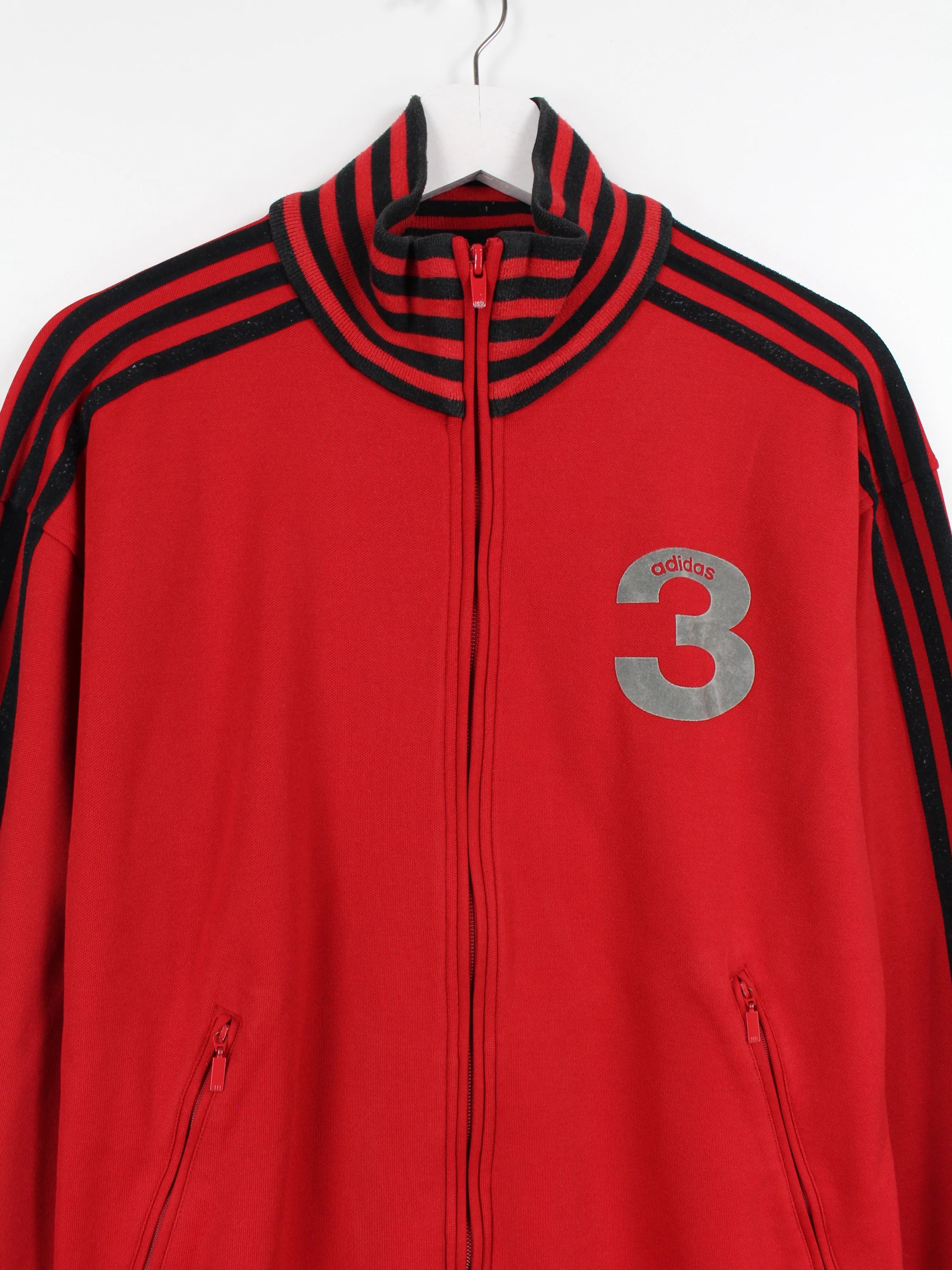 Red Adidas 3 sweat jacket in red.