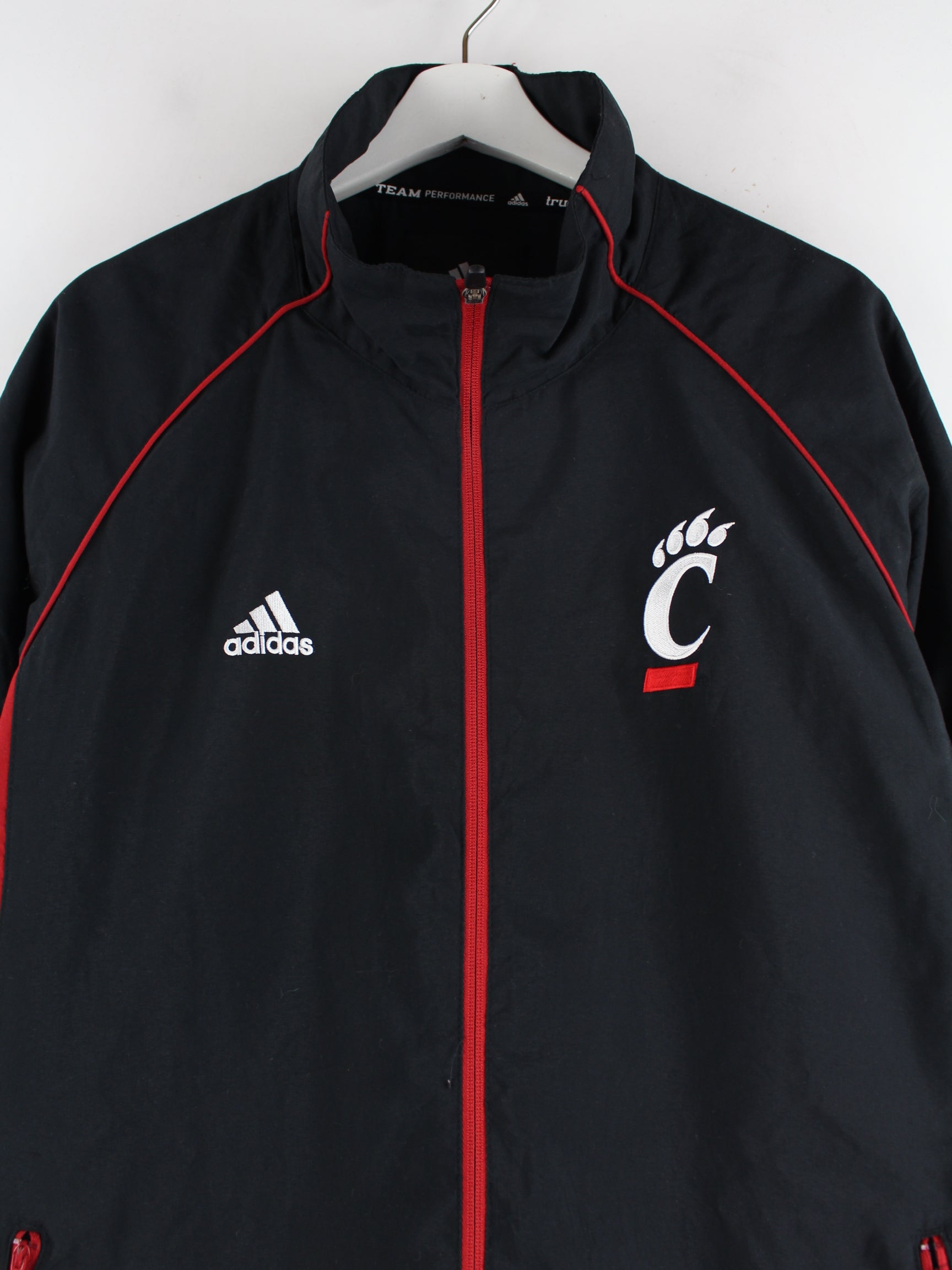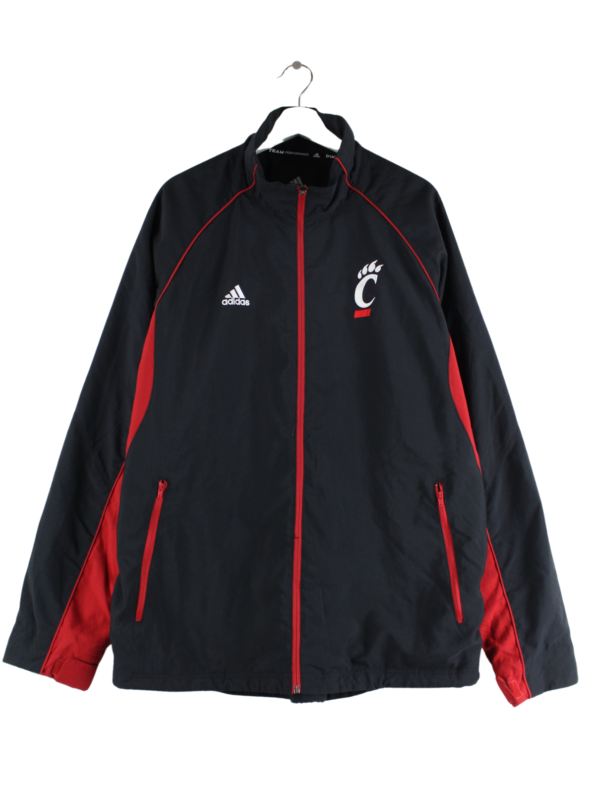 Trainingsjacke der Marke Adidas in Größe XXL. Sie ist aus Synthetik gefertigt und in Schwarz in Stock.