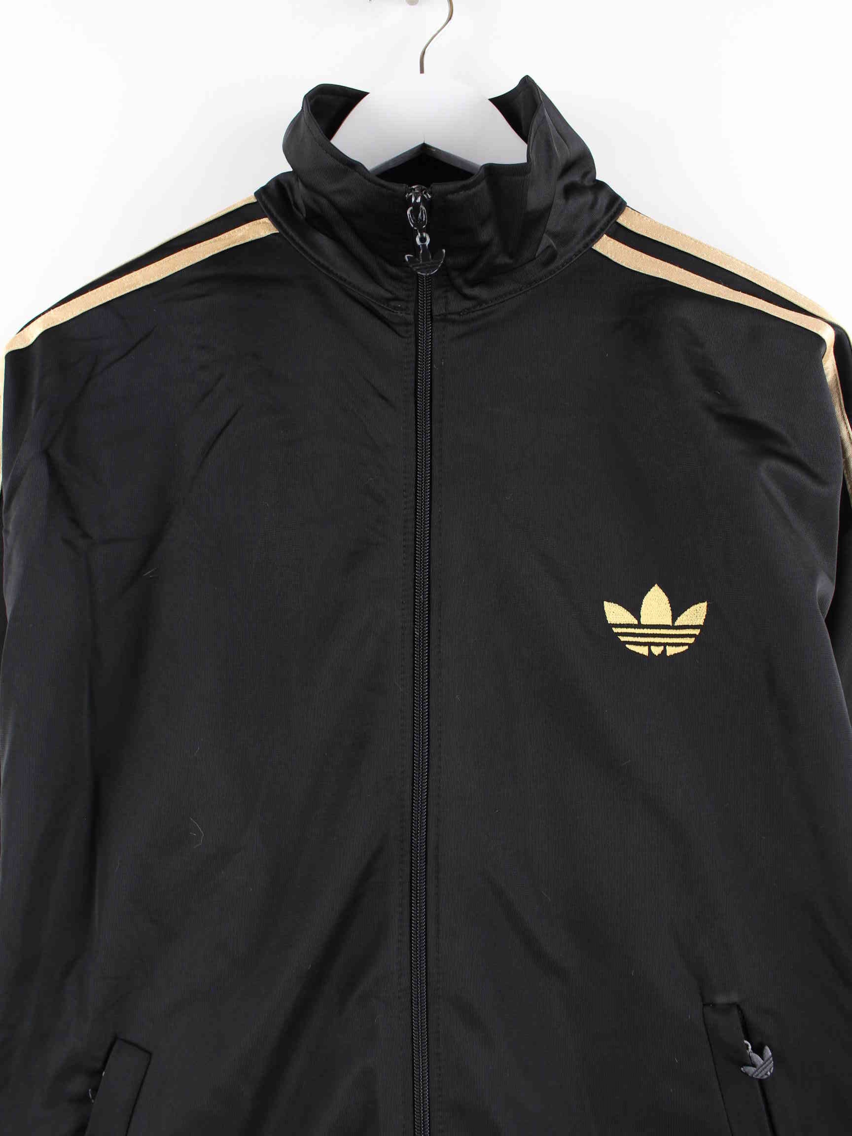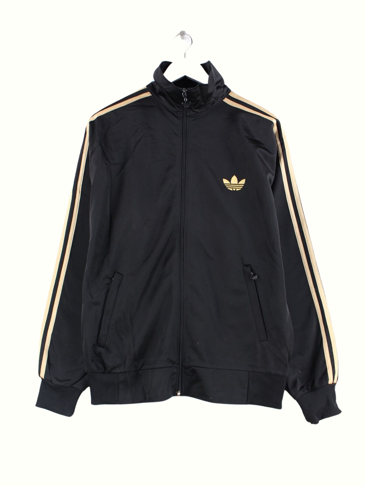 Black training jacket from Adidas in size M. It is made of synthetic material and is available in good condition.