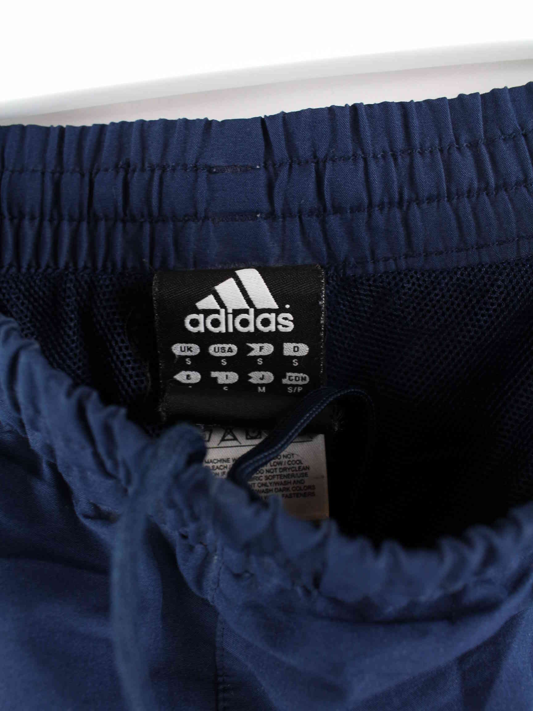 Blue track pants from Adidas from the early 2000s in size S. They are made of synthetic material and are in very good condition.