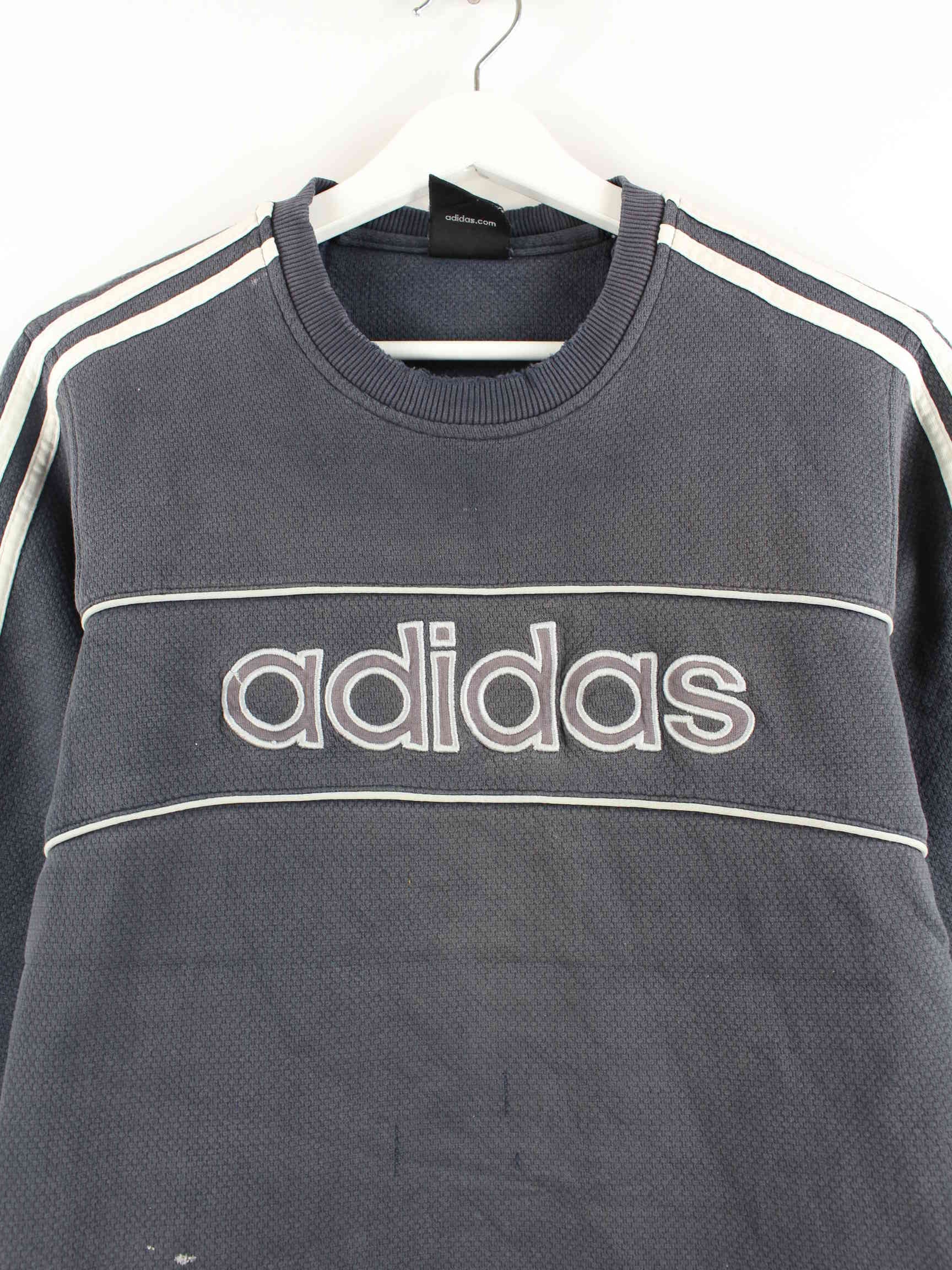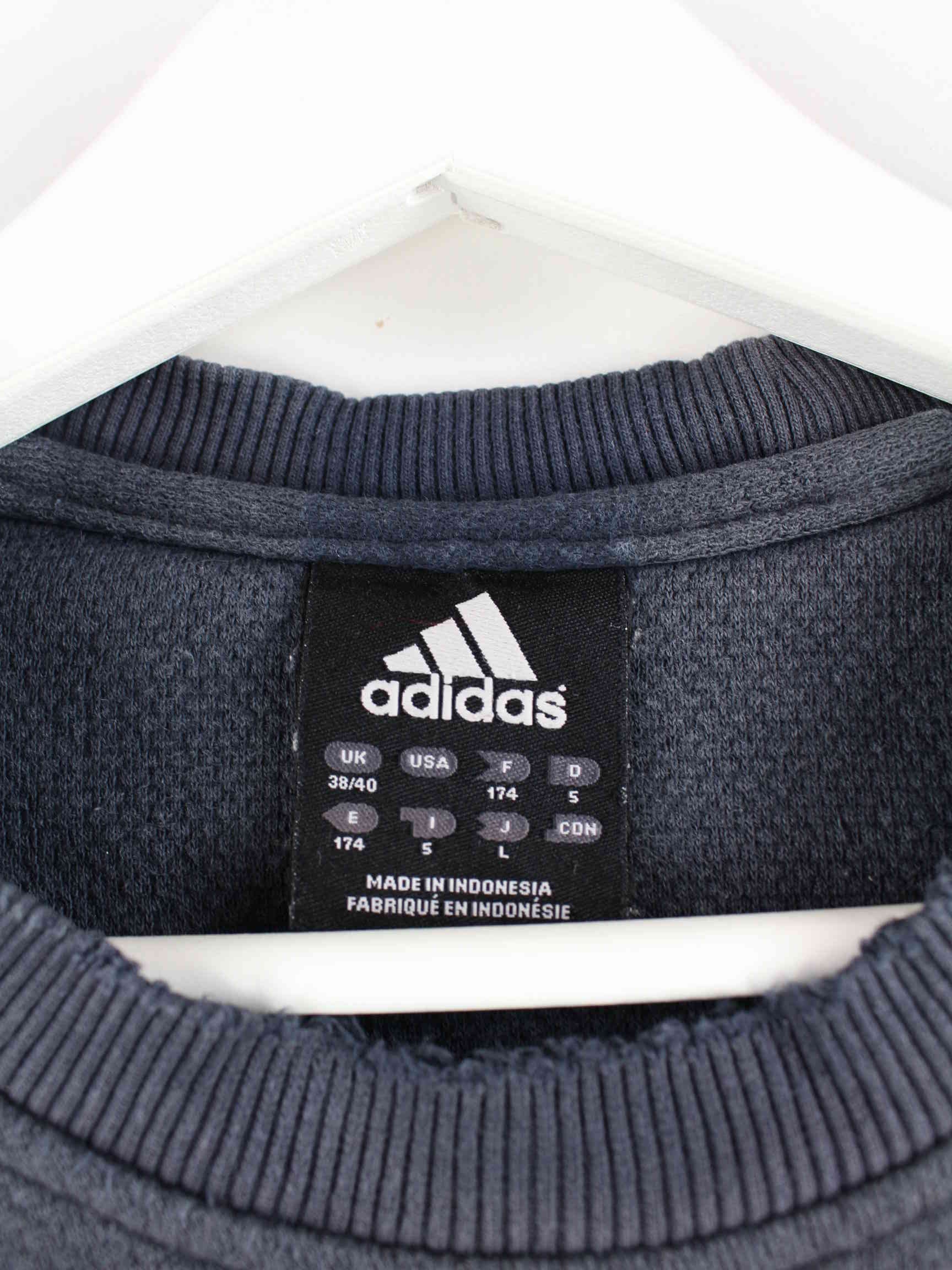Blue sweater with embroidered logo of the Adidas label from the early 2000s in size S. It is made from a cotton blend. We would describe the condition as 'OK' (see pictures).