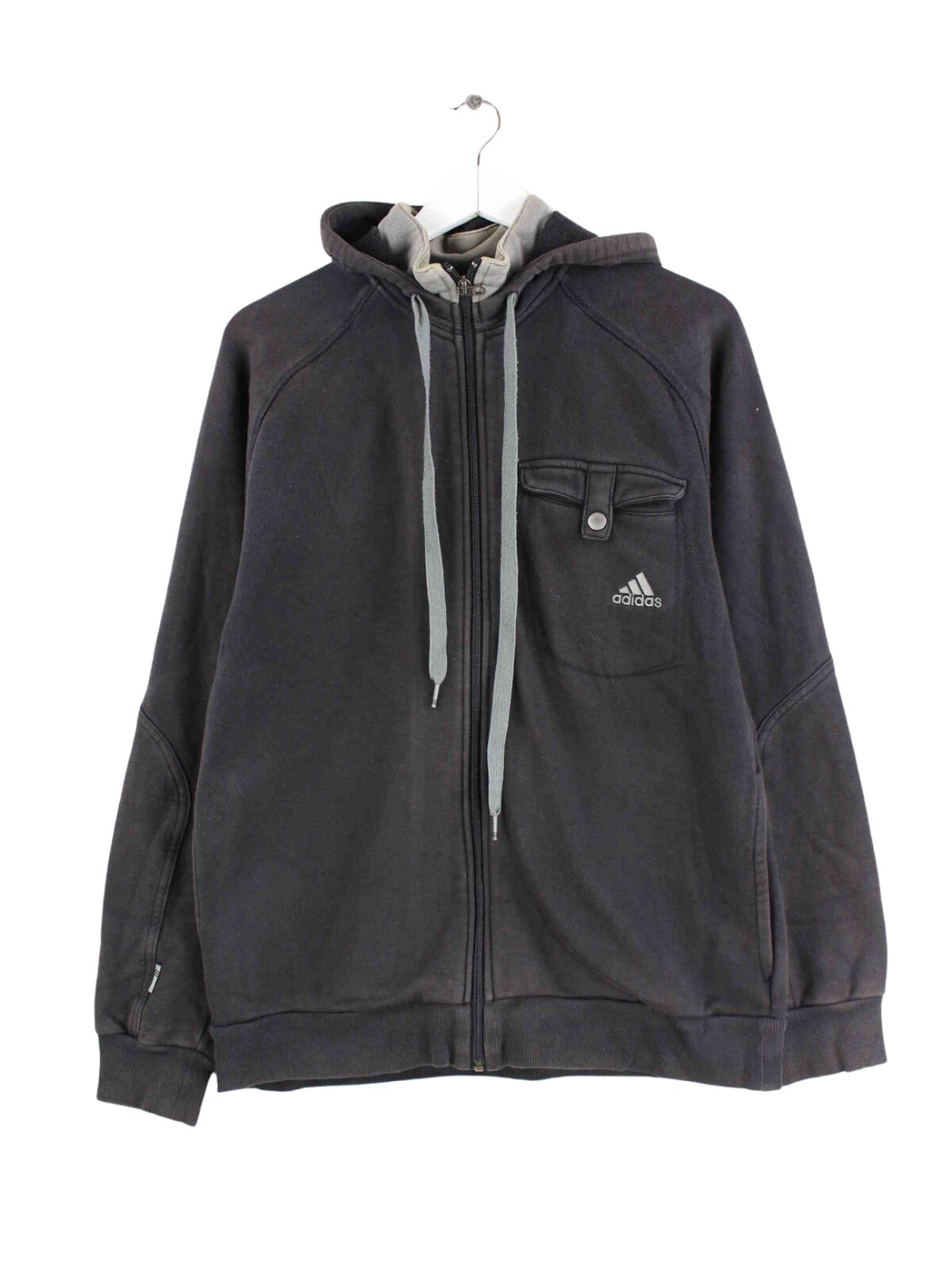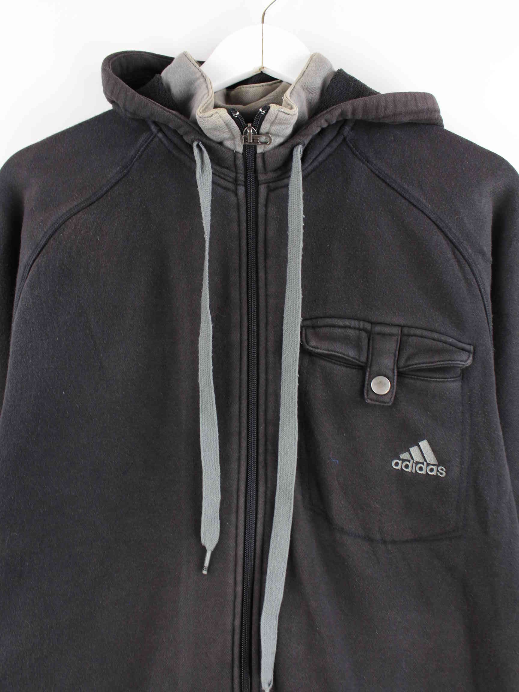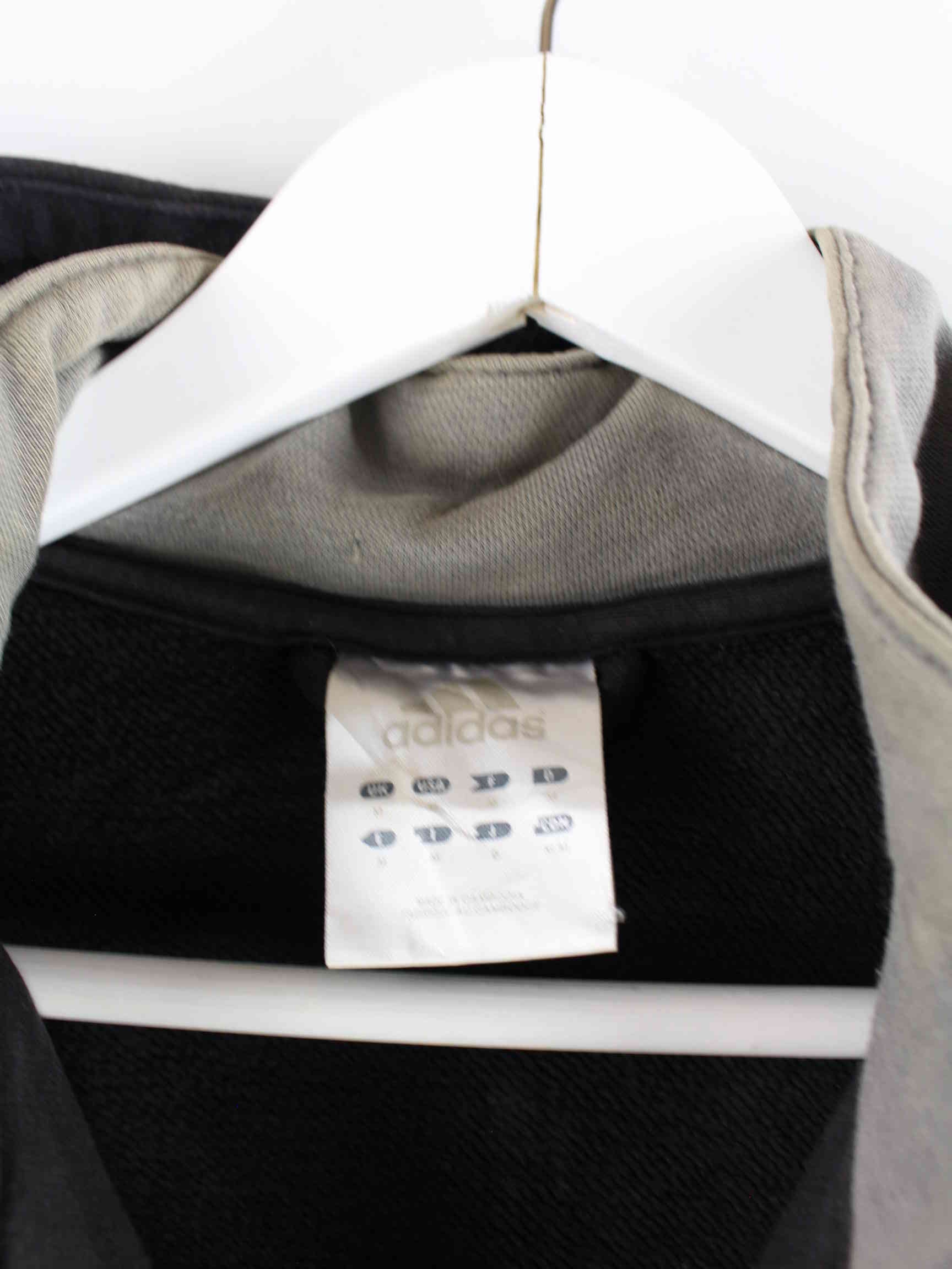 Hoodie from Adidas with embroidery and zipper in size M from the beginning of the 2000s. It is made from a cotton blend and is available in black.