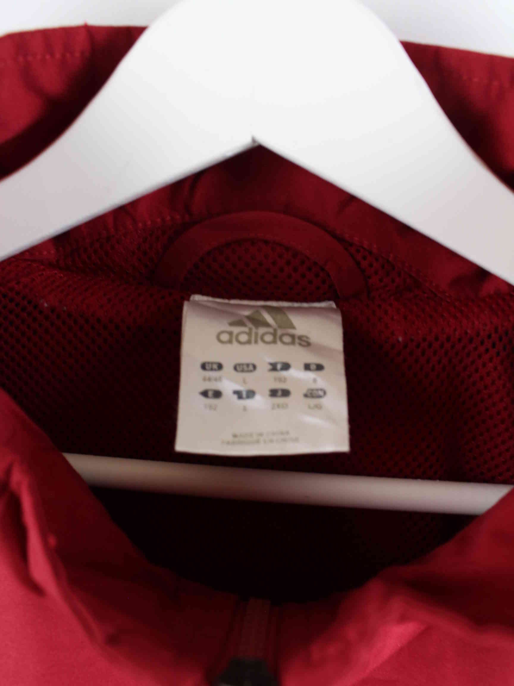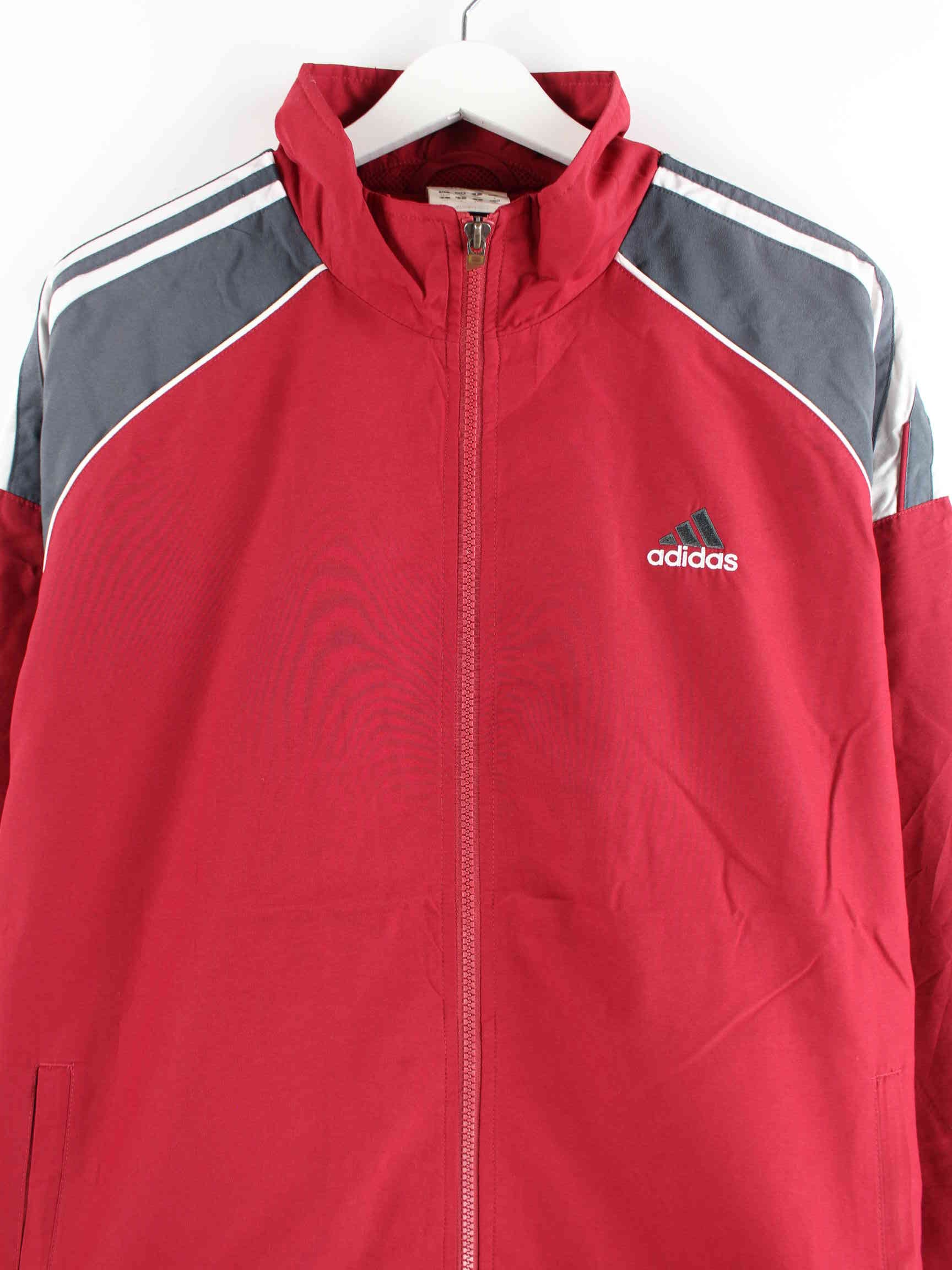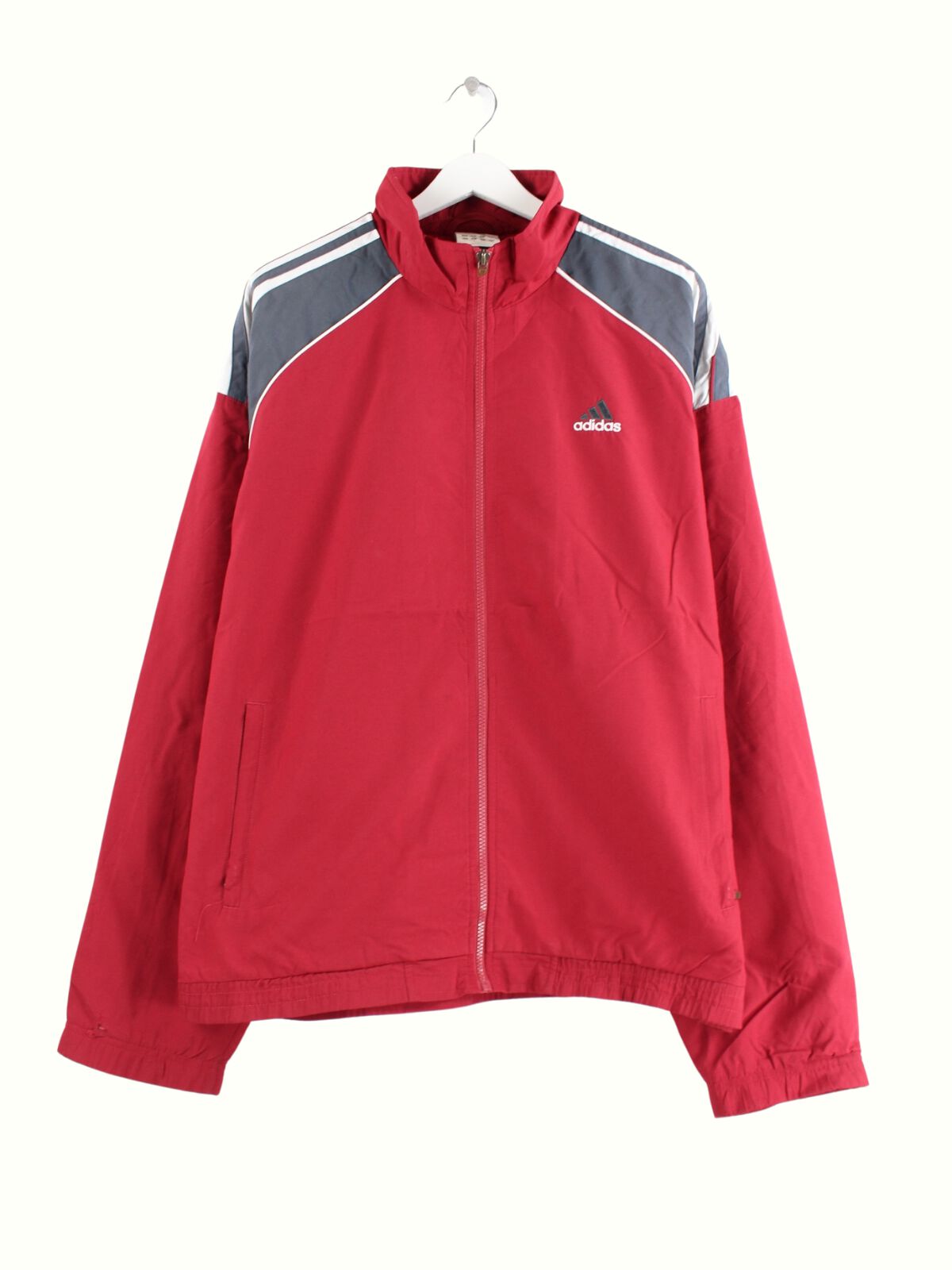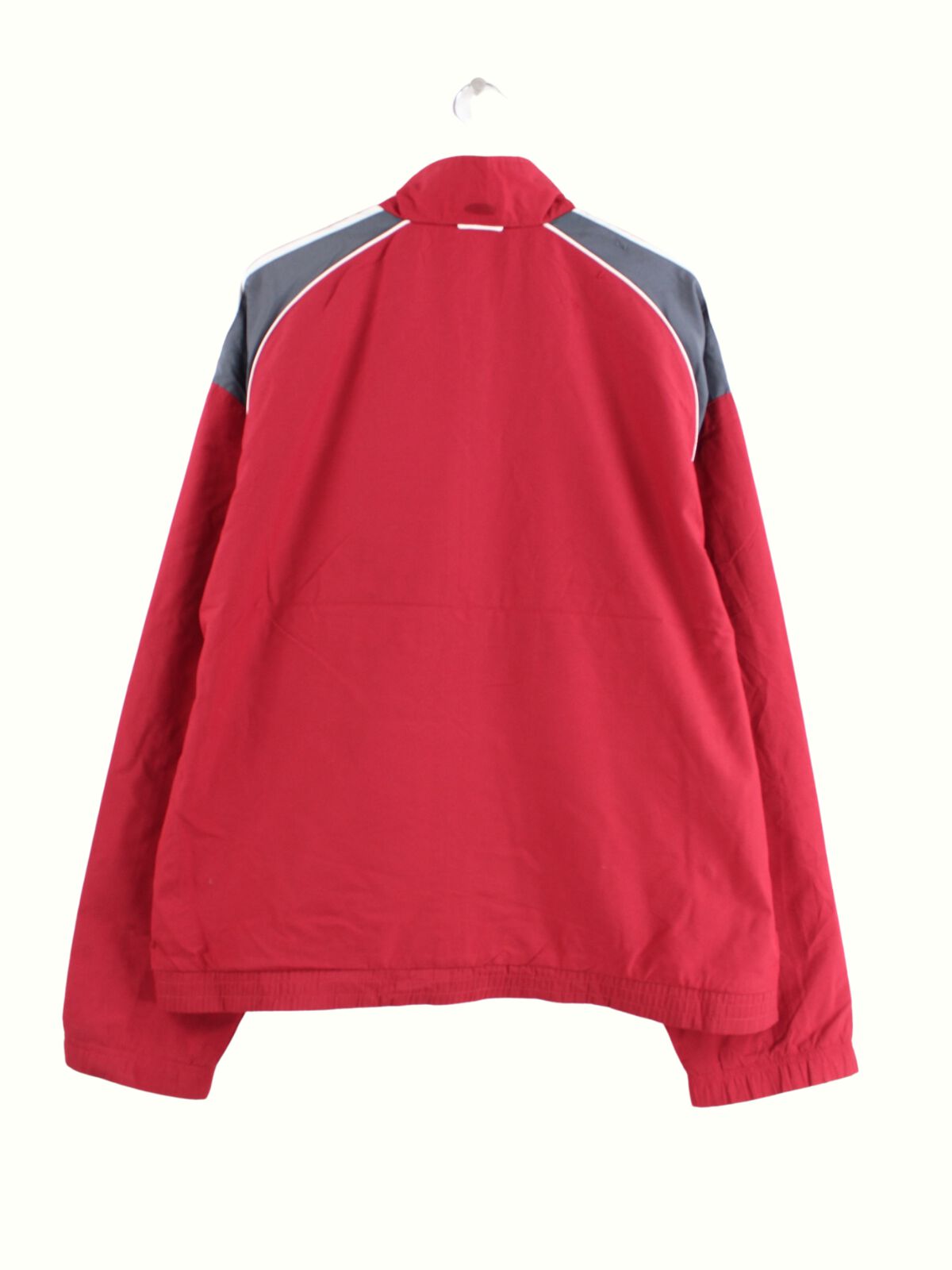 Red training jacket from the Adidas brand from the early 2000s in size XL. It is made of synthetic material and is available from us in good condition.
