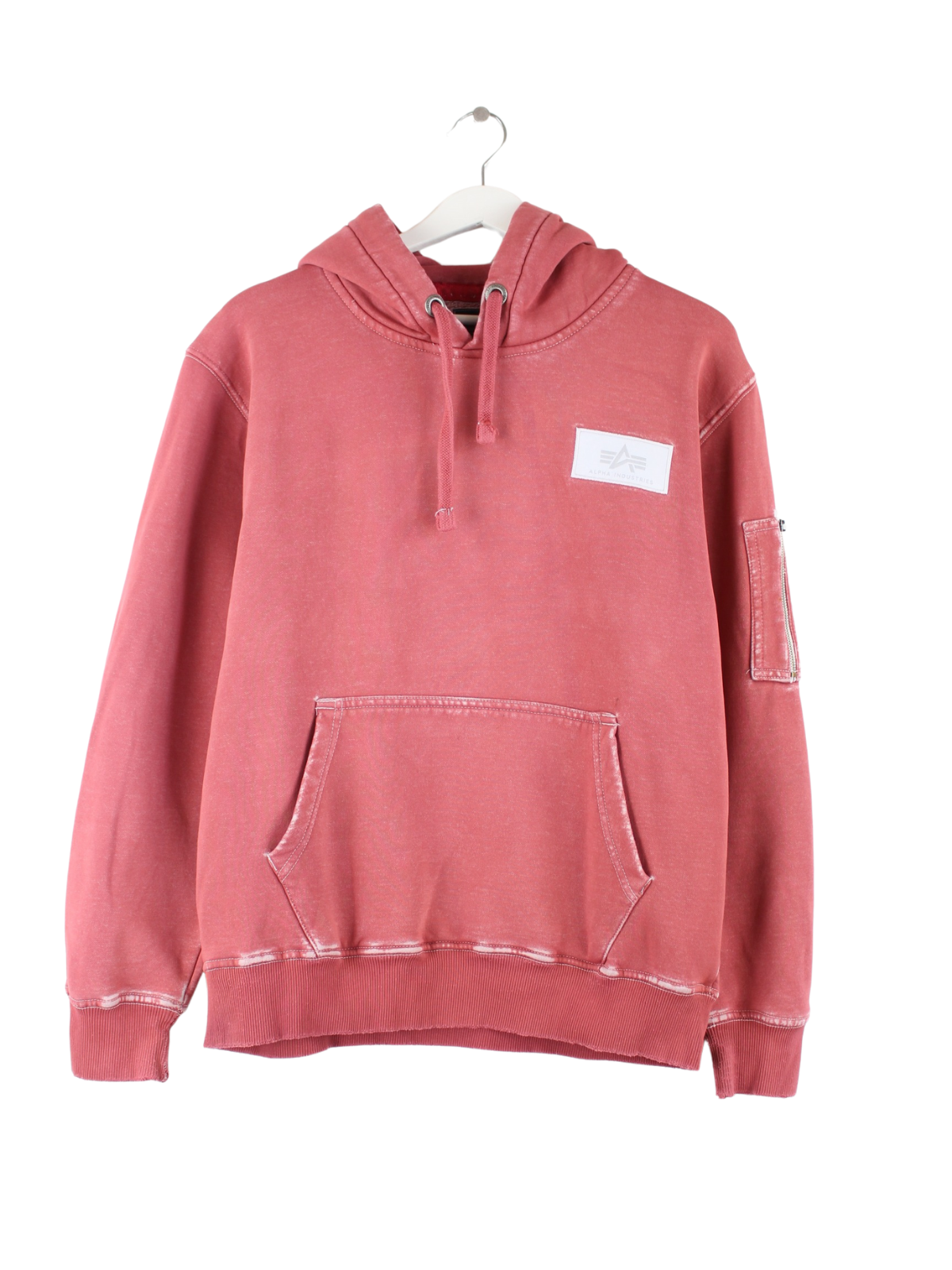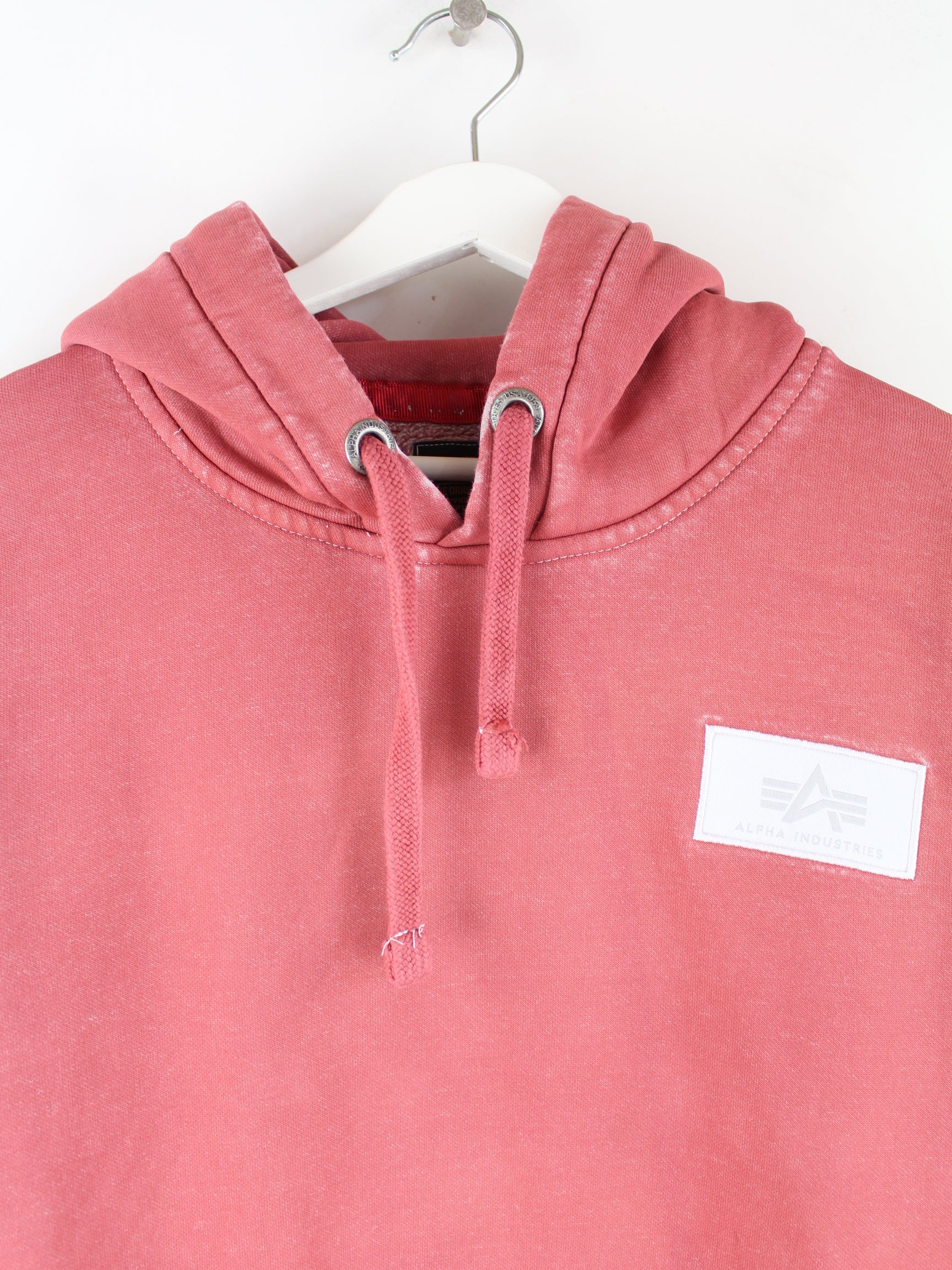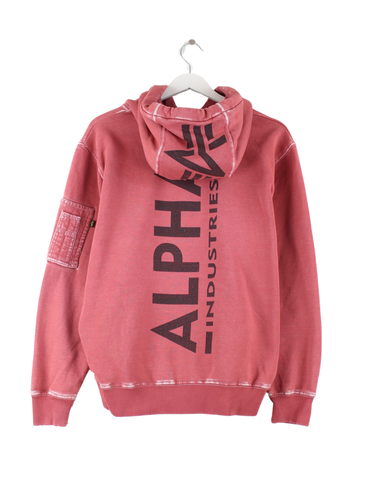 Pink hoodie from the label Alpha Industries in size M. It is made of a cotton blend and in good condition in stock.