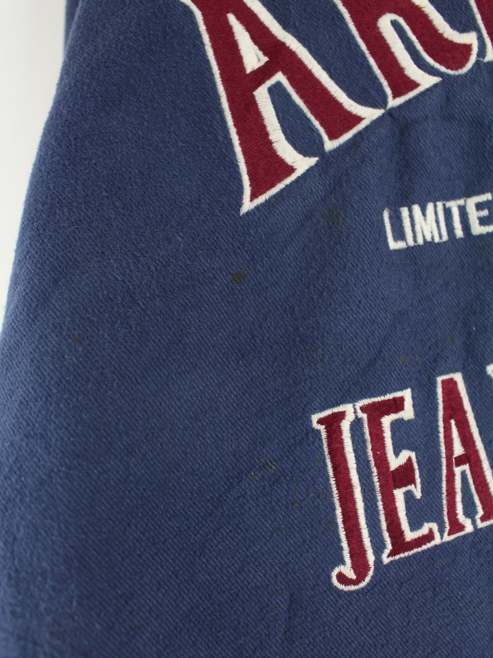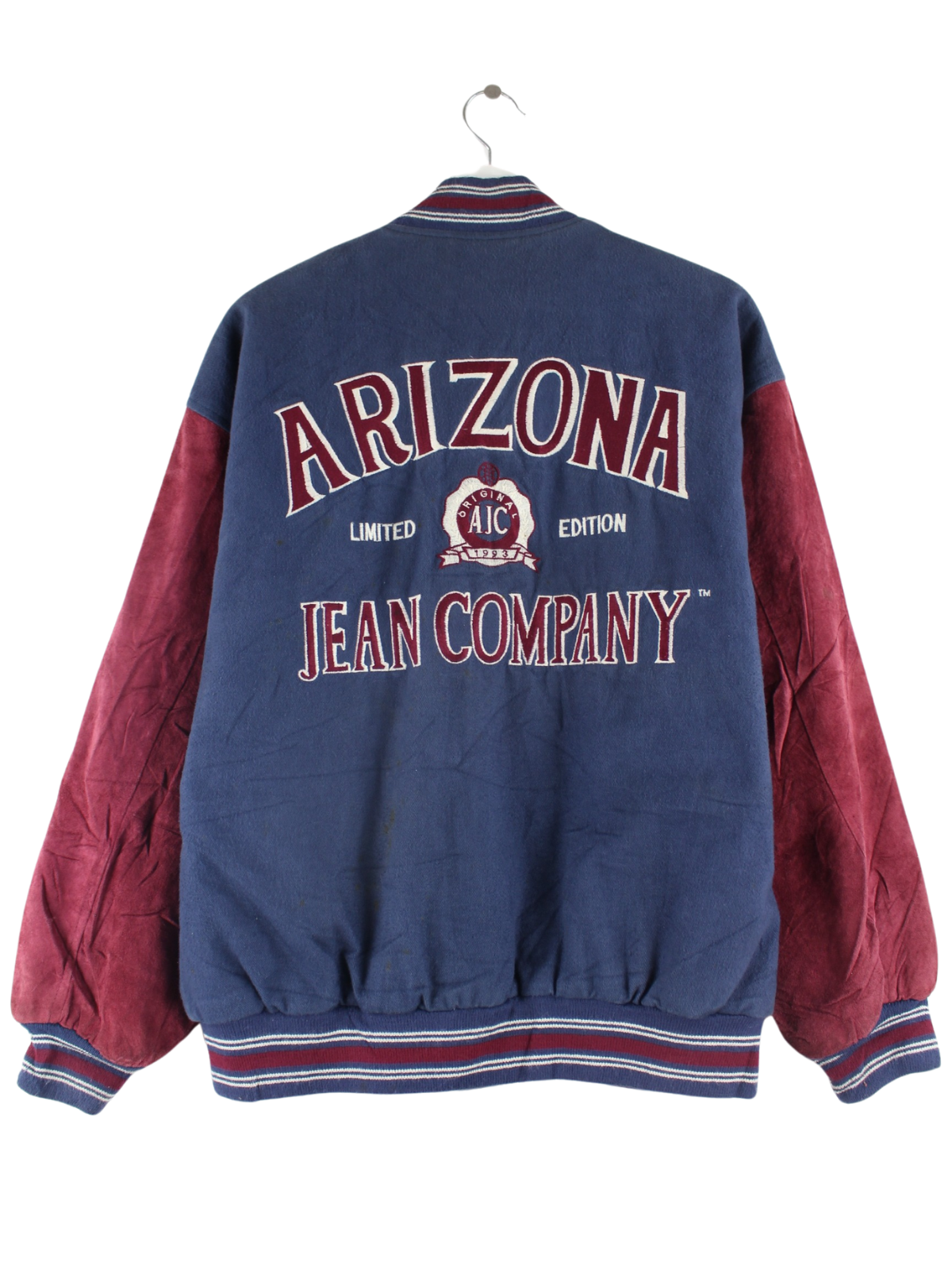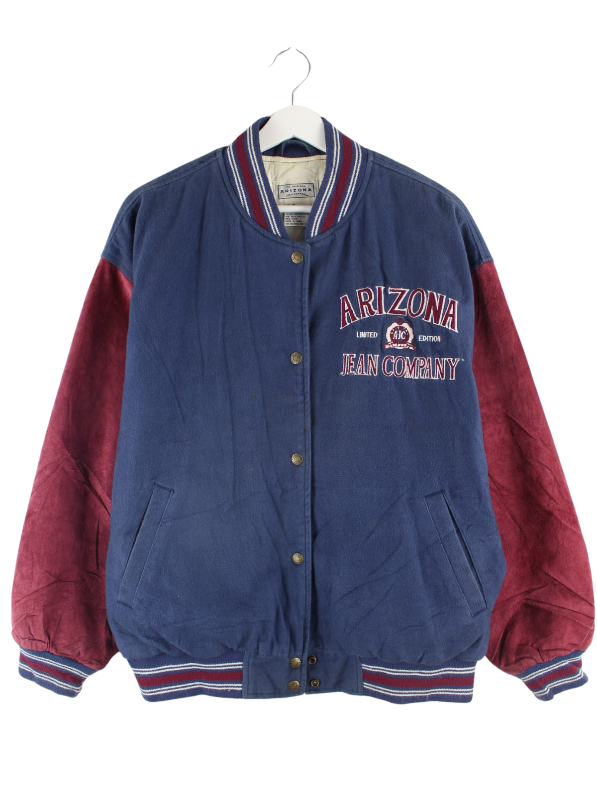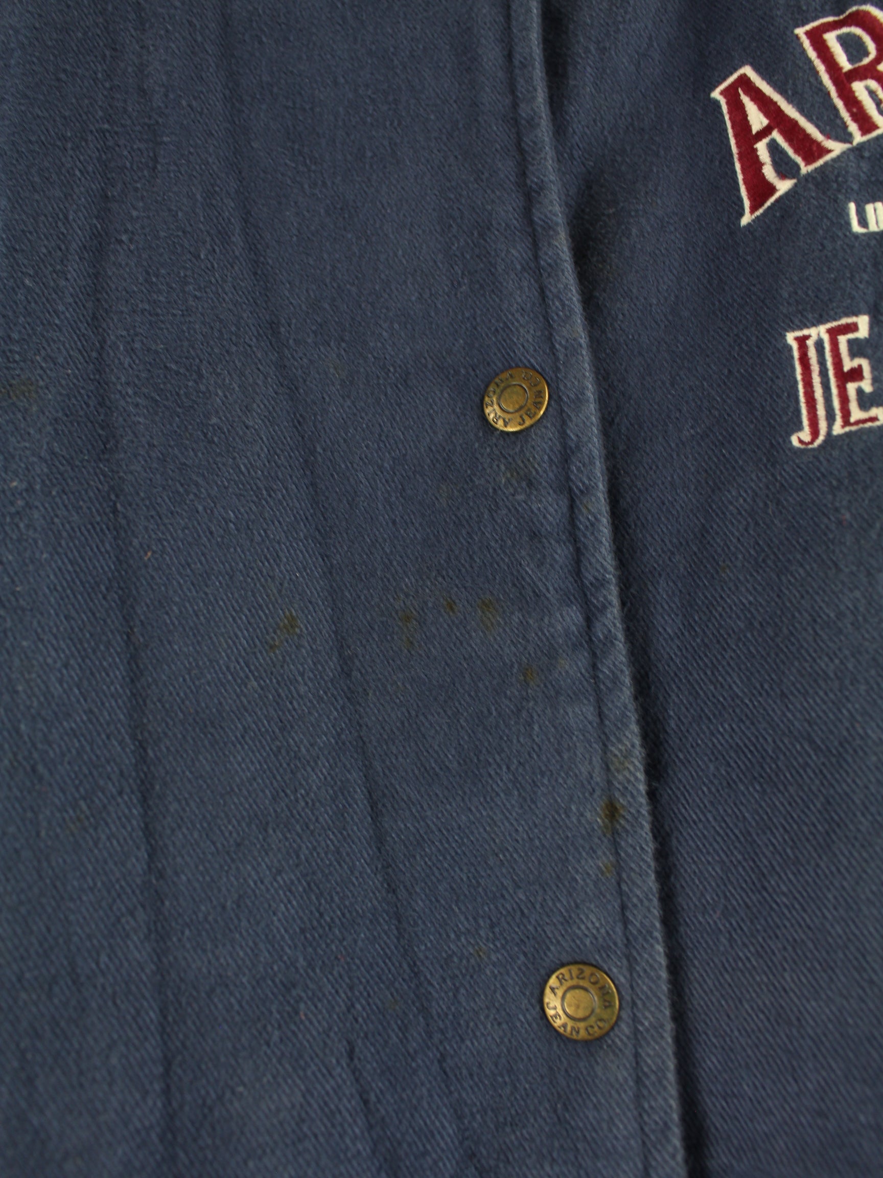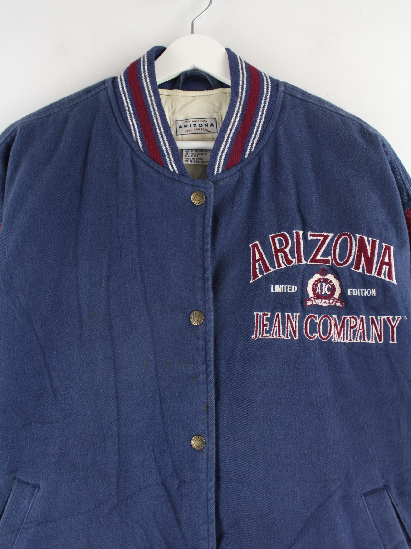 Blue jacket with embroidery from the Arizona brand from the 90's in size M. It is made of mixed fabric. We would describe the condition as 'fine' (see pictures).