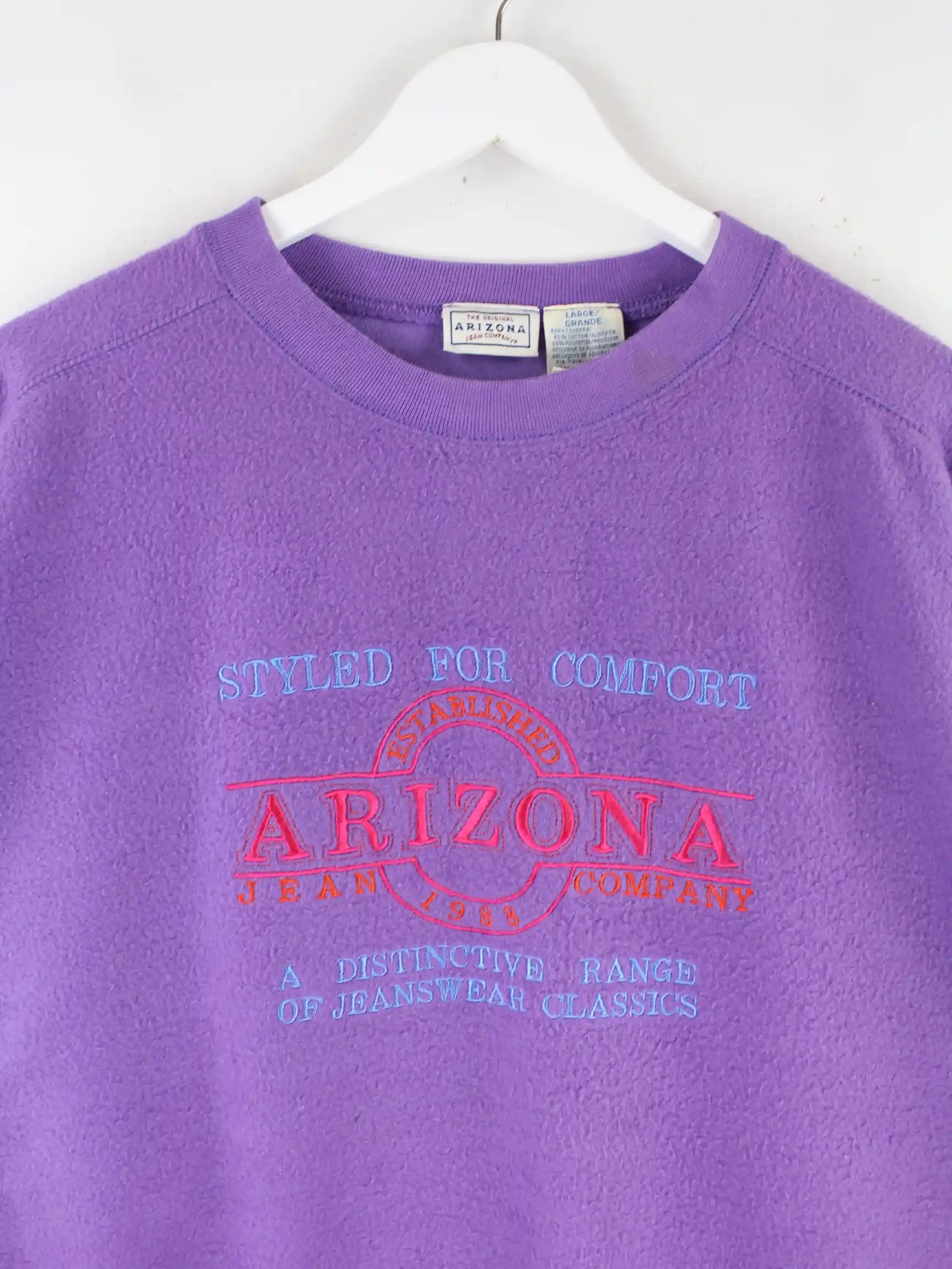 Lilafarbener Sweater von Arizona aus den 90'ern in Größe L. Er ist aus einer Baumwollmischung produziert und in gutem Zustand zu haben.