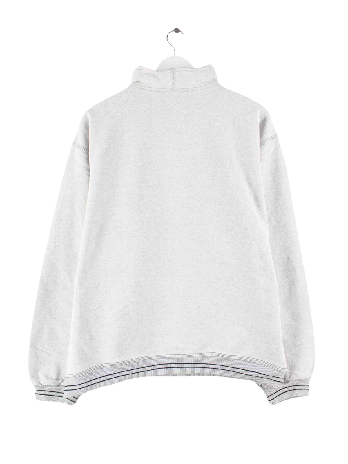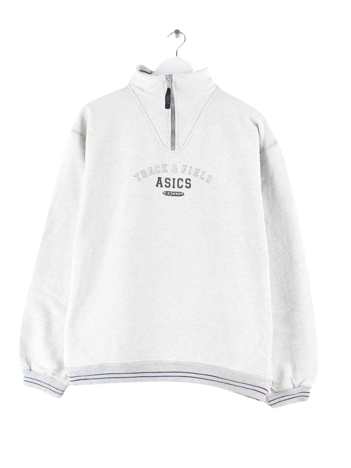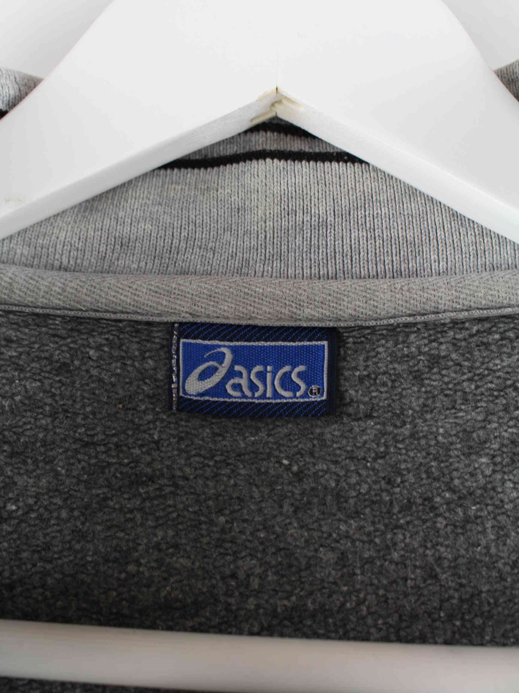Gray sweater with half zip from the brand Asics from the 90's in size L. It is made from a cotton blend and is in good condition in stock.