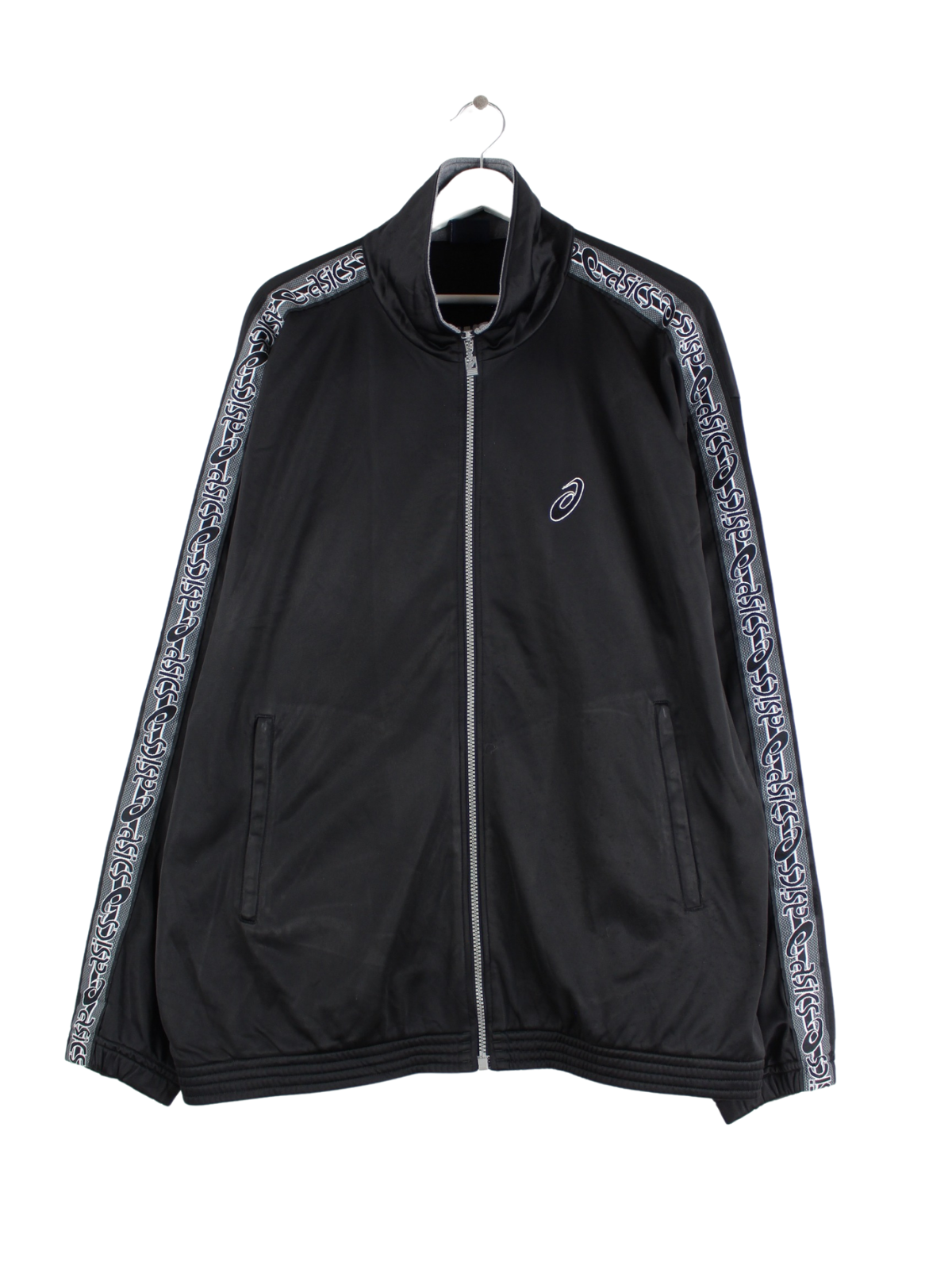 Black training jacket by Asics from the 90's in size XL. It is made of synthetic material and is in good condition.