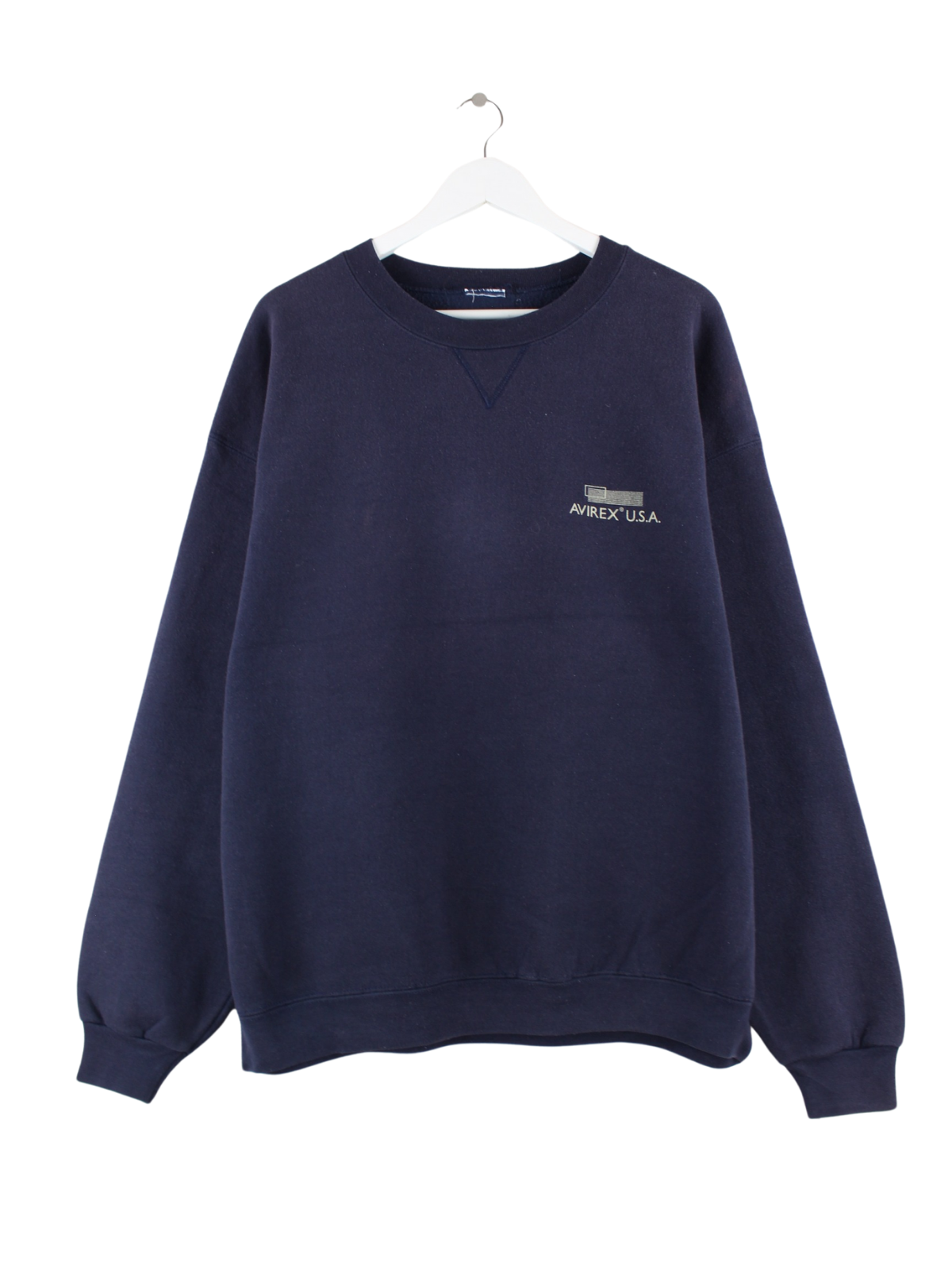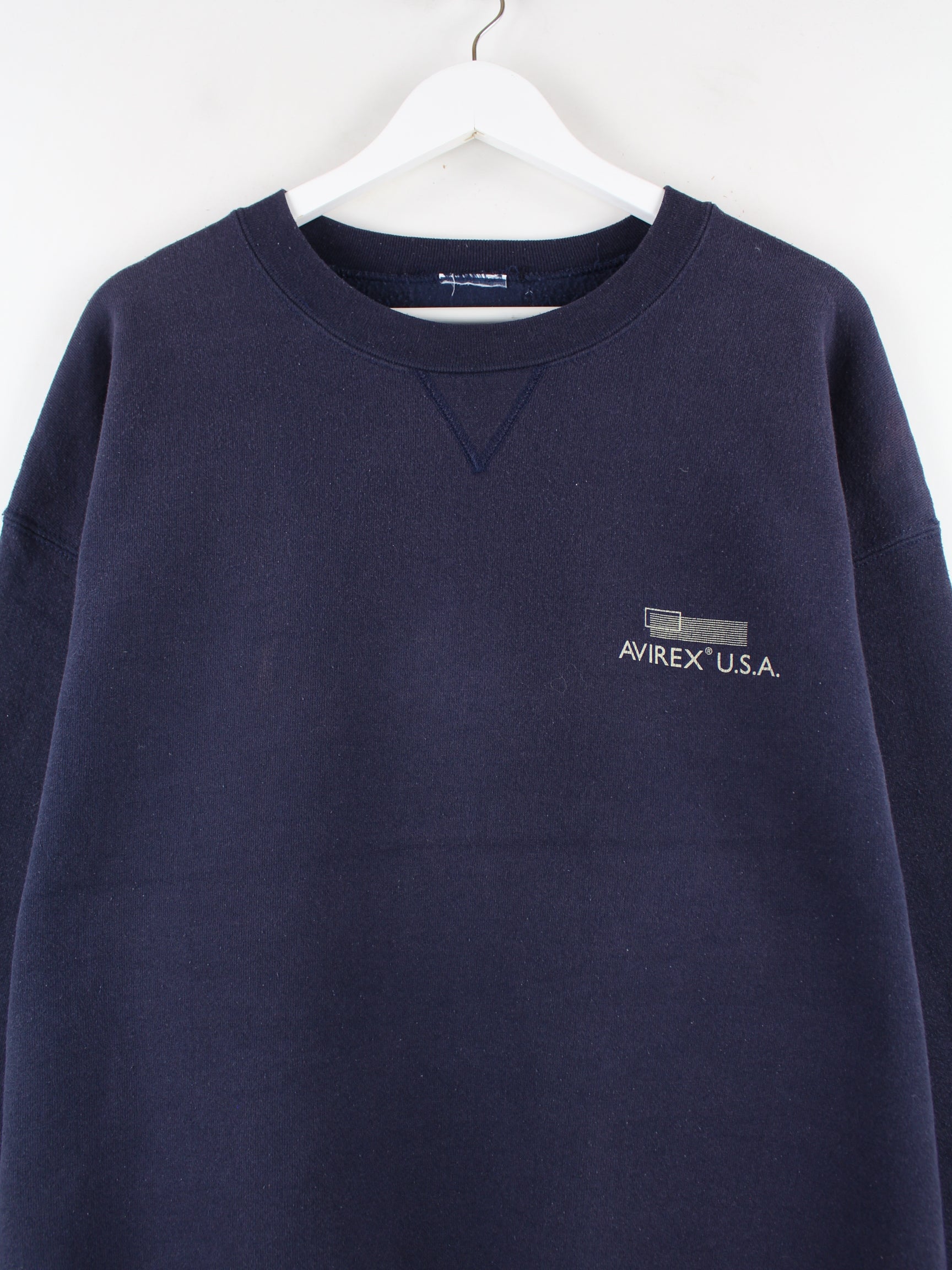 Blue sweater from the Avirex brand from the 90's in size XL. It is made from a cotton blend and is in good condition. With a chic vintage print.