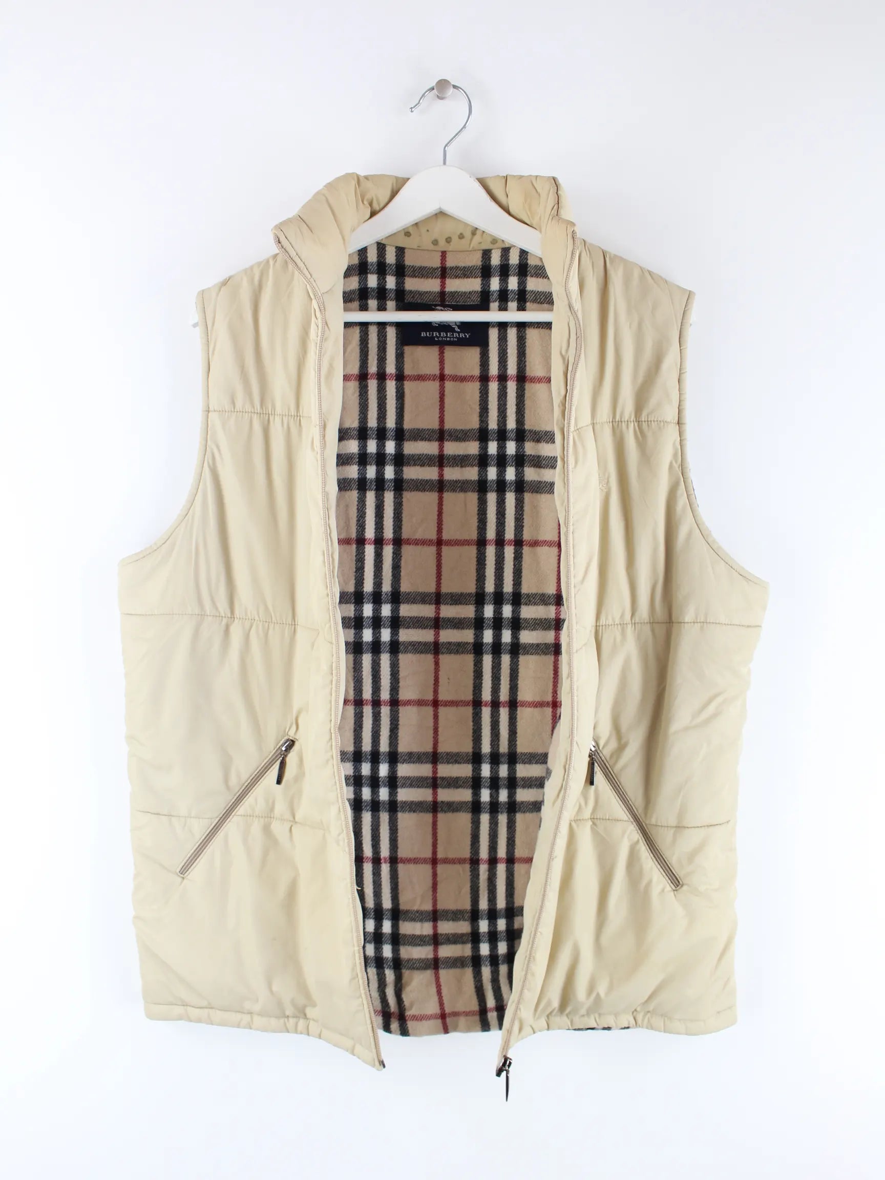 Weste der Brand Burberry in Größe M. Sie ist aus Synthetik hergestellt und in Beige bei uns vorrätig.