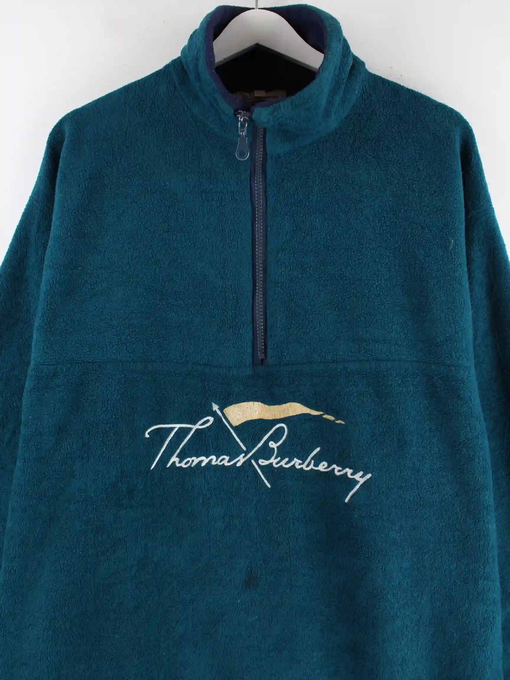 Burberry 80s Vintage Embroidered Fleece Half Zip Sweater Grün XXL