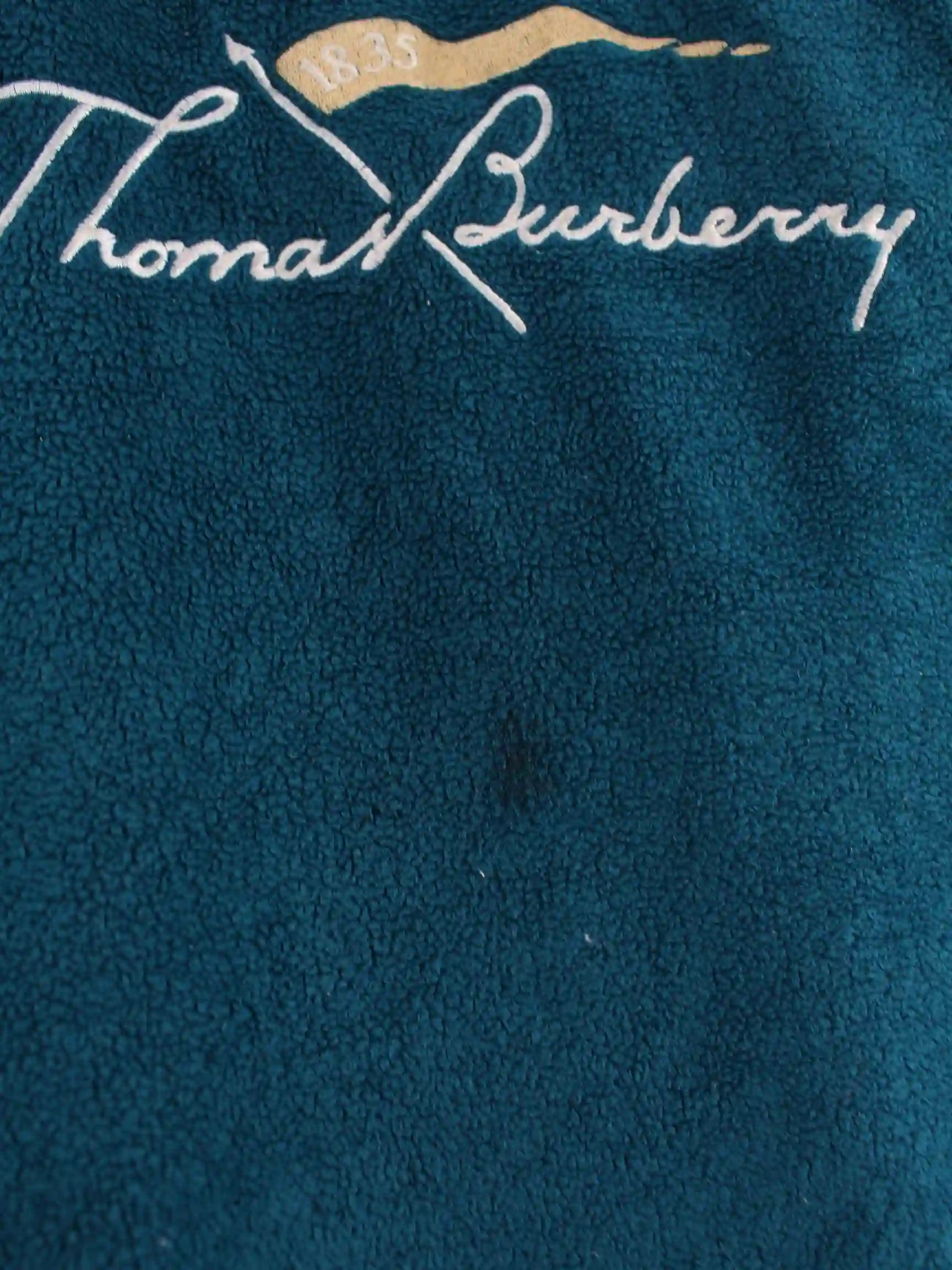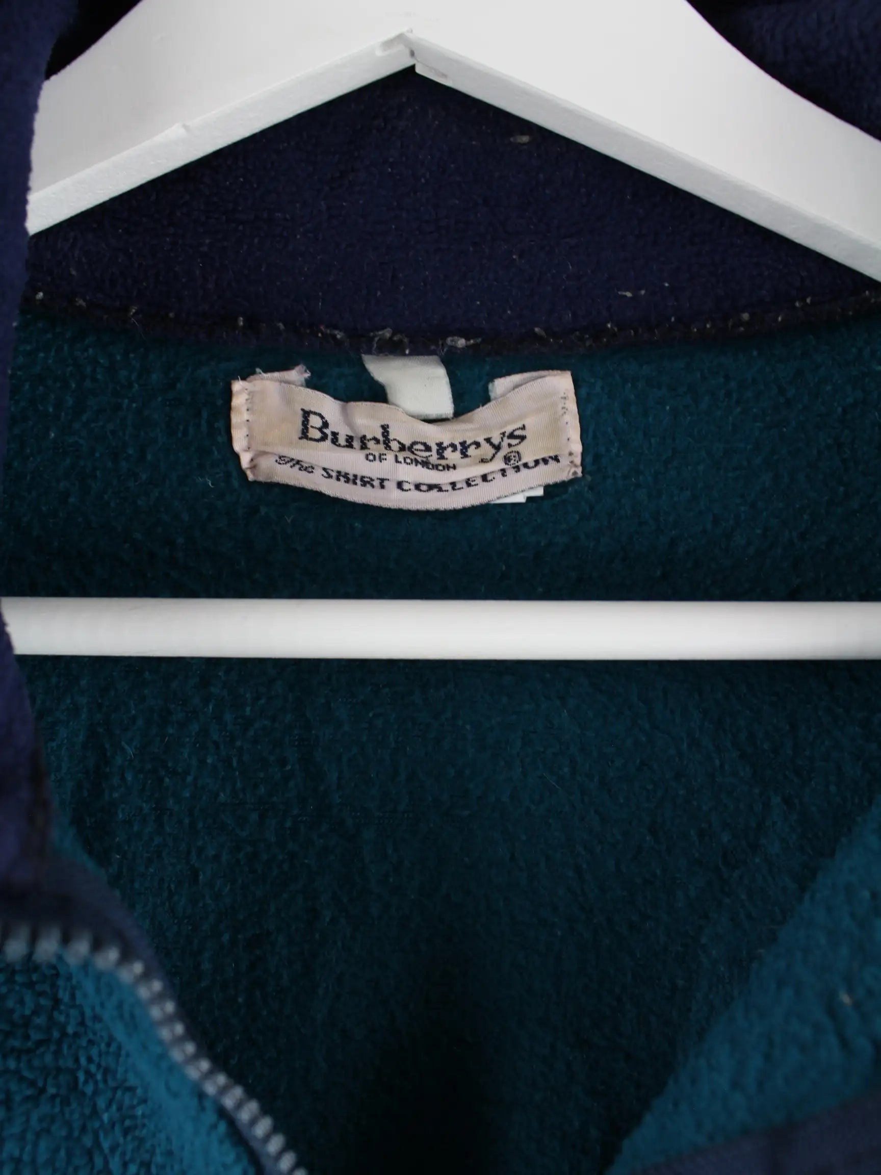 Grüner Sweater mit gestickten Motiven und kurzem Reißverschluß vom Brand Burberry aus den 80'ern in Größe XXL. Er ist aus weichem Fleece hergestellt. Den Zustand würden wir als 'In Ordnung' bezeichnen (vergl. Bilder).