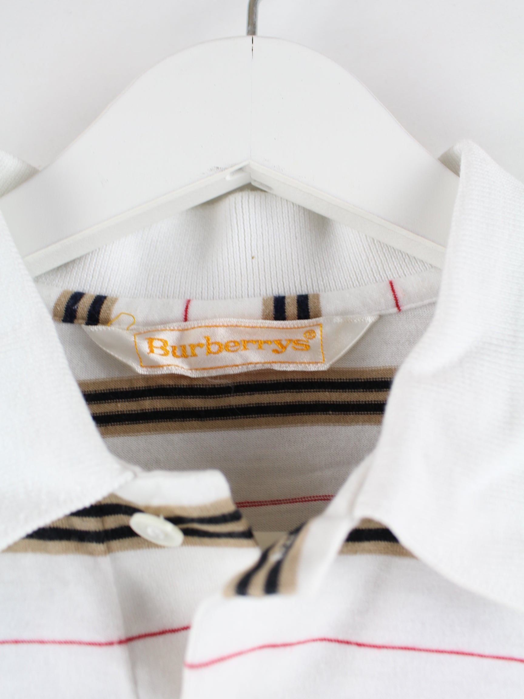 White polo shirt by Burberry from the 90's in size S. It is made of cotton and in very good condition.