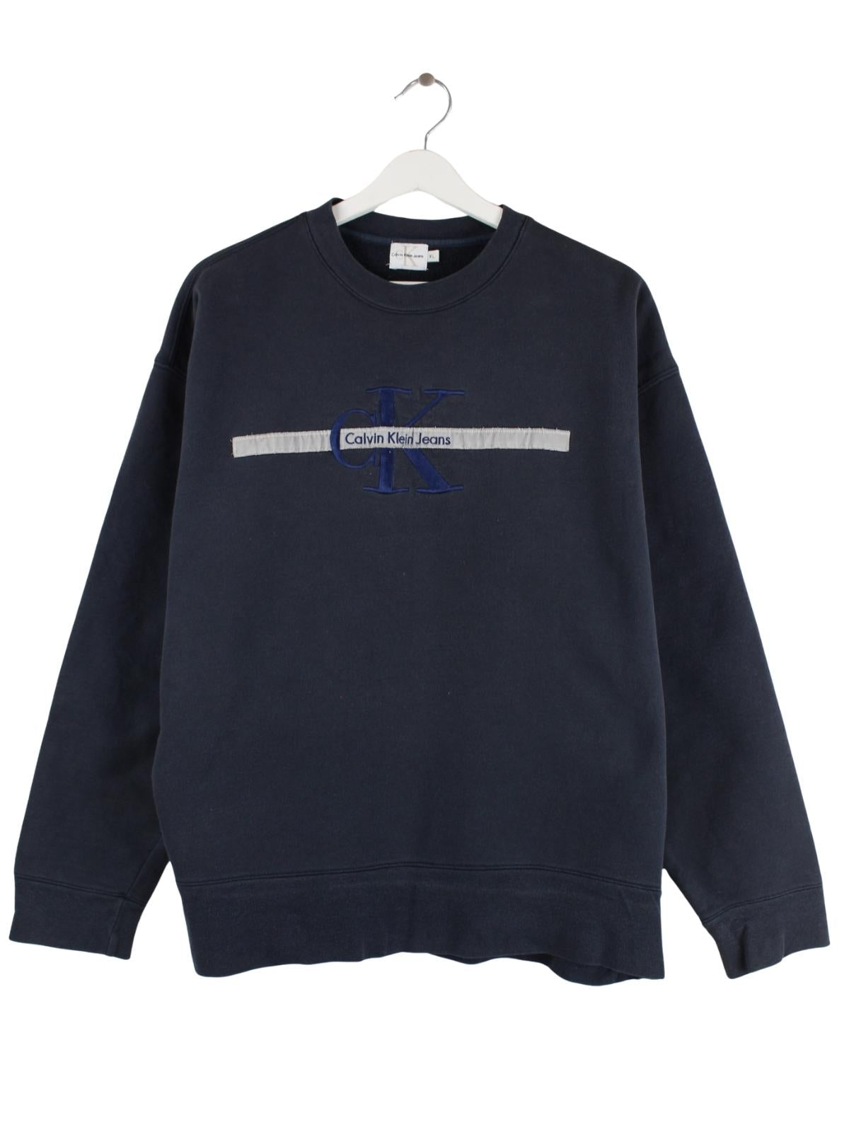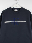 Sweater der Marke Calvin Klein in Größe XL aus den 90'ern. Er ist aus einer Baumwollmischung gemacht und in Schwarz lieferbar.