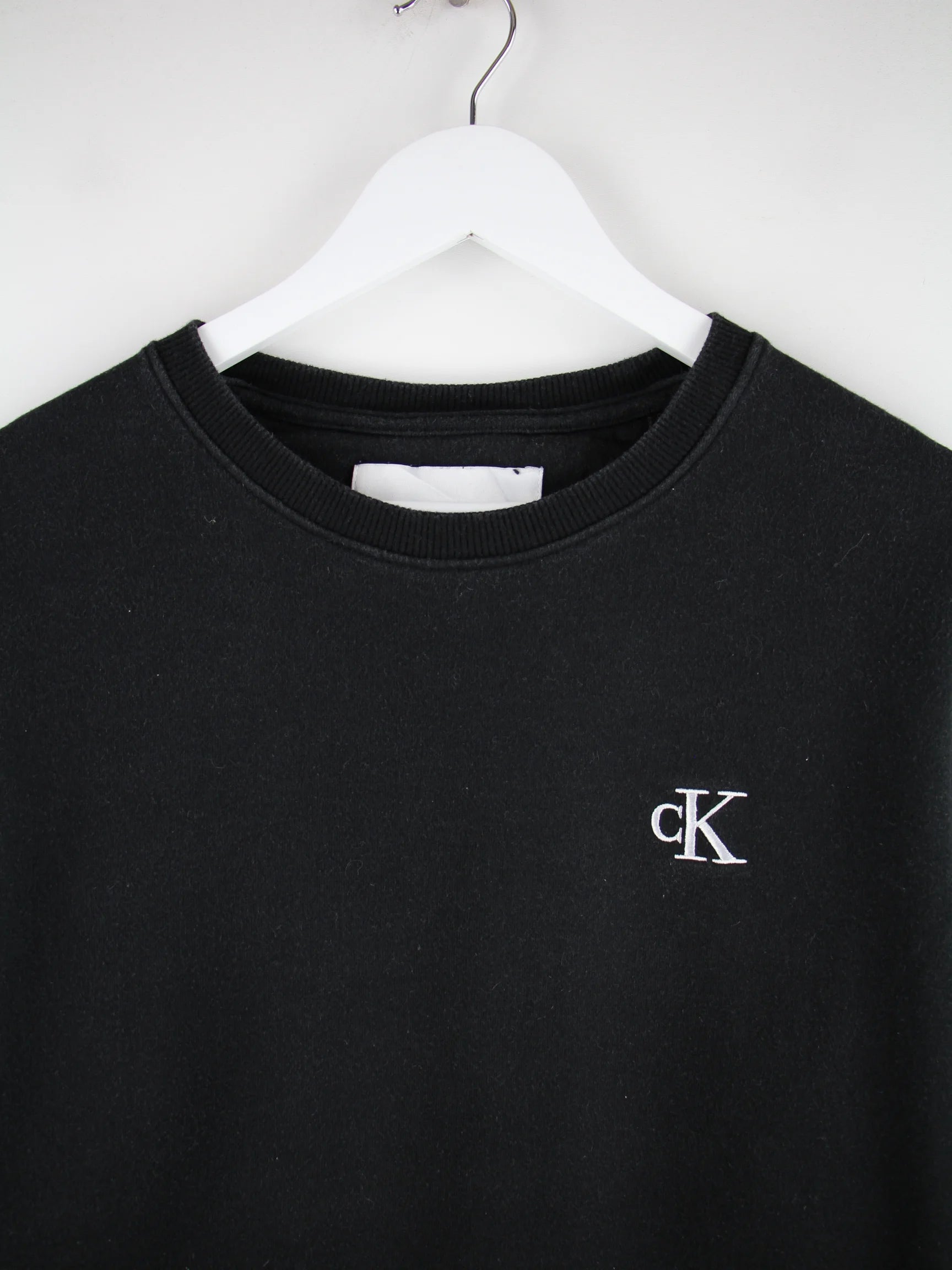 Sweater der Brand Calvin Klein in Größe S. Er ist aus einer Baumwollmischung hergestellt und in Schwarz bei uns vorrätig.