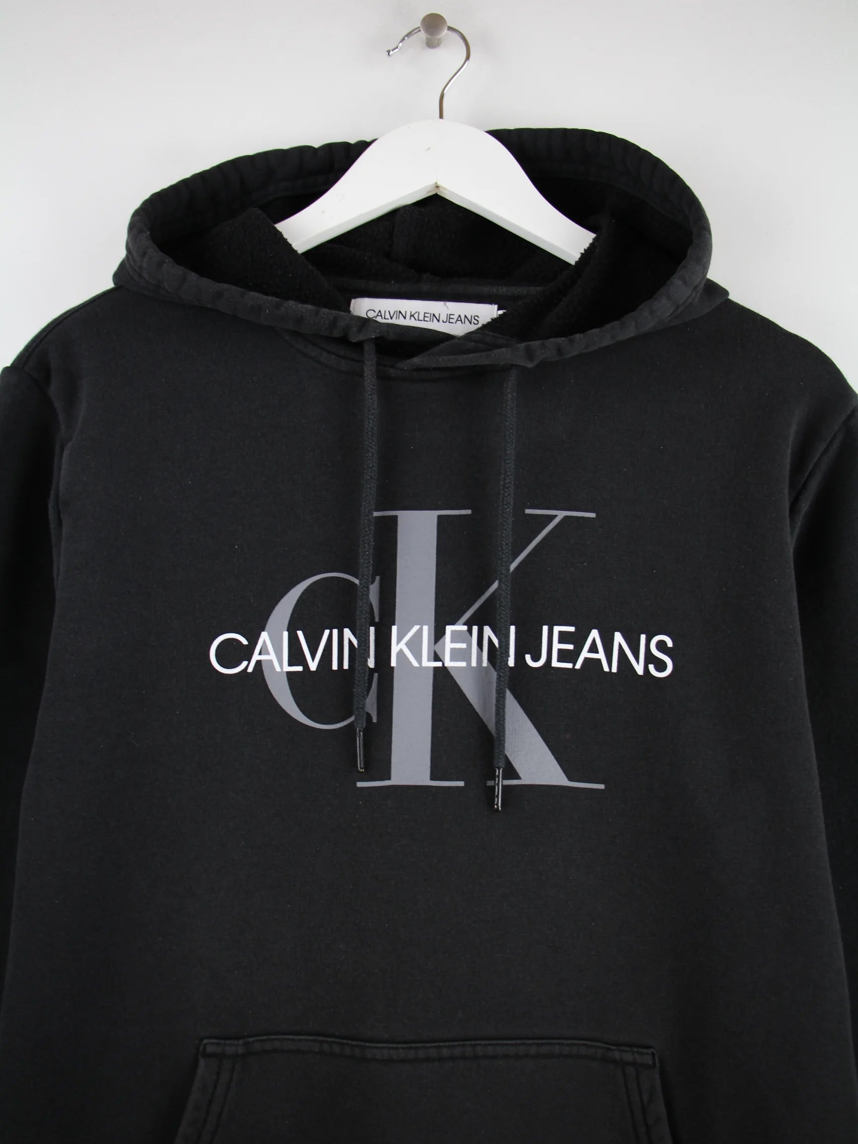 Schwarzer Hoodie von Calvin Klein in Größe M. Er ist aus einer Baumwollmischung und in gutem Zustand im Bestand. Mit schickem Logo Print.