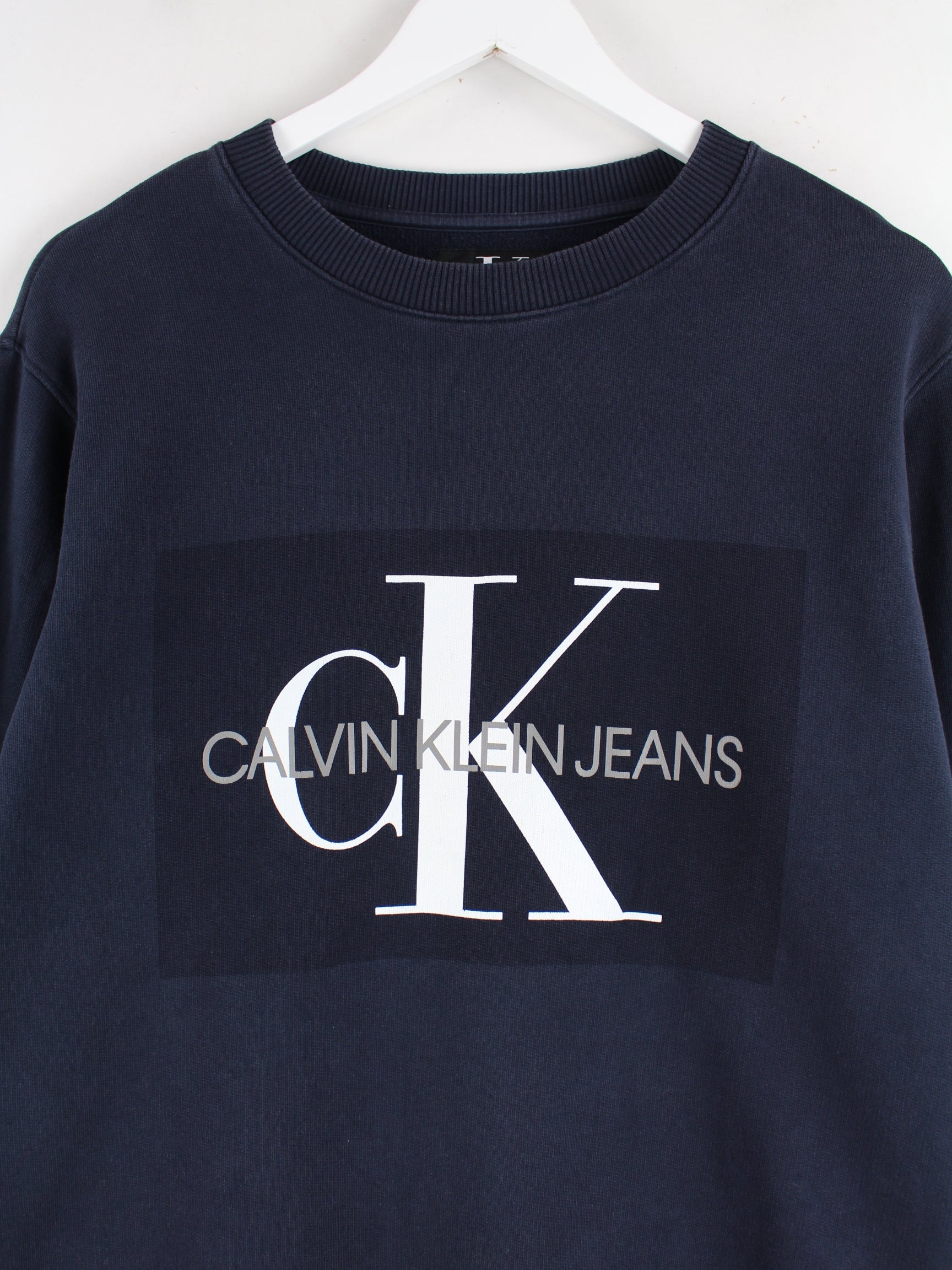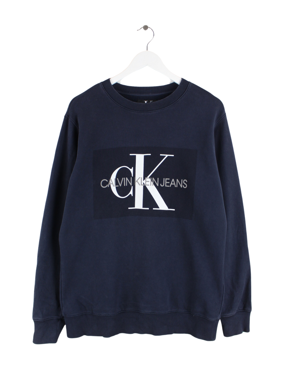 Blue sweater from the label Calvin Klein in size M. It is made of a cotton blend and is in good condition. With a nice print.