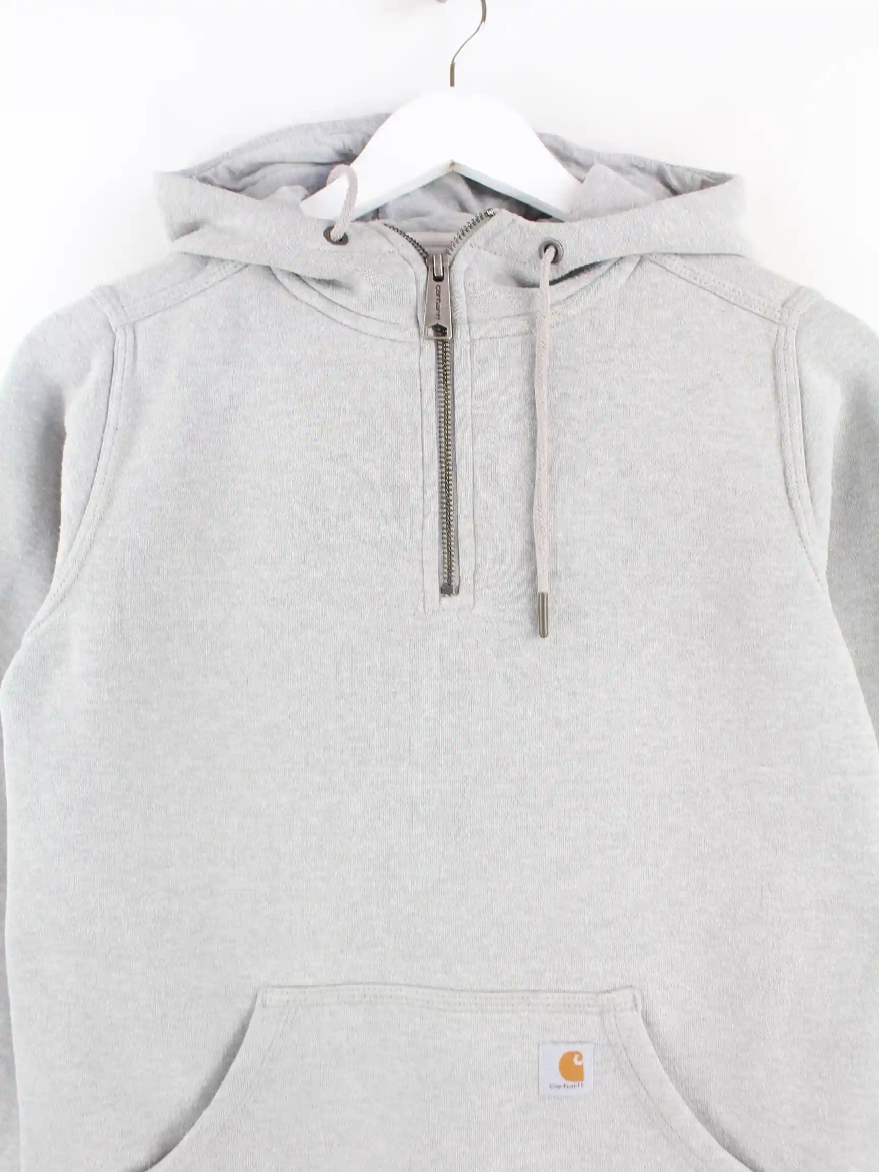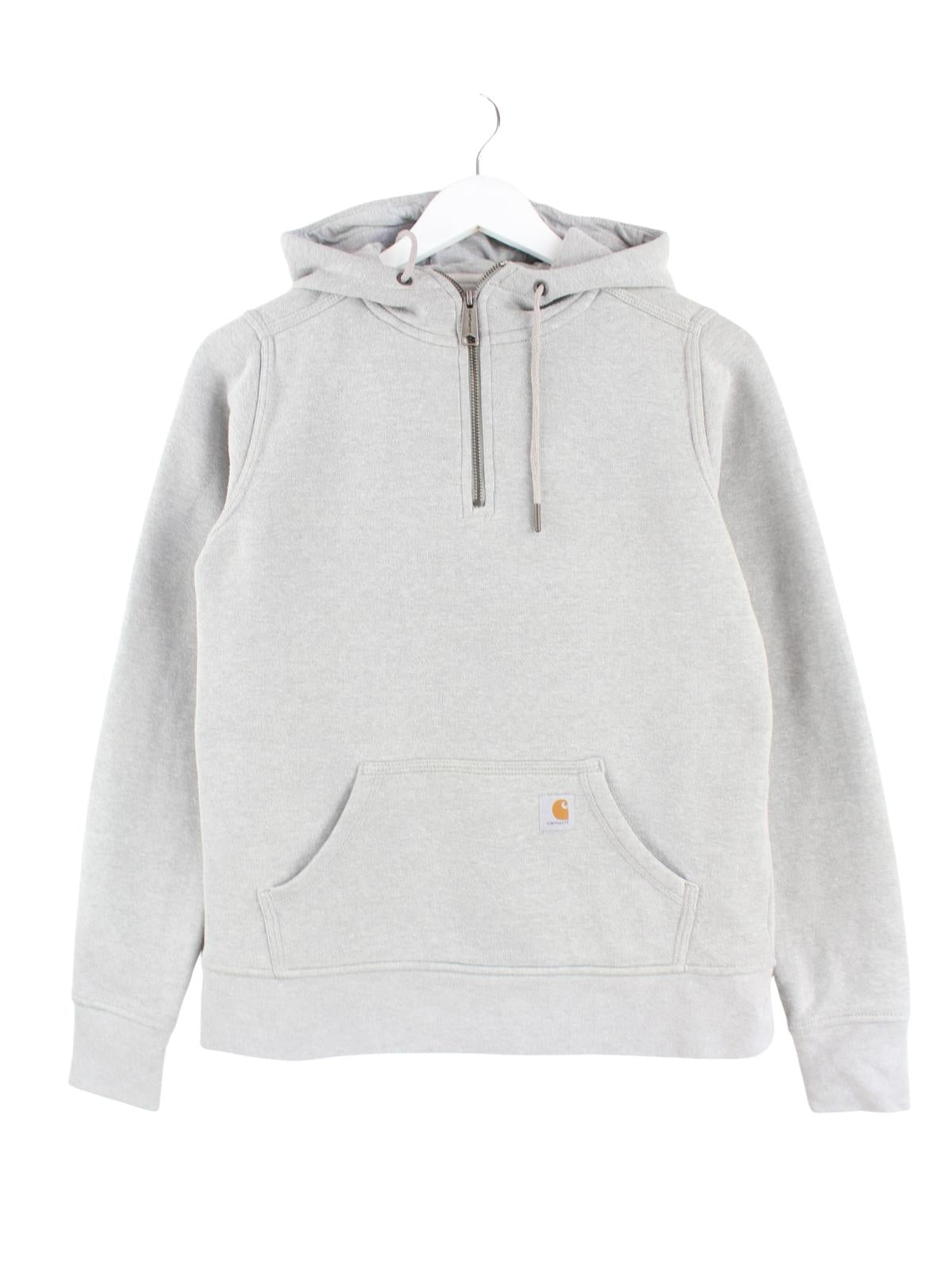 Grauer Hoodie mit kurzem Reißverschluß vom Brand Carhartt in Größe XS. Er ist aus einer Baumwollmischung gefertigt und in sehr gutem Zustand im Angebot.
