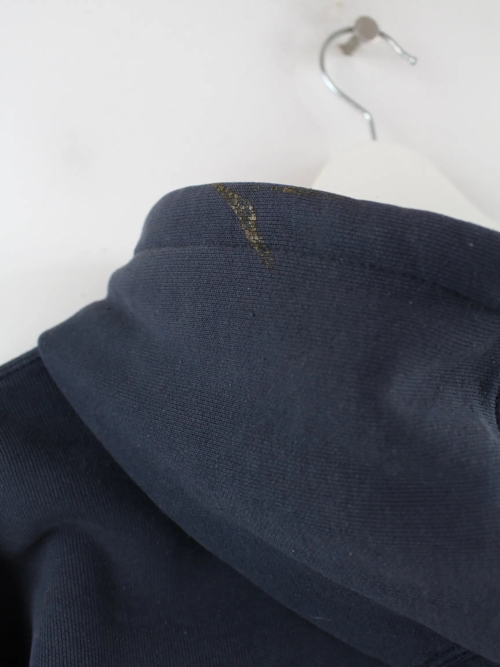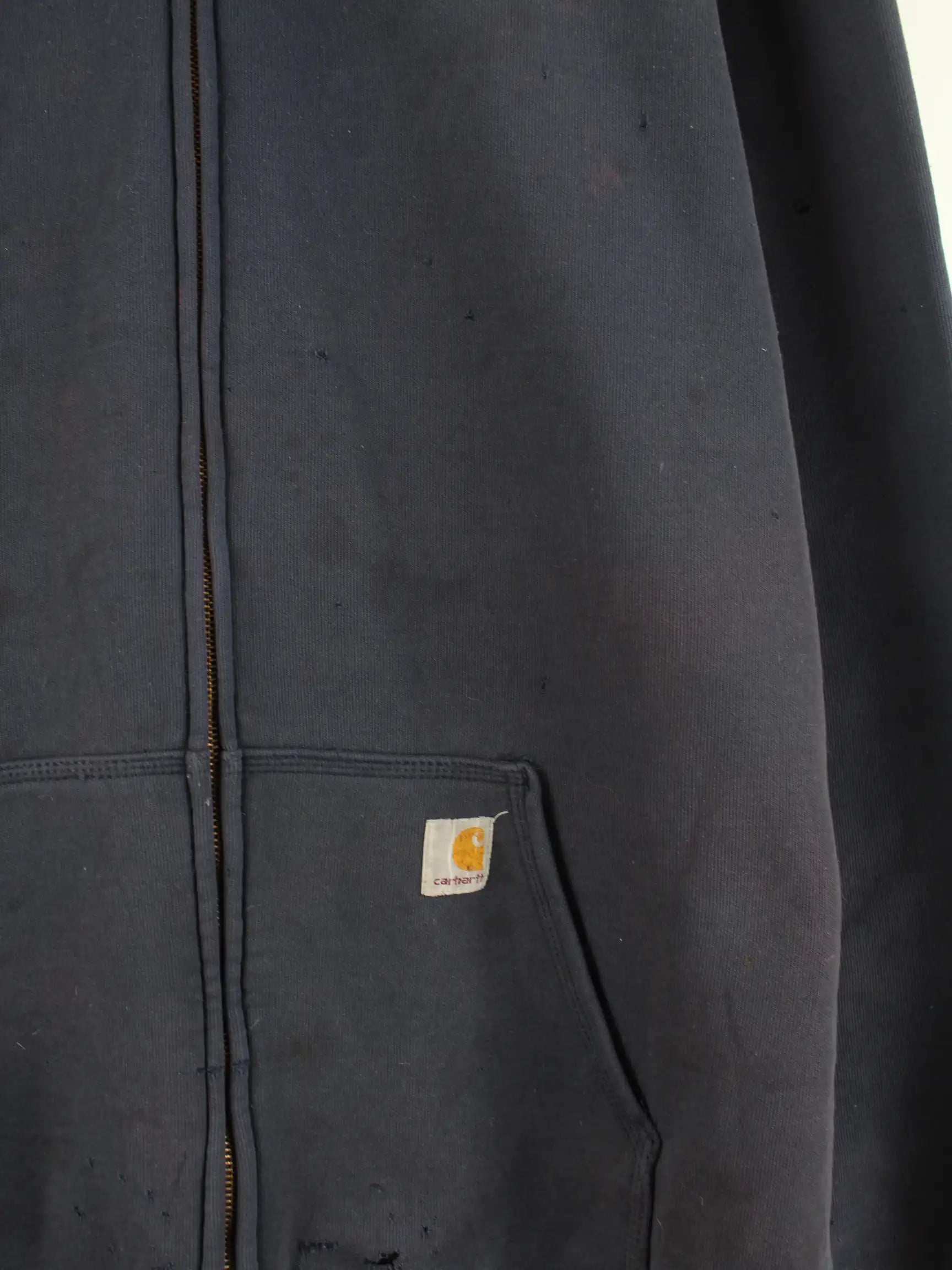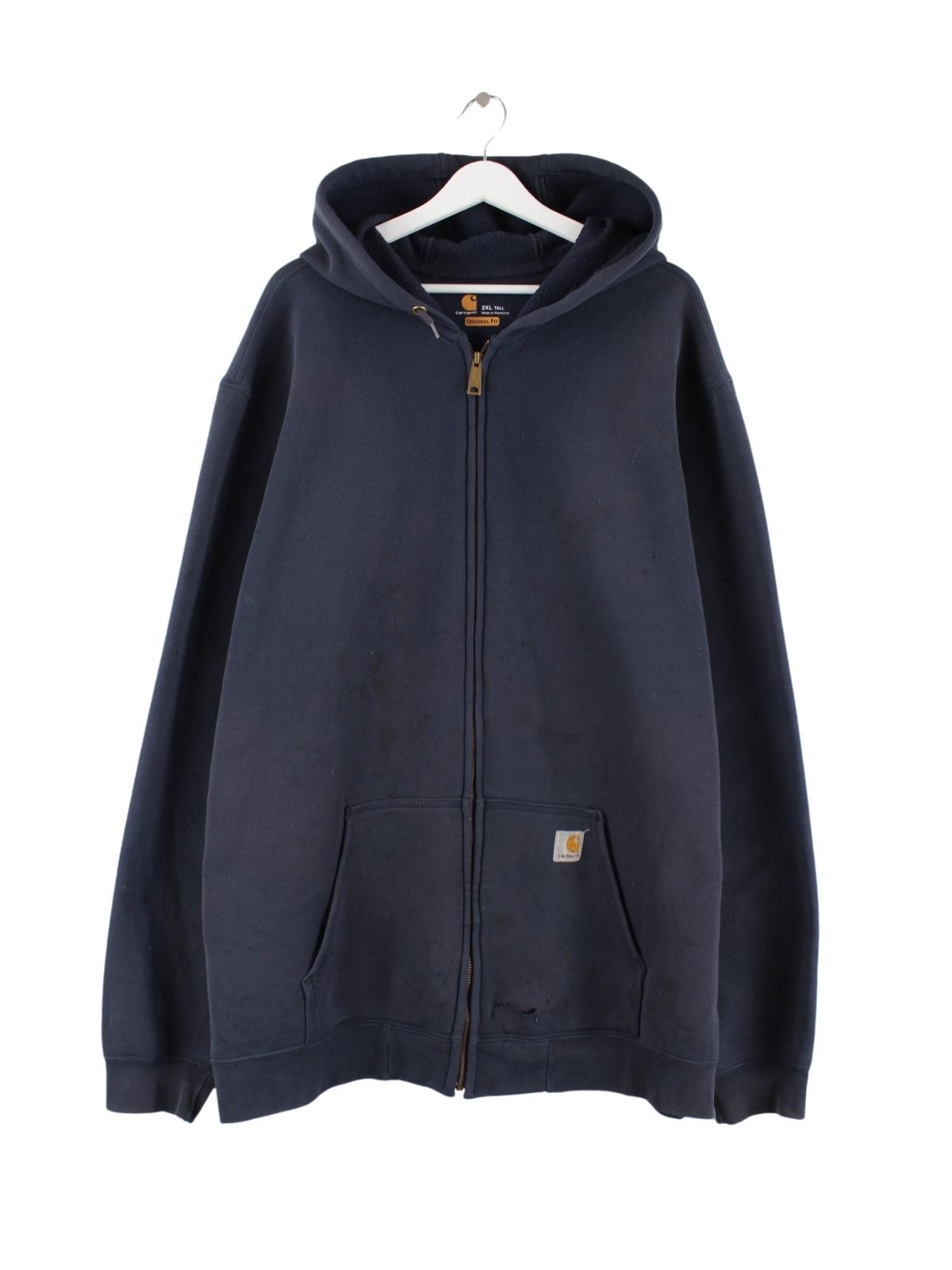 Blauer Hoodie mit durchgehendem Reißverschluß vom Brand Carhartt in Größe XXL. Er ist aus einer Baumwollmischung produziert. Den Zustand würden wir als 'In Ordnung' bezeichnen (vergl. Bilder).