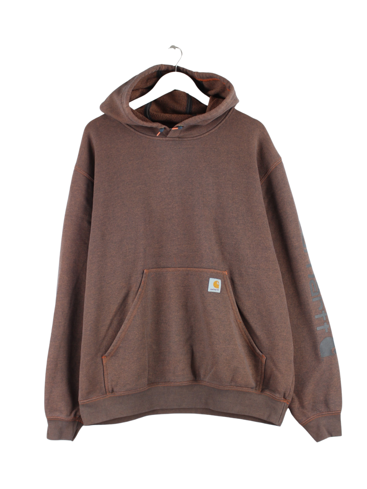 Brown hoodie from Carhartt in size L. It is made from a cotton blend and is in very good condition. With a nice fit print.