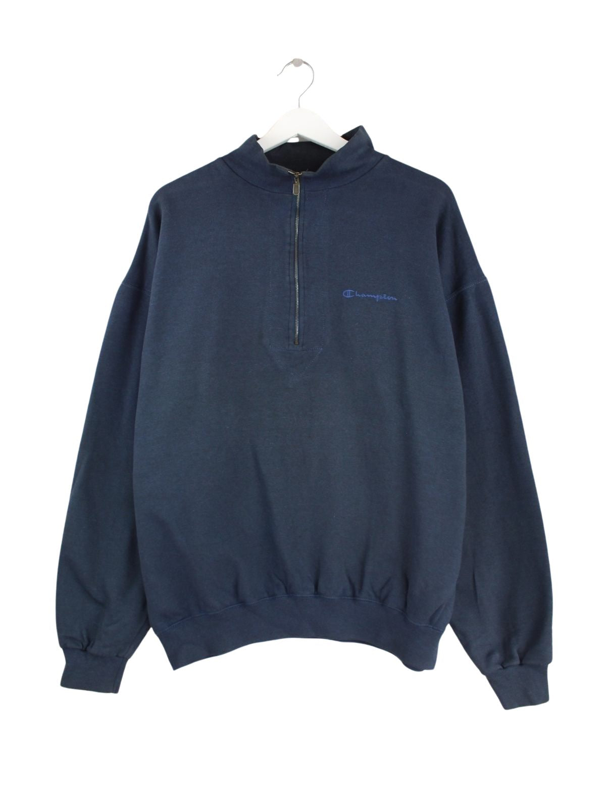 Blauer Sweater mit half Zip vom Brand Champion in Größe L. Er ist aus einer Baumwollmischung und in sehr gutem Zustand lieferbar.
