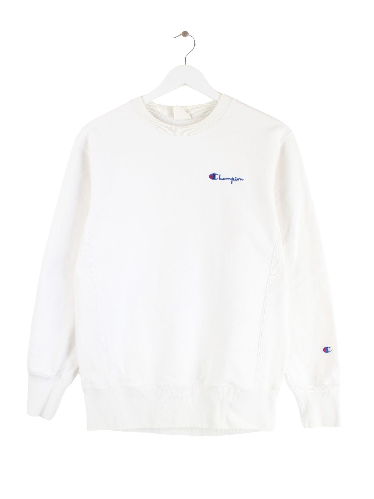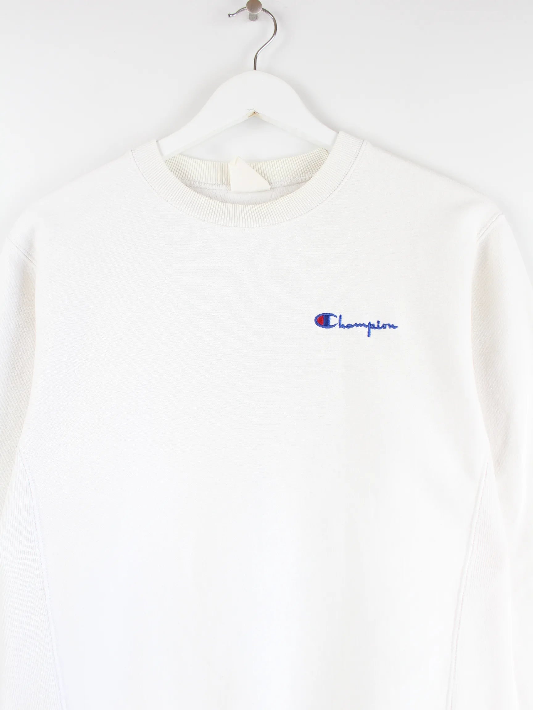 Weißer Sweater des Labels Champion in Größe M. Er ist aus einer Baumwollmischung gemacht und in gutem Zustand bei uns zu bekommen.