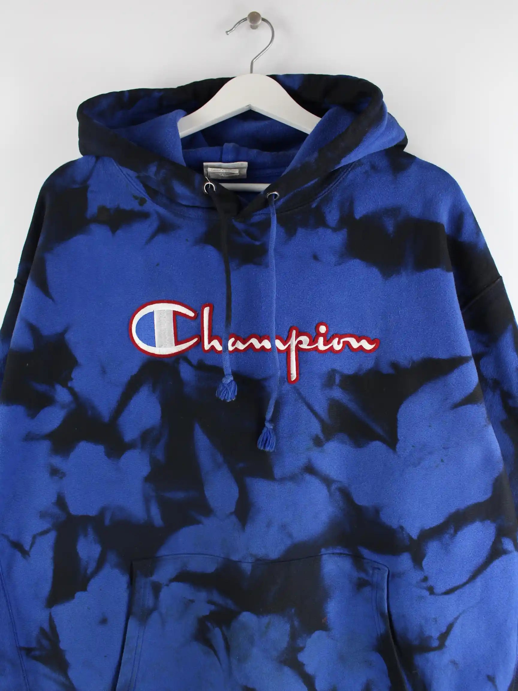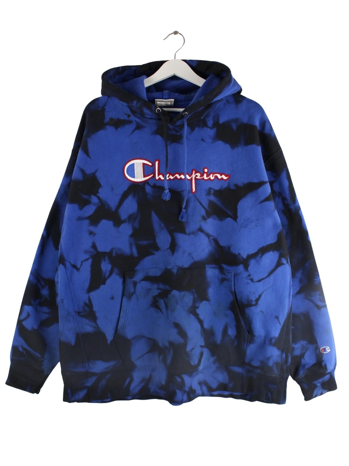 Champion 00s Reverse Weave ICONS Big Logo Tie Dye Hoodie Blau XXL