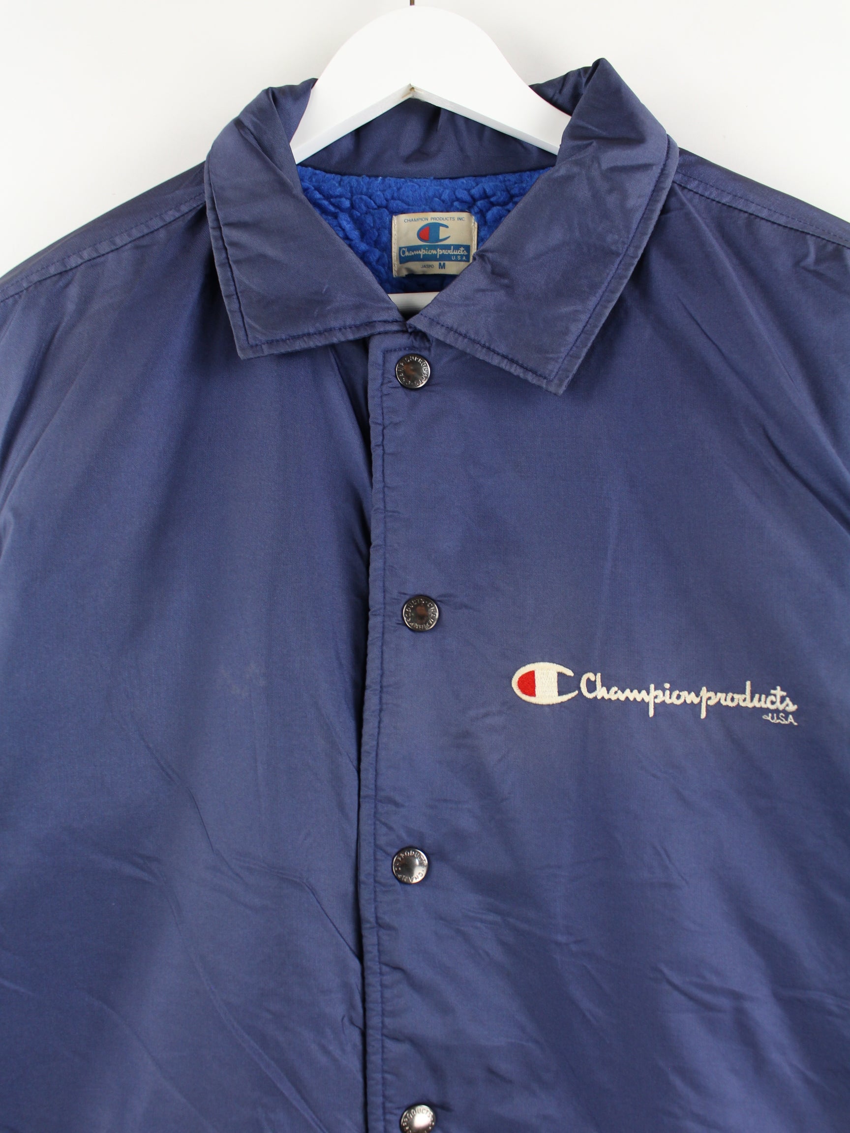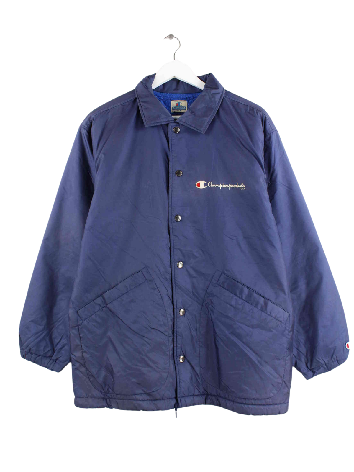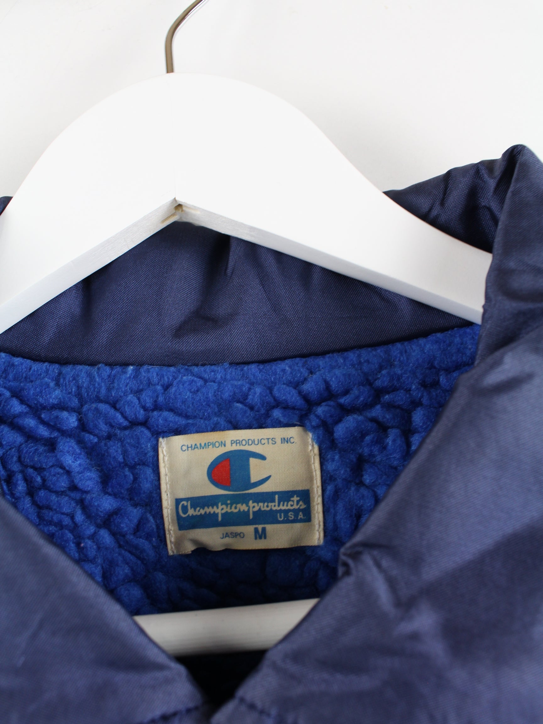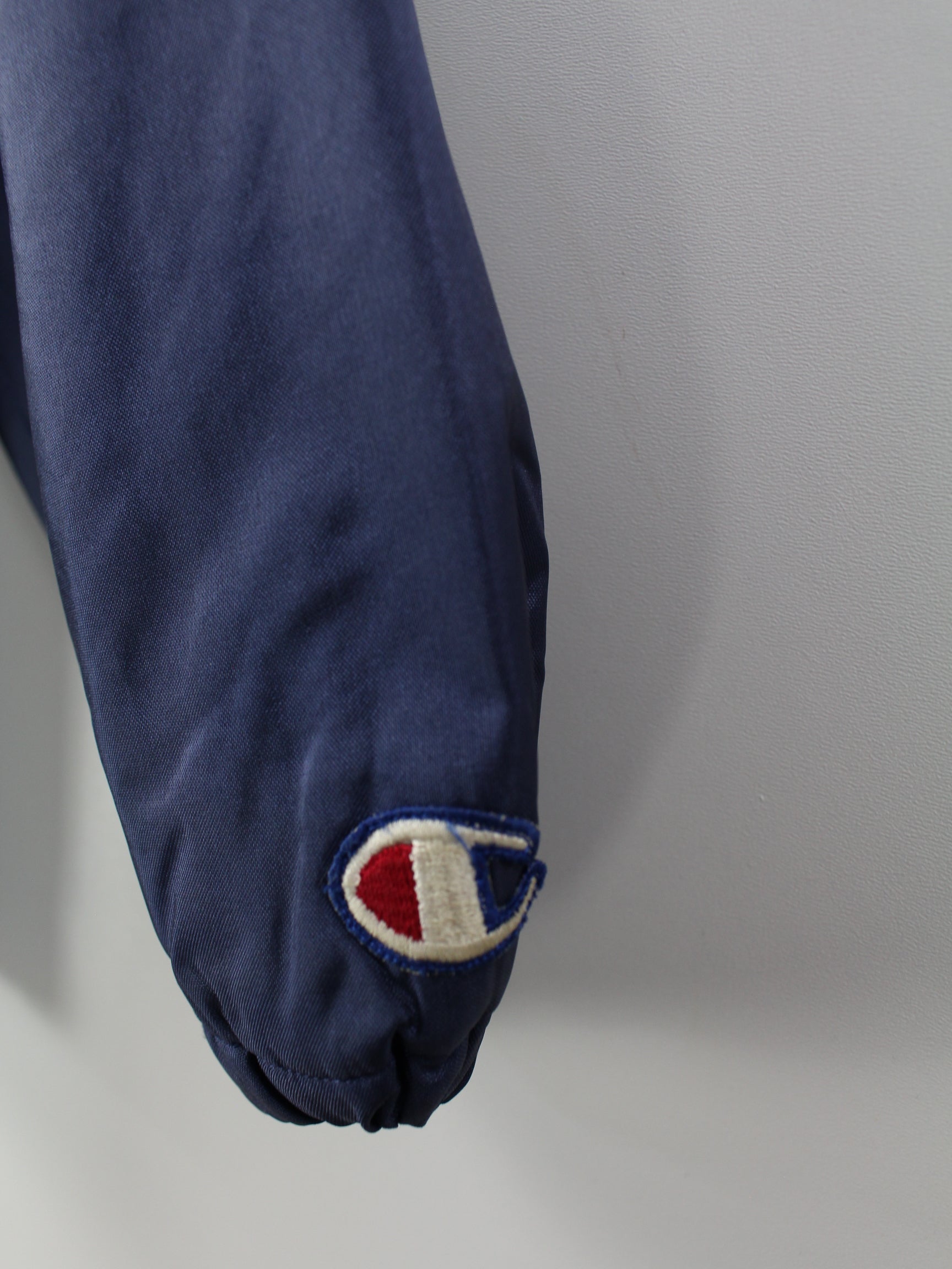 Blue light jacket from Champion from the 70's in size L. It is made of synthetic material and is in very good condition on stock.